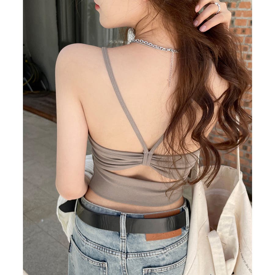 カップ付きで1枚で着られる背中あきデザインのキャミソール