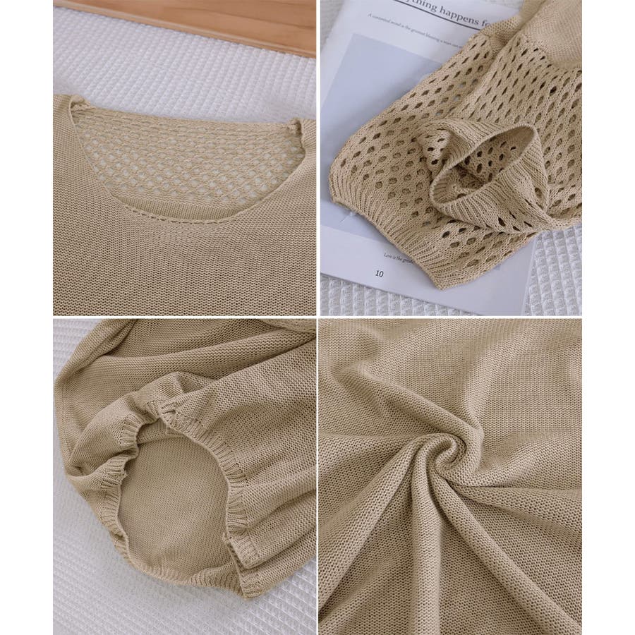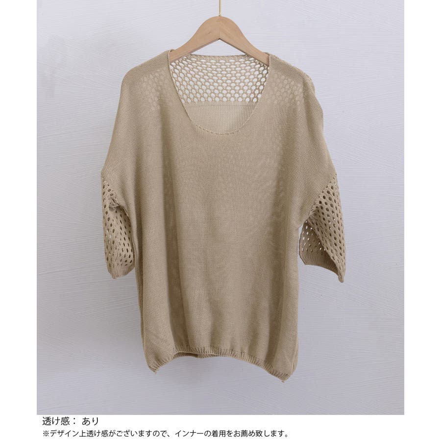 透かし編みニットトップス半袖サマーニット