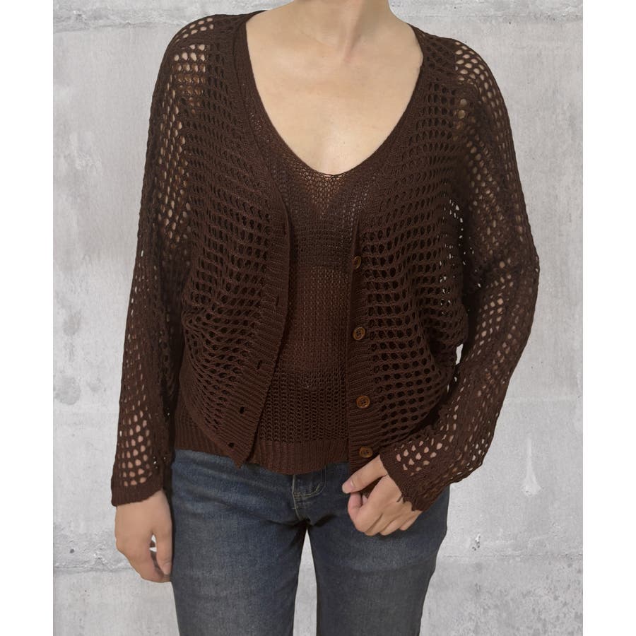 着やせセット韓国風 長袖ニットカーデ黒 無地 ニットタンク