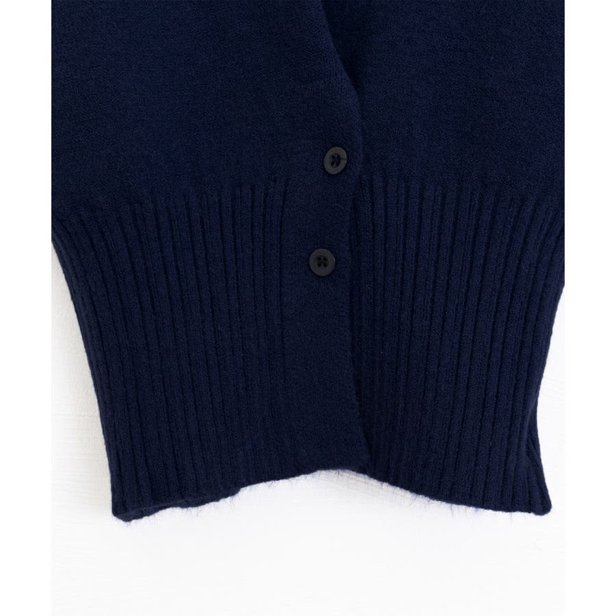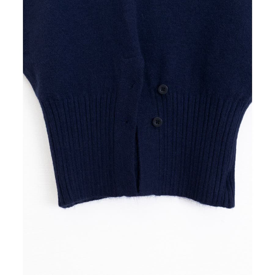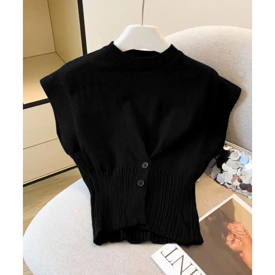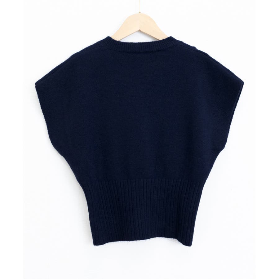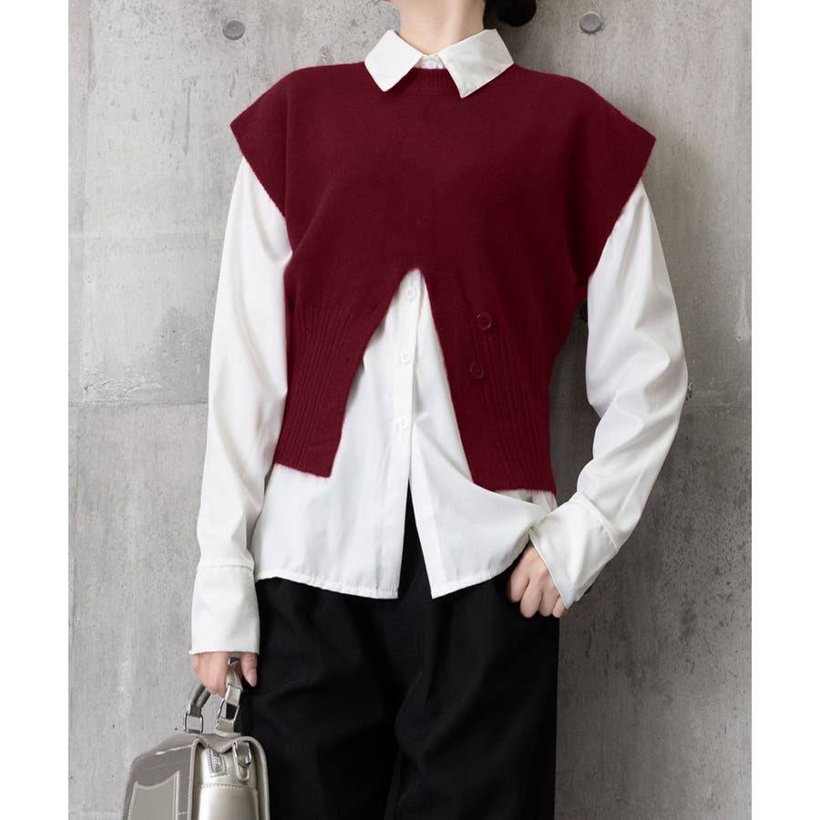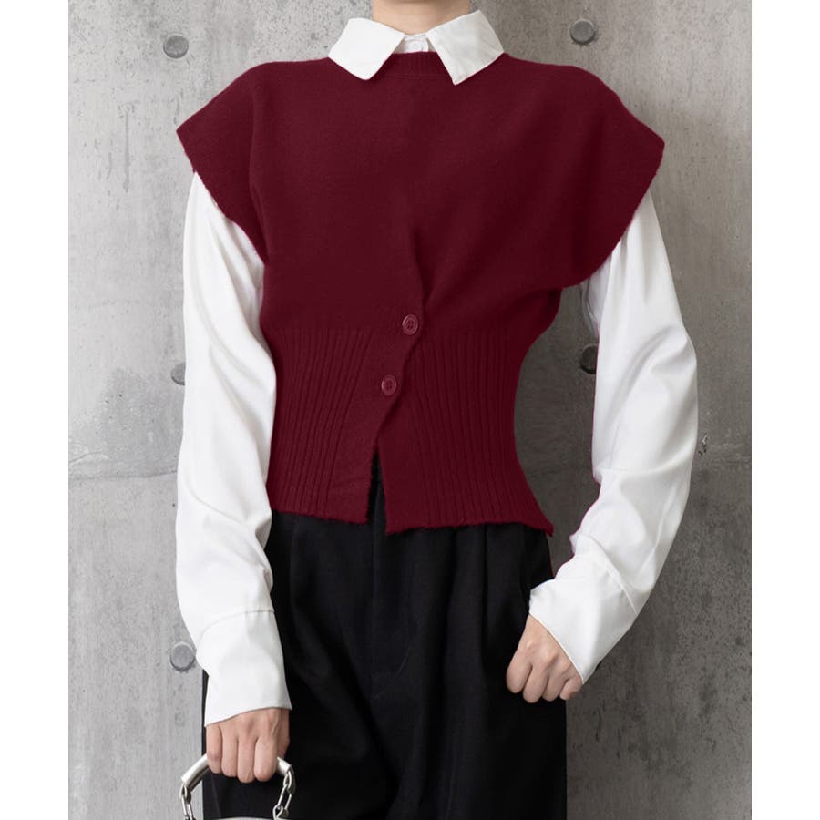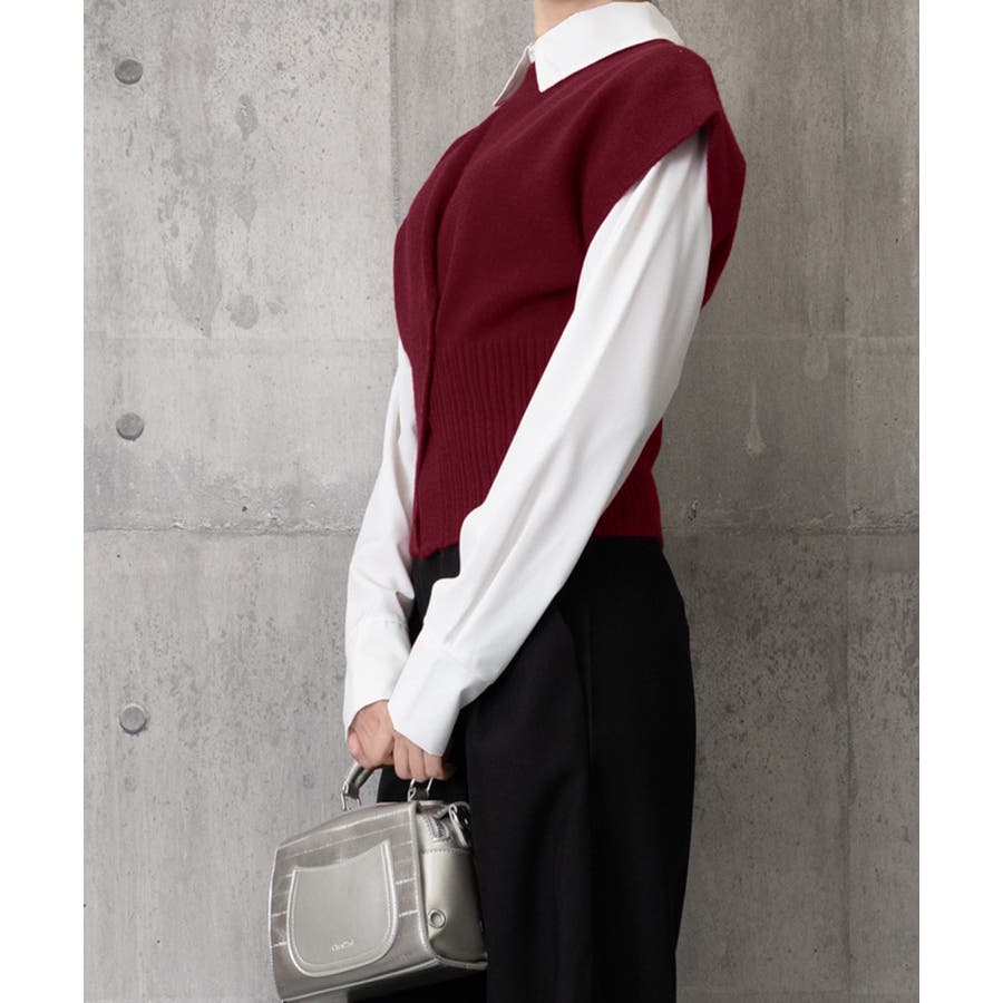 リブ切り替えとフロントボタンがアクセントになった上品なニットベスト。