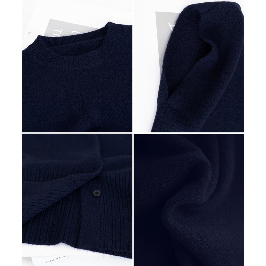柔らかなニット素材で快適な着心地ながら、大人フェミニンな印象をプラス。