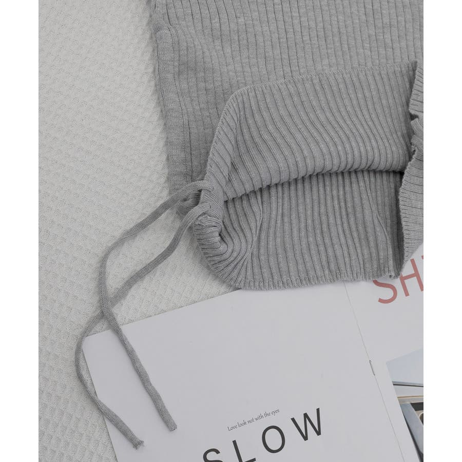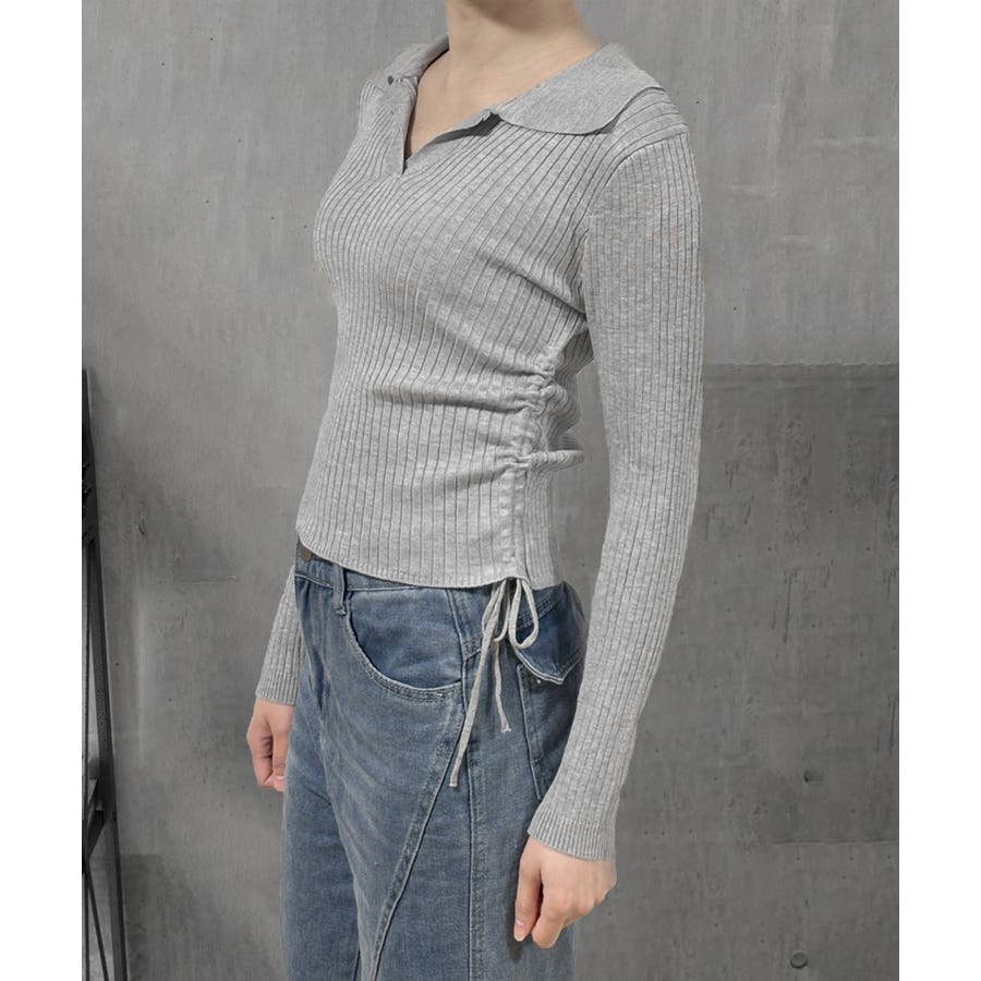 ポロニットドローストリングリブニット薄手