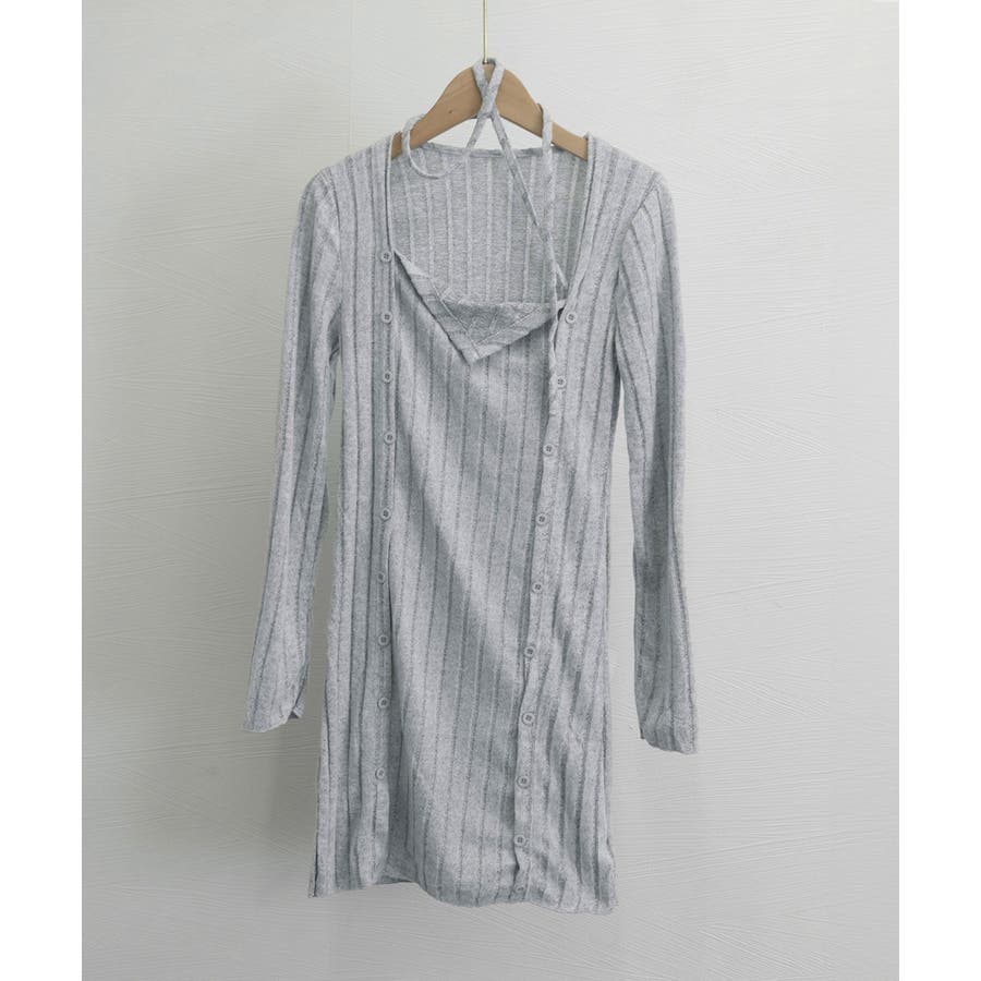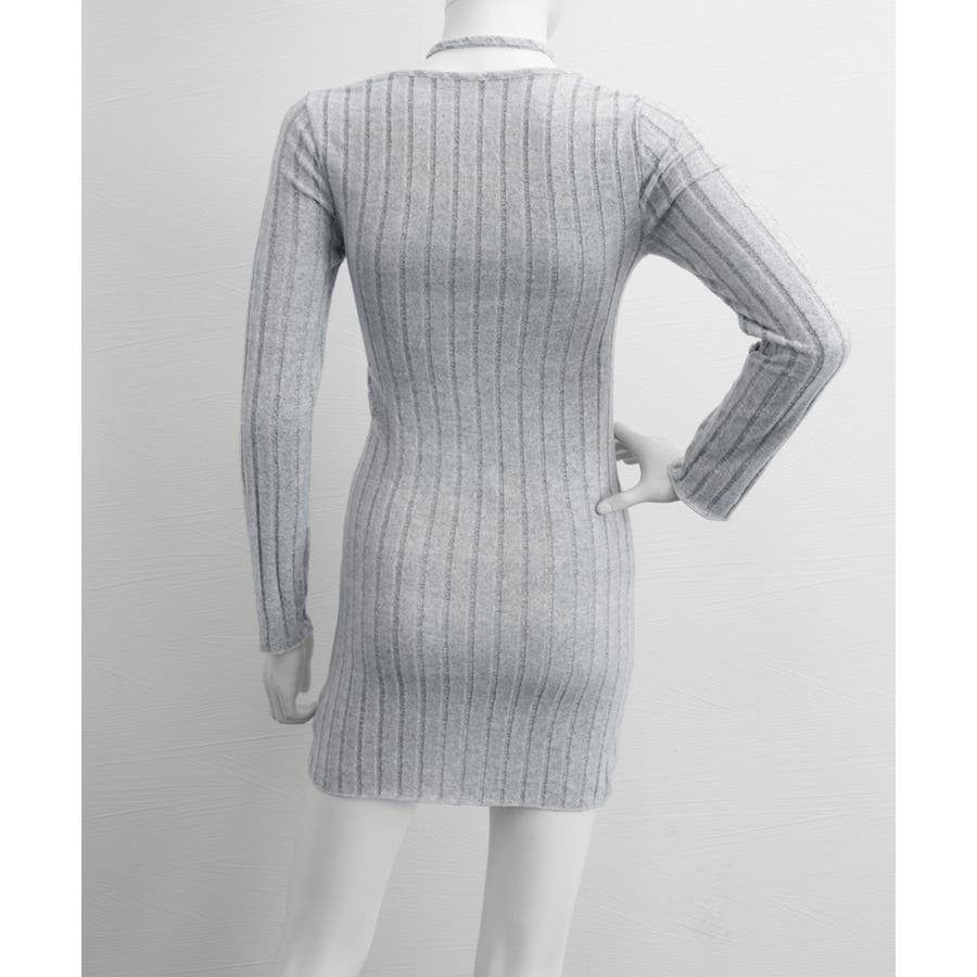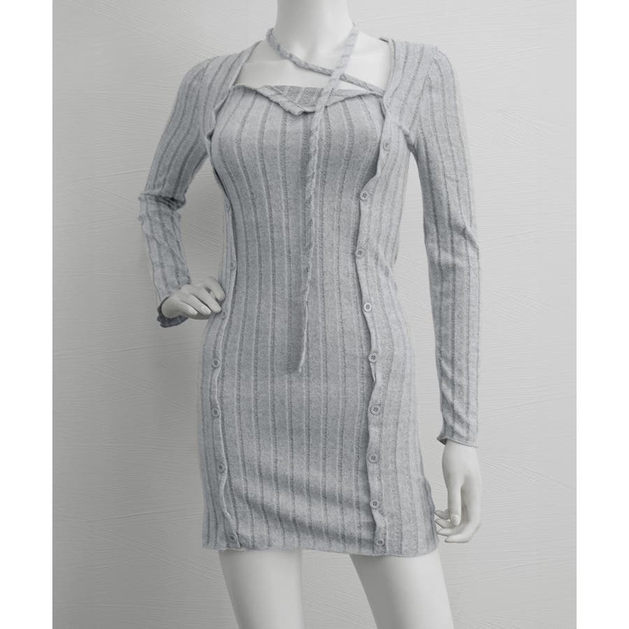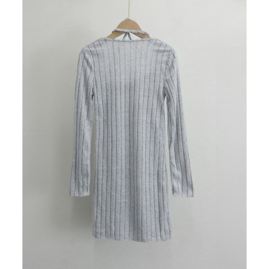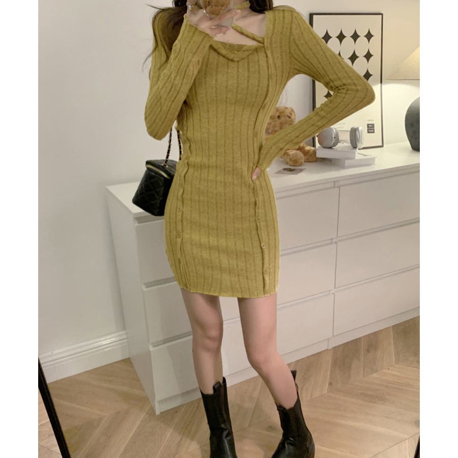 伸縮性のあるニット素材で、程よく体にフィットし、ボディラインを美しく魅せるホルターネックワンピース。