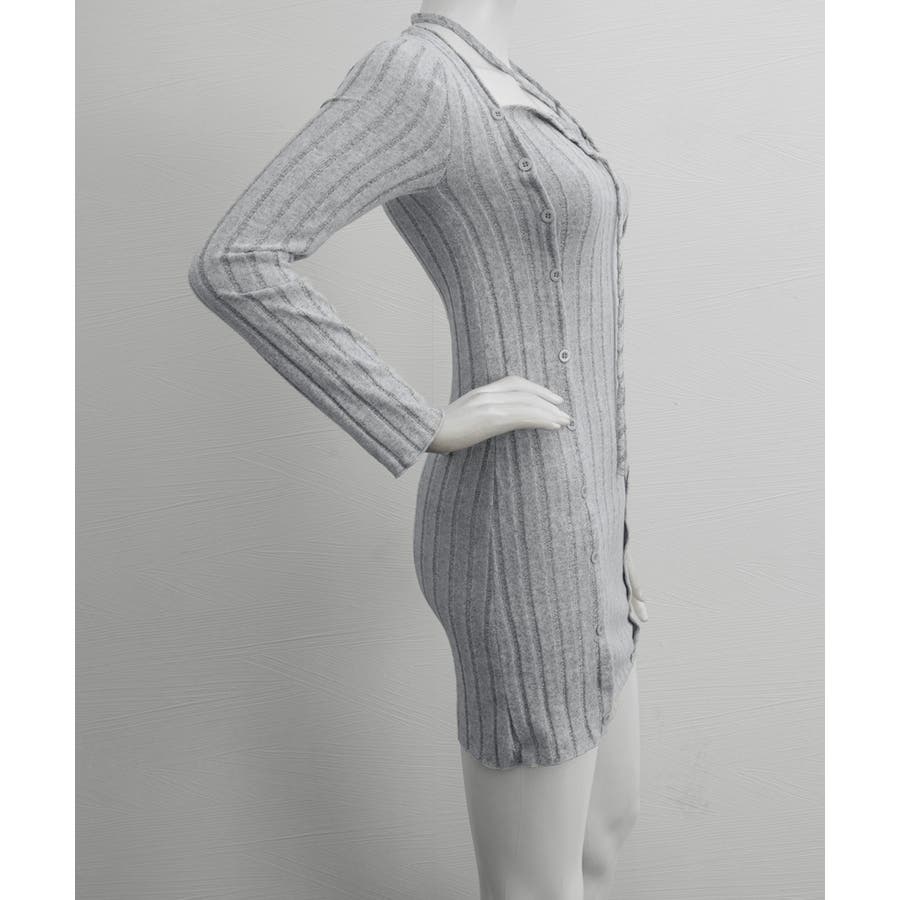 飾りボタンワンピ黒 着回しニットワンピ 長袖インナーワンピ