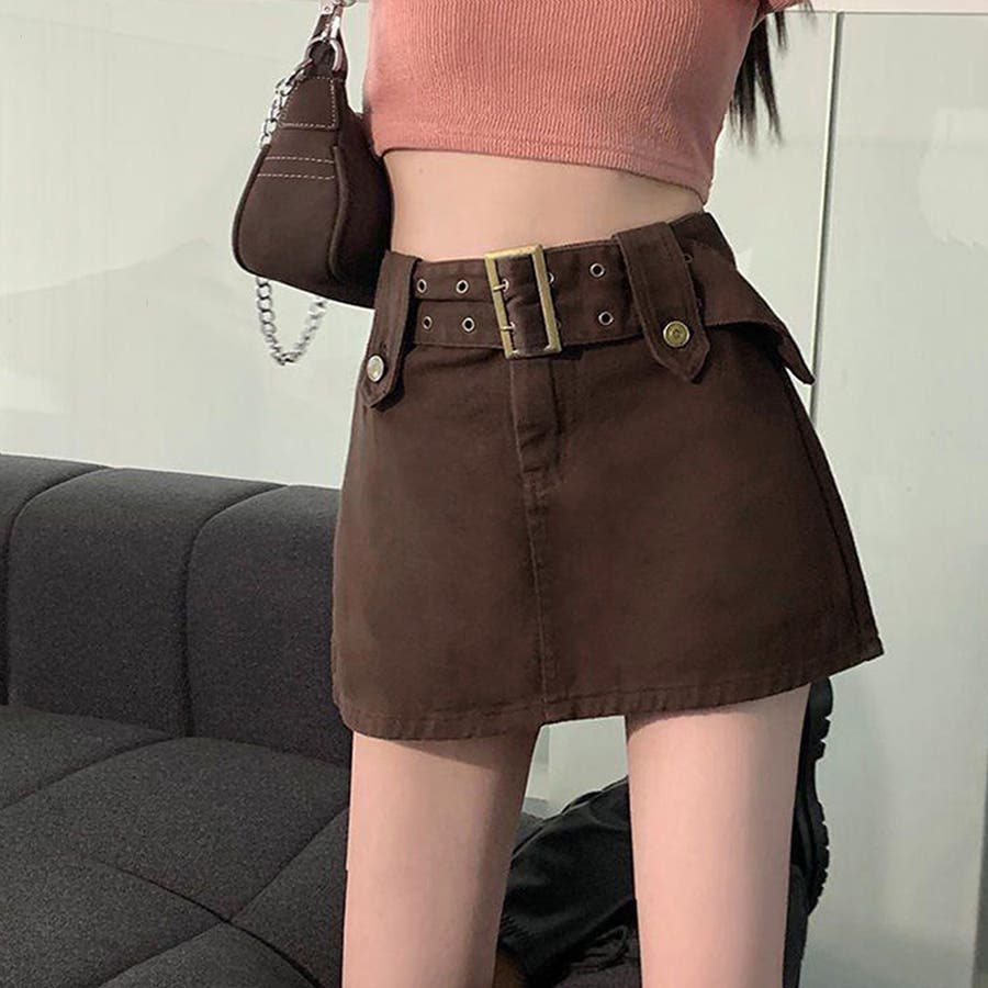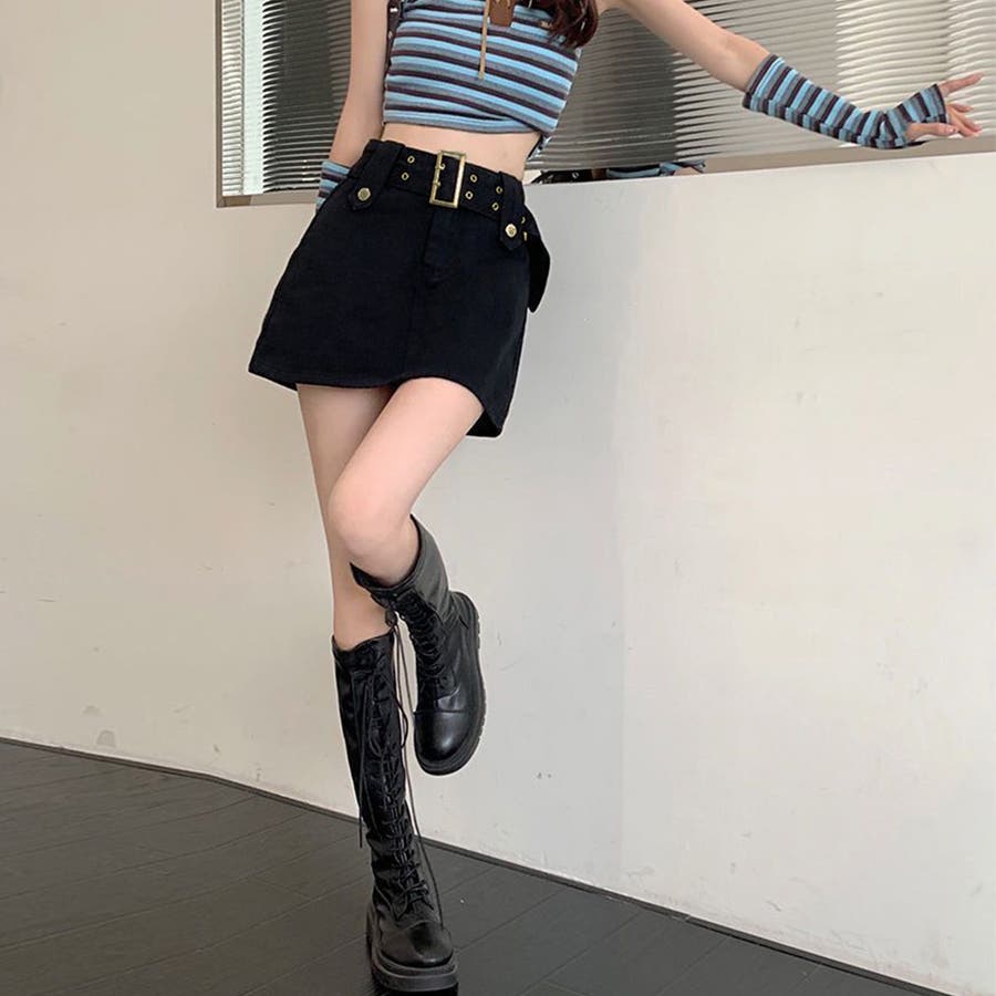 春秋スカートレトロ 細見え台形スカート カッコイイボトムス