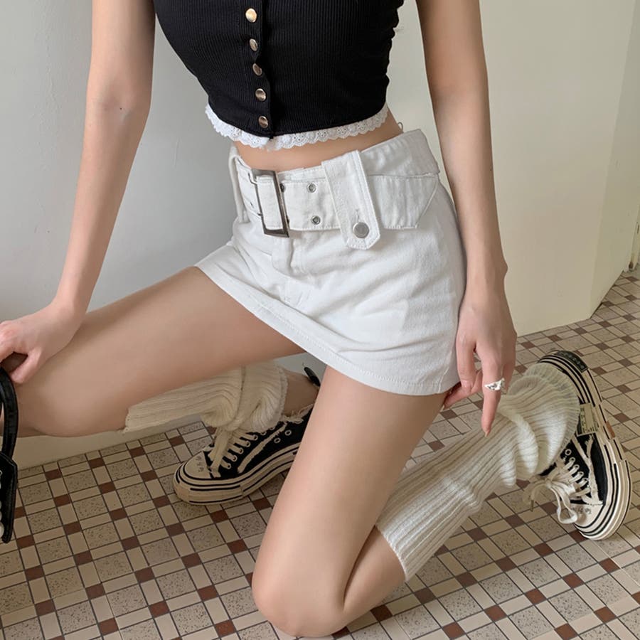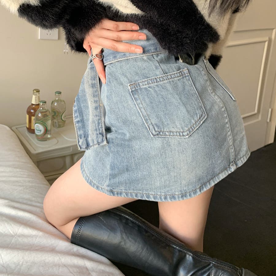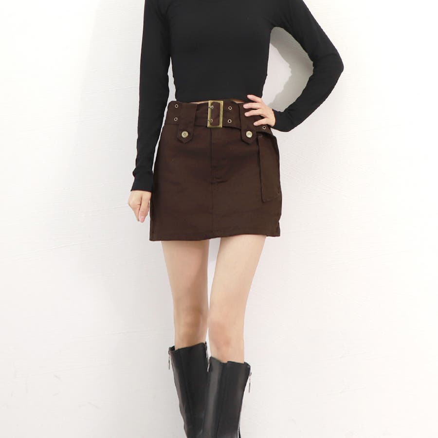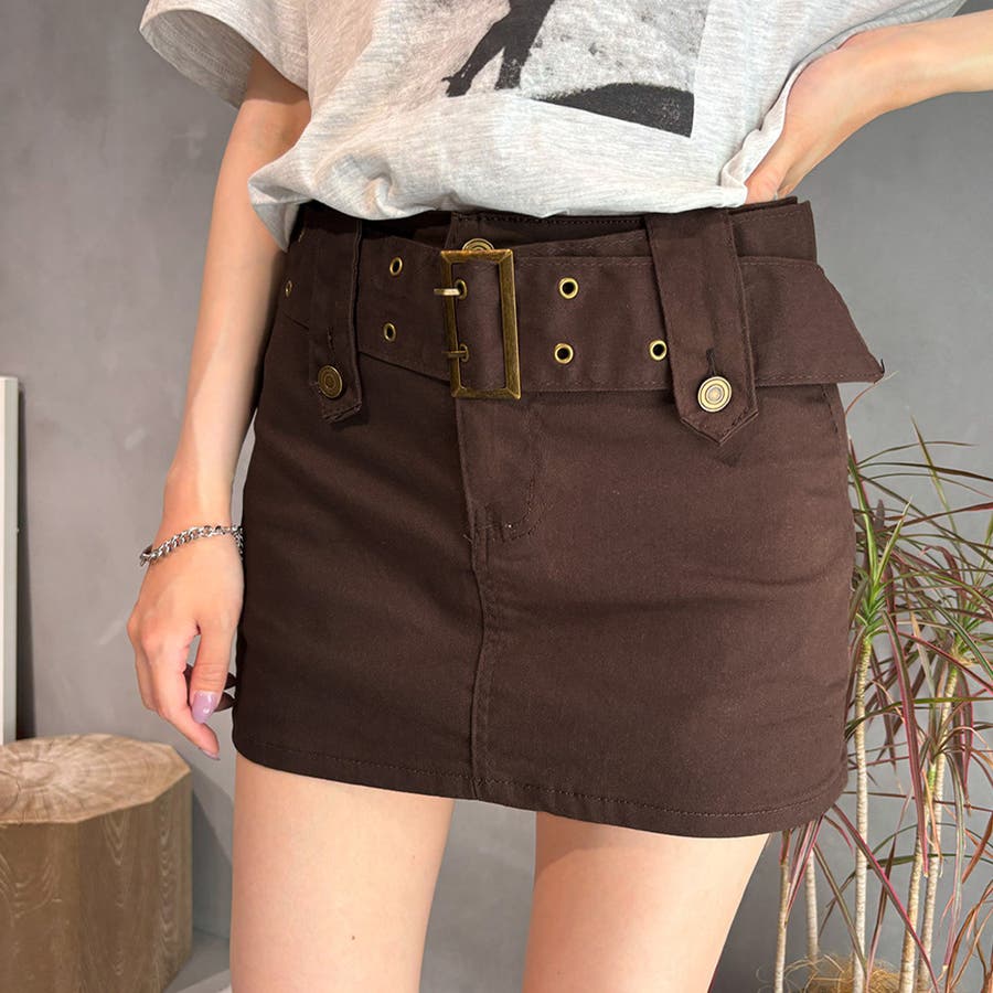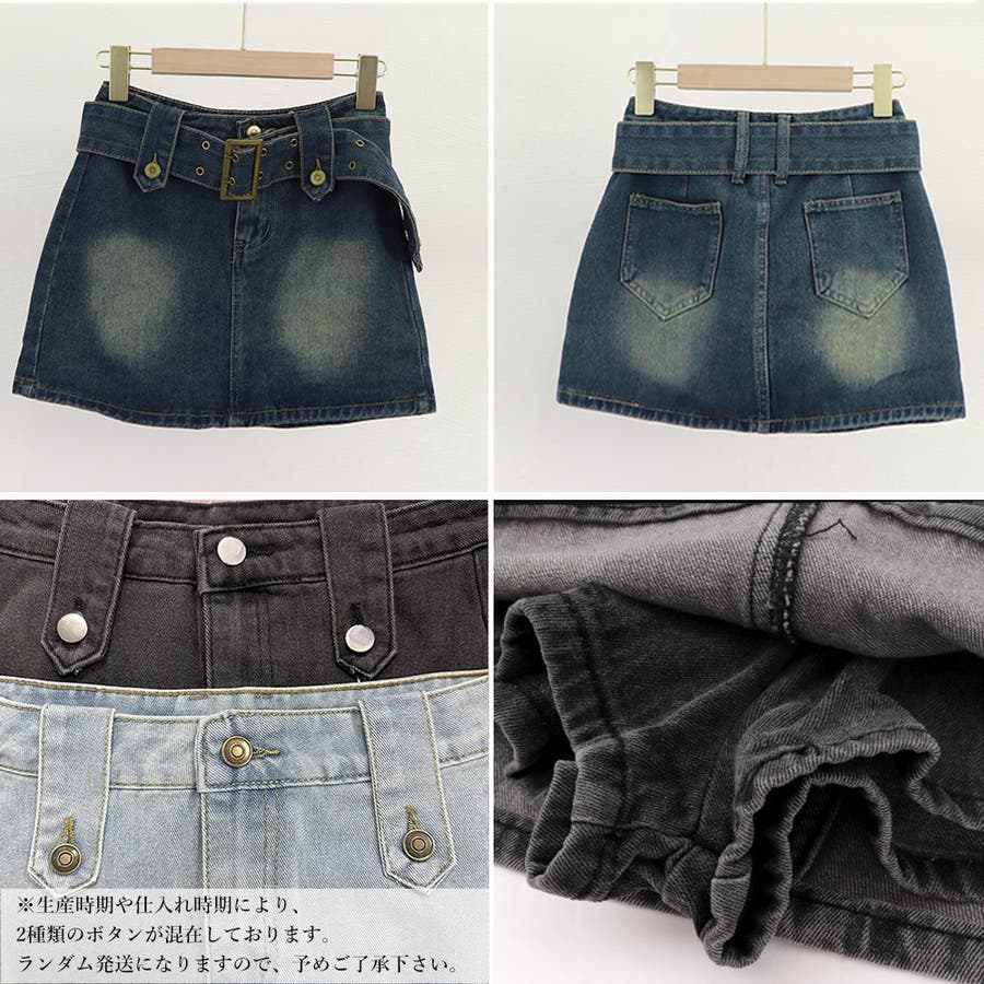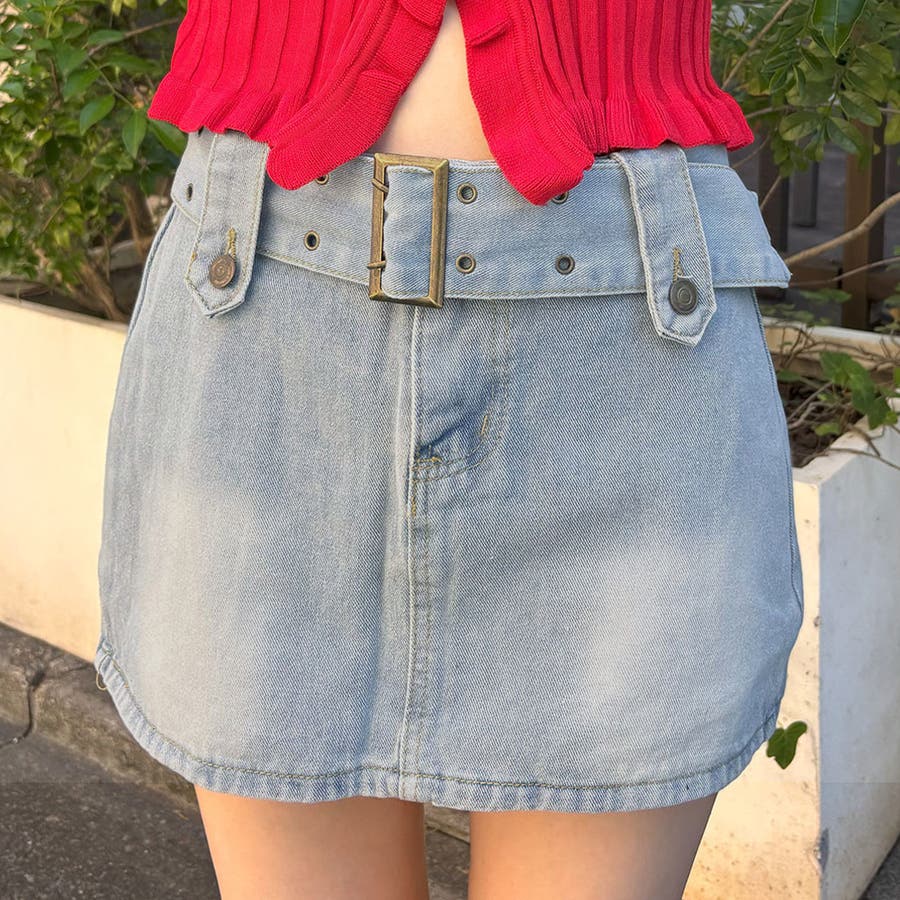 同素材の大振りのベルトが付属されたデニムキュロットスカート