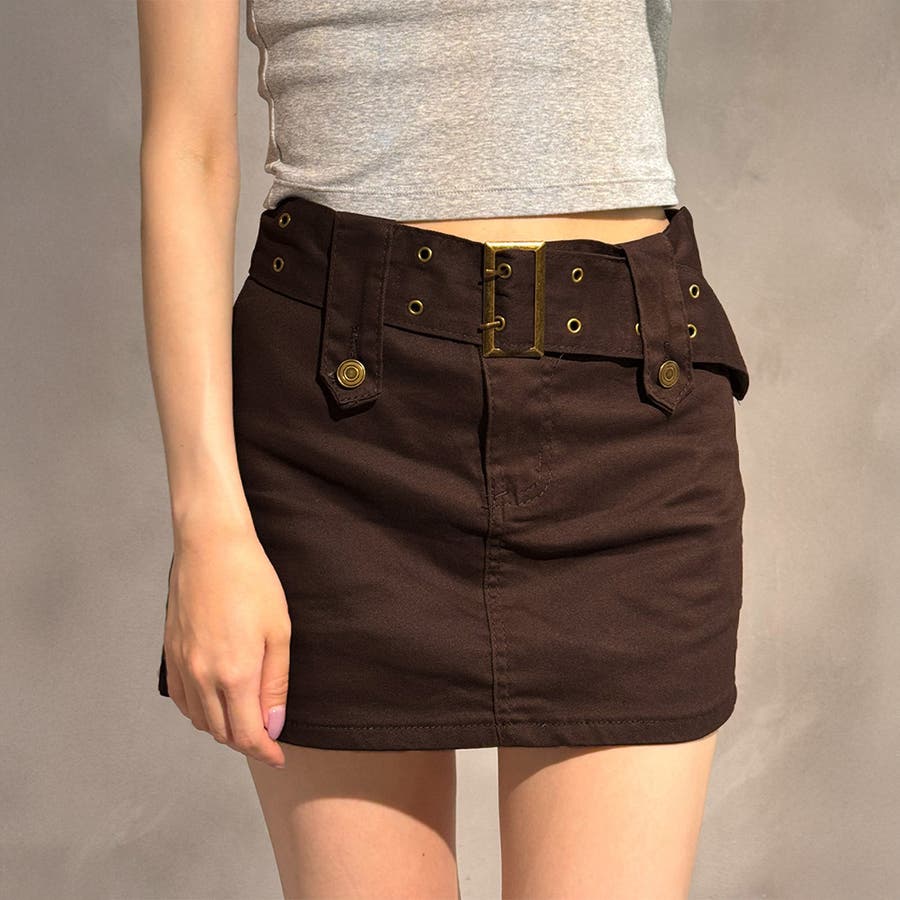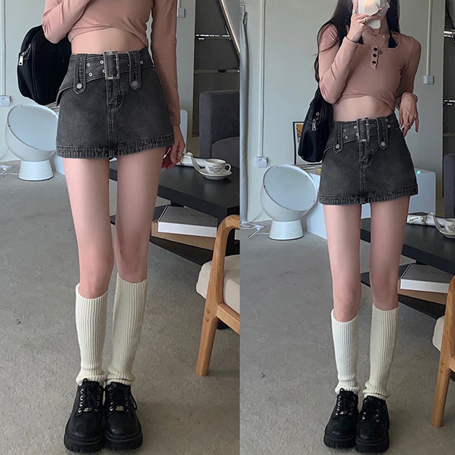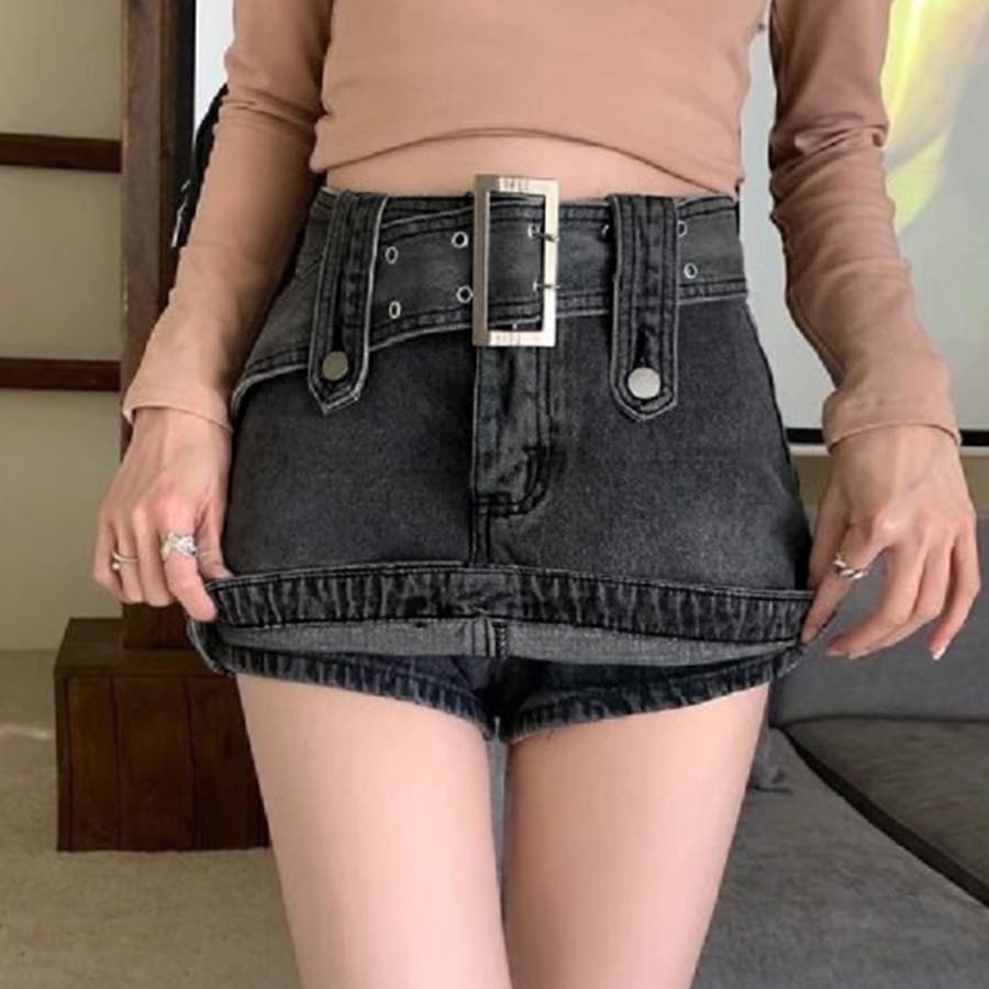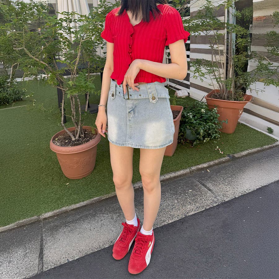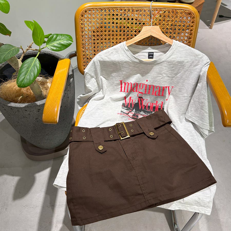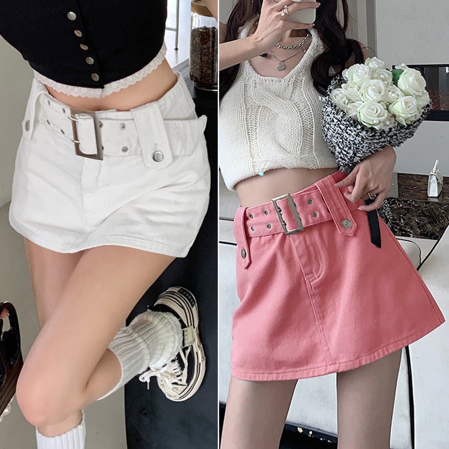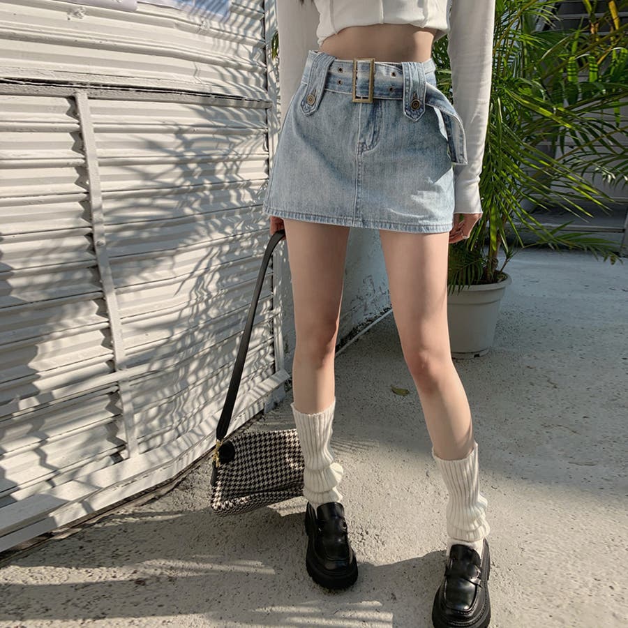 同素材の大振りのベルトが付属されたデニムキュロットスカート