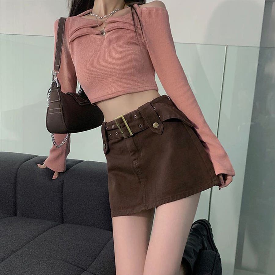 これからの季節はコンパクトなカットソーやタンクトップ、キャミソールを合わせてカジュアルに着こなすとトレンドコーデに◎