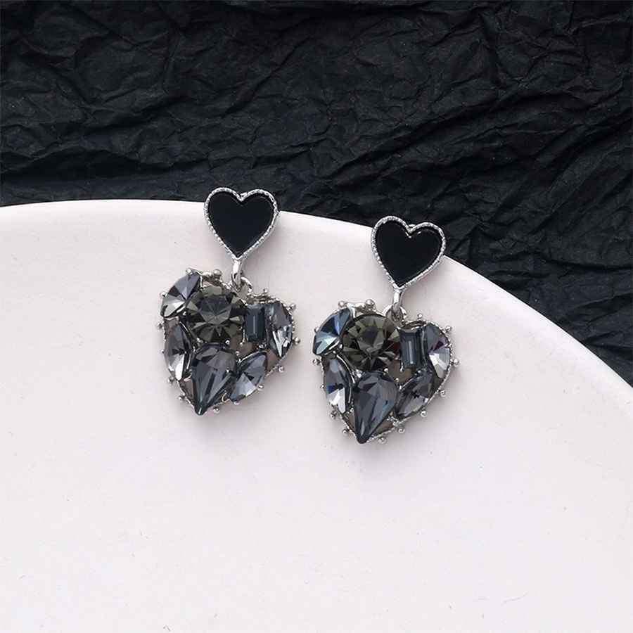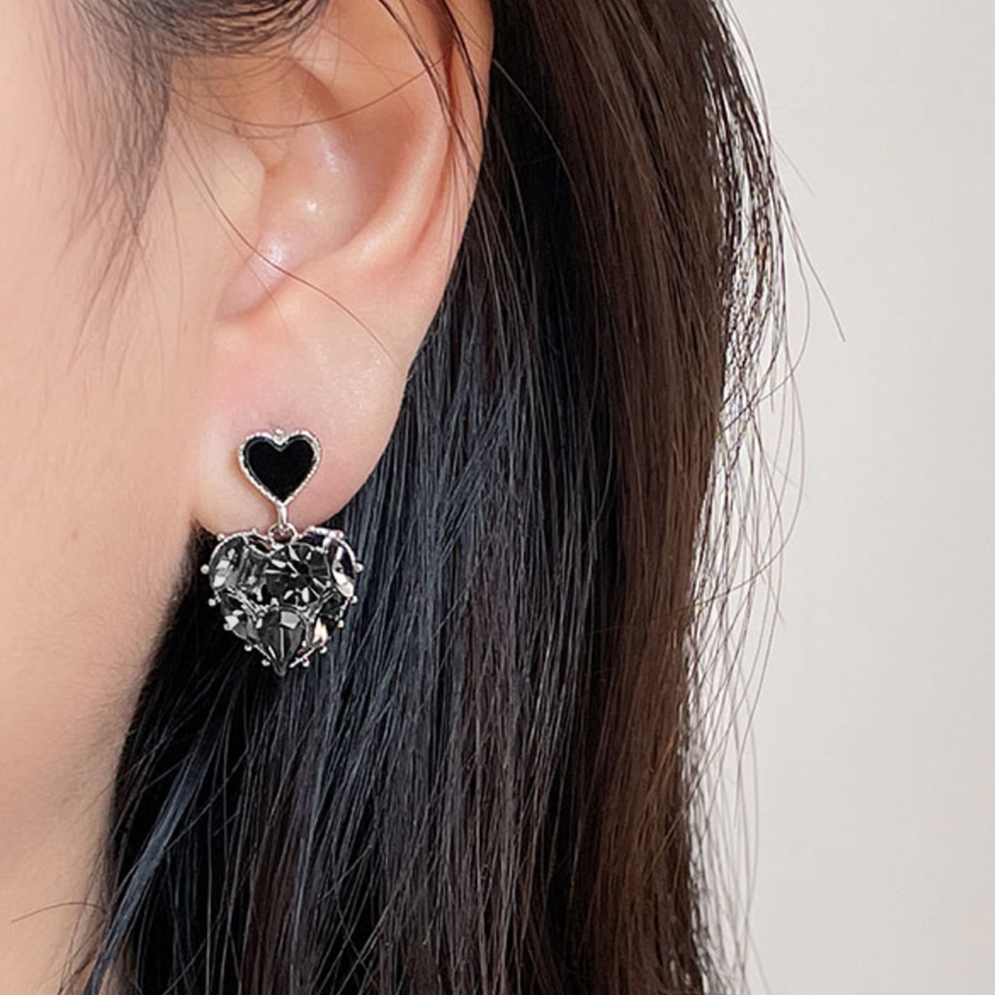 ラインストーンが散りばめられた大粒ハートモチーフが輝きながら揺れて、いつものスタイルに華やかさをプラスする