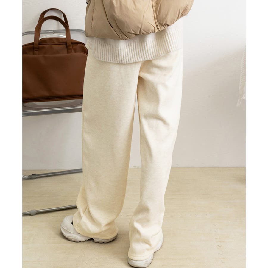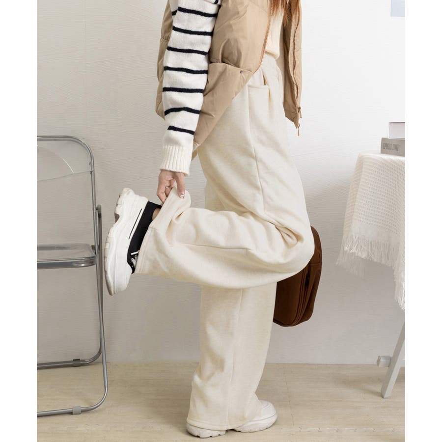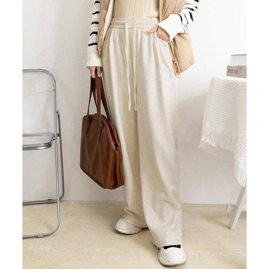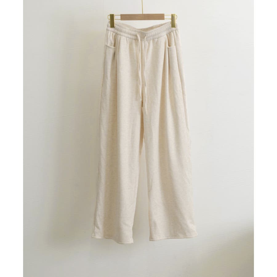 温かみのある裏起毛素材を使用した、リラックス感あふれるワイドパンツ。