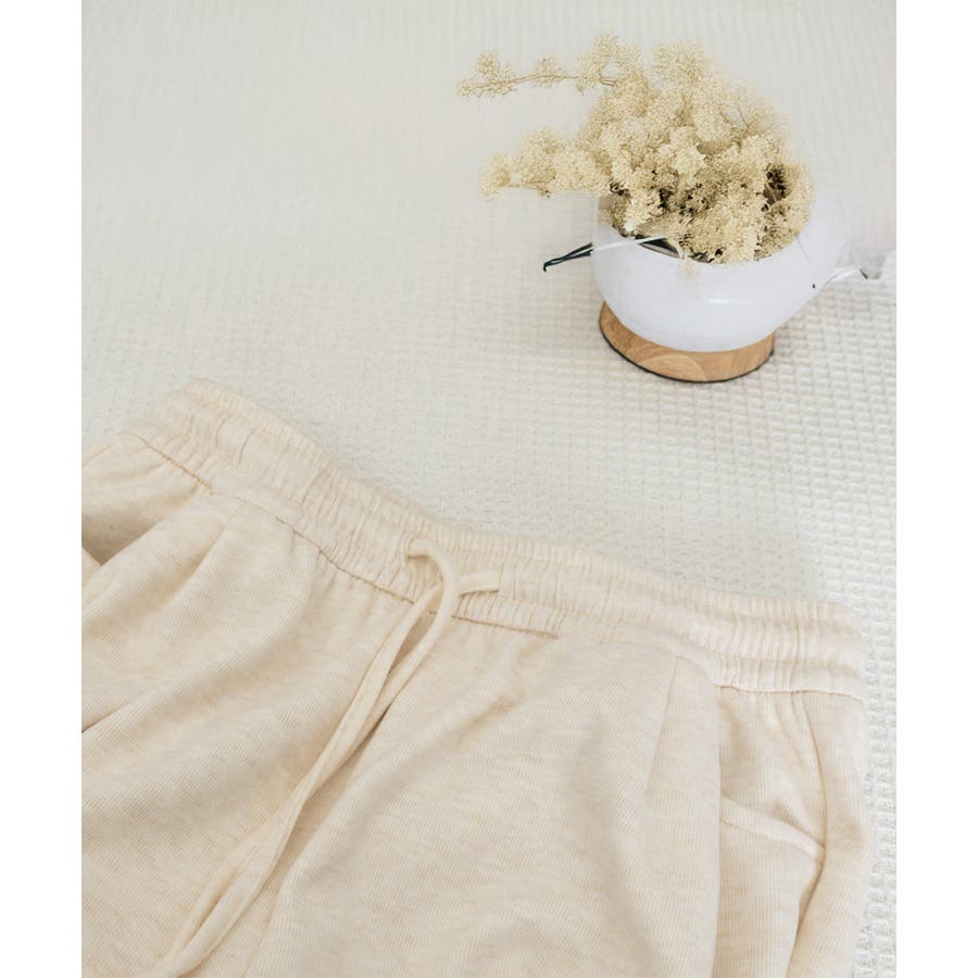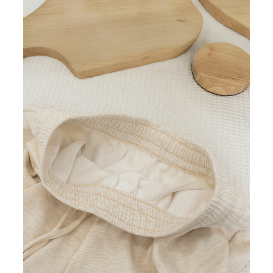 ウエストはゴム&紐仕様で、お好みに合わせて快適な履き心地を実現。