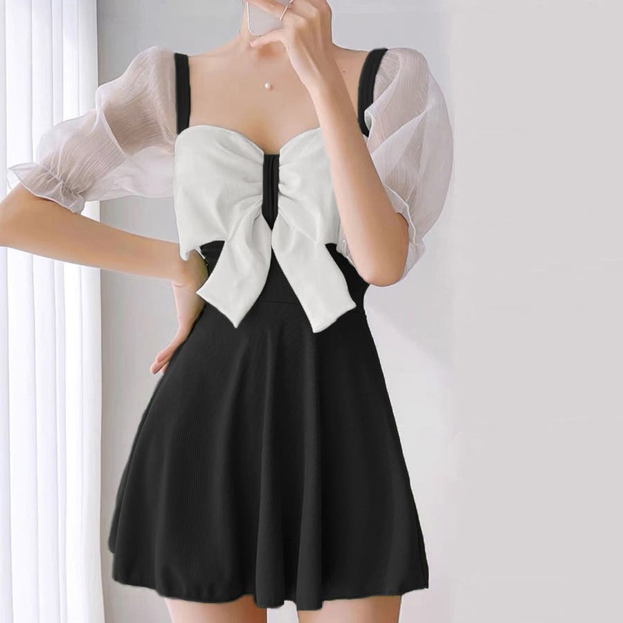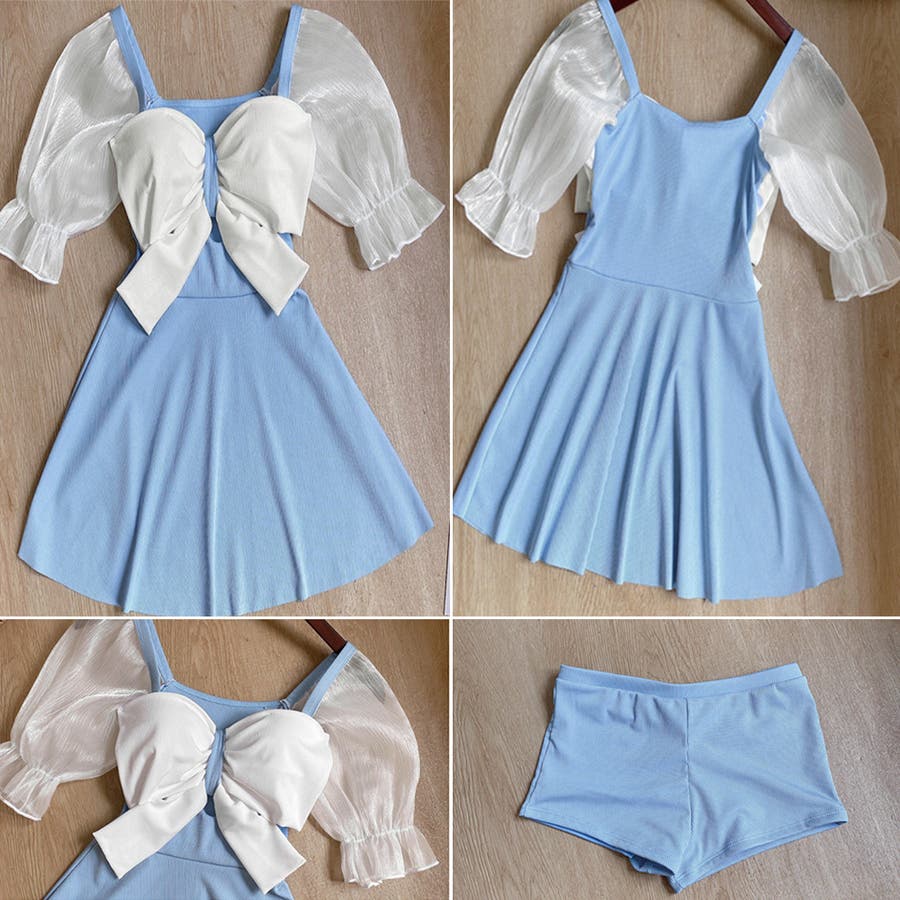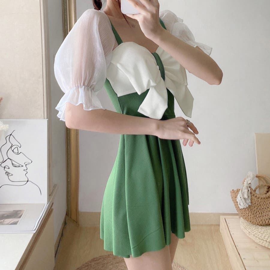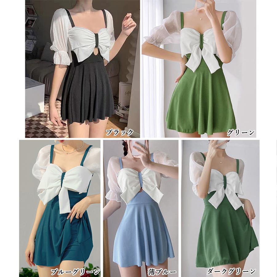 目を引く大きなリボンと甘いフリルが大人可愛いワンピース水着2点セット