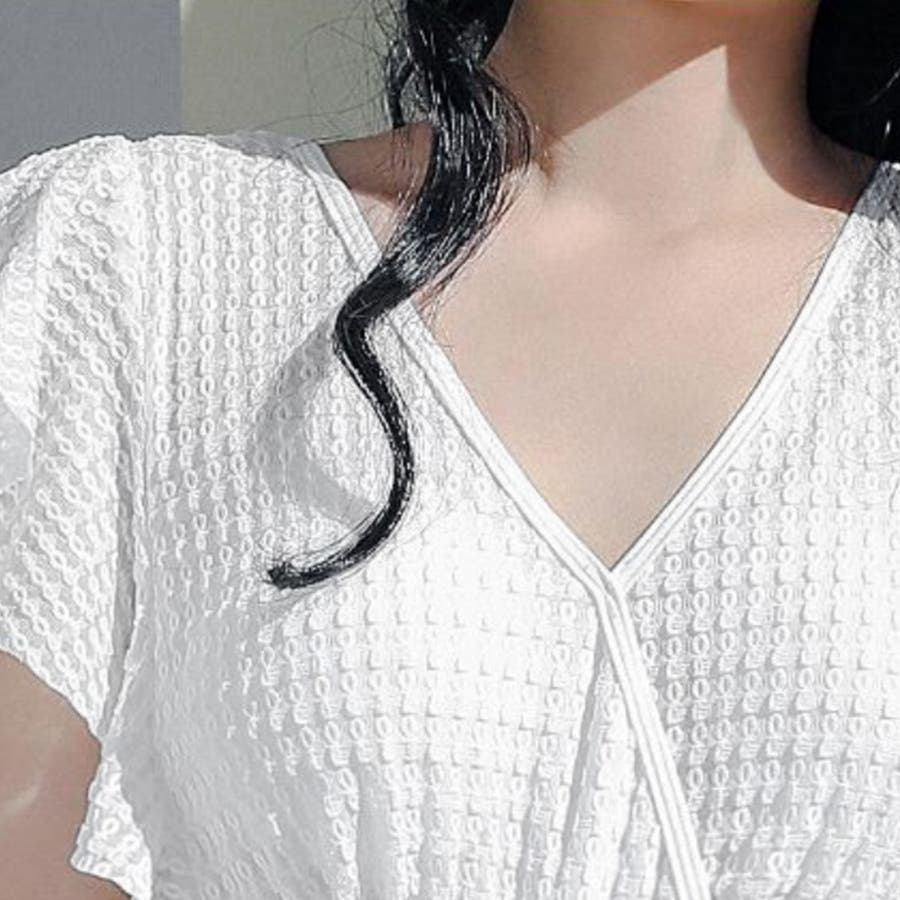 女性らしい柔らかい雰囲気を演出してくれるカシュクール風ワンピース水着です