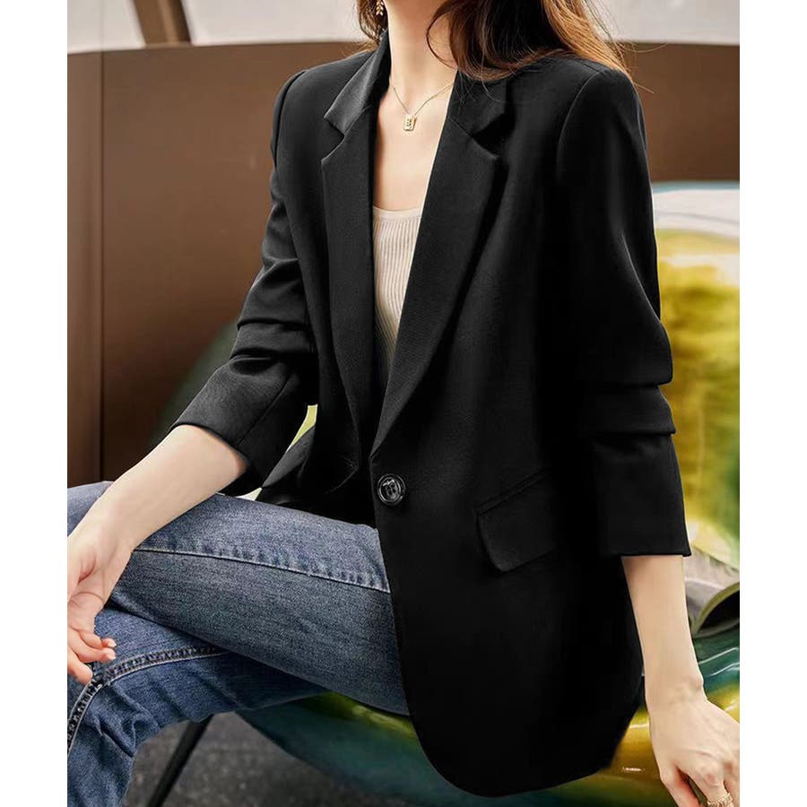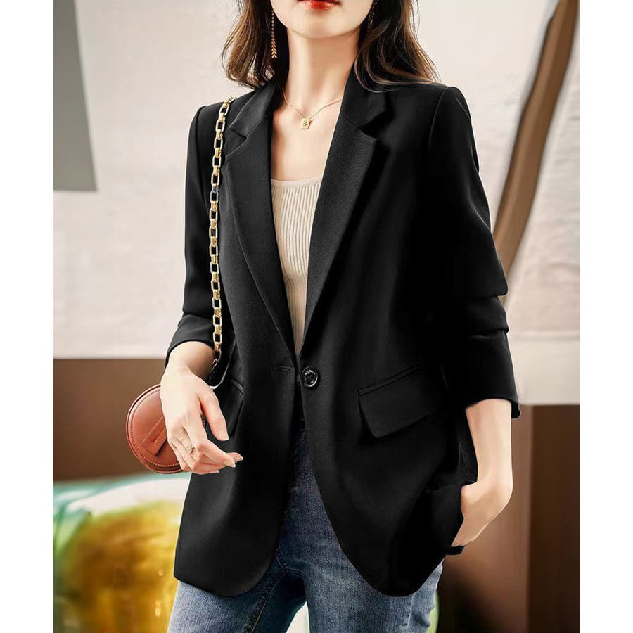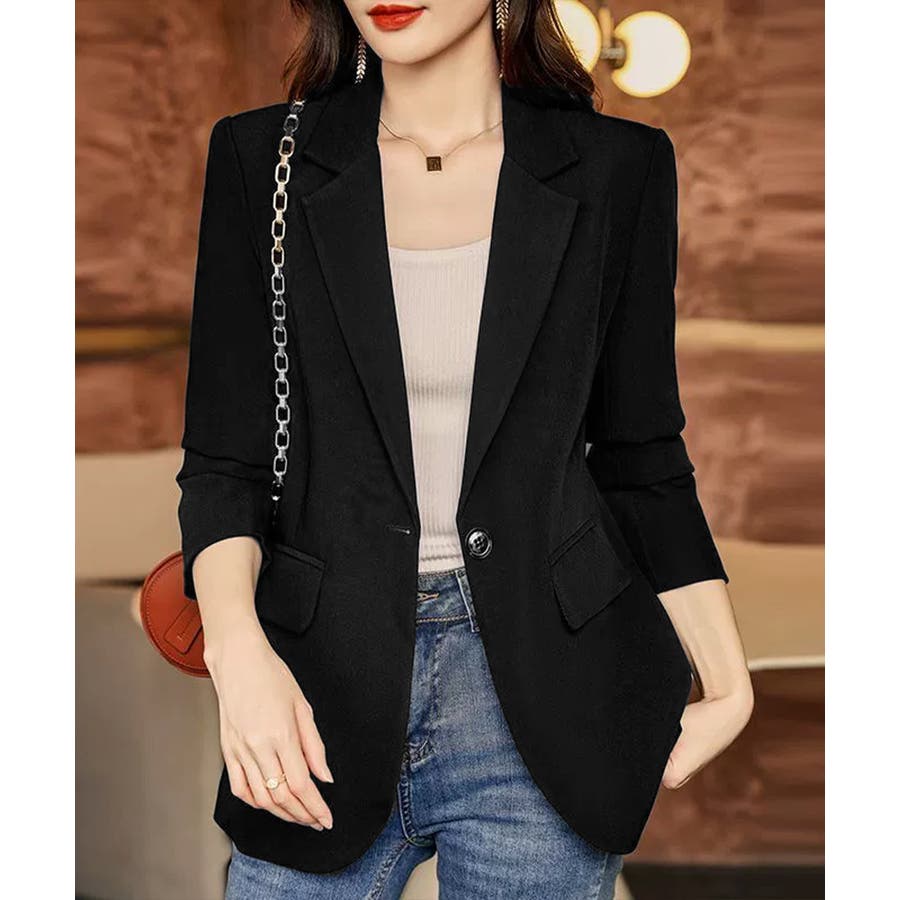 カジュアル 通勤服 お洒落 オフィス服 入園式ジャケット黒