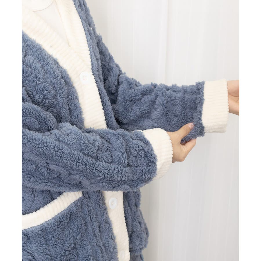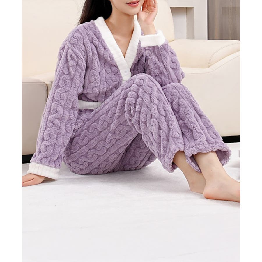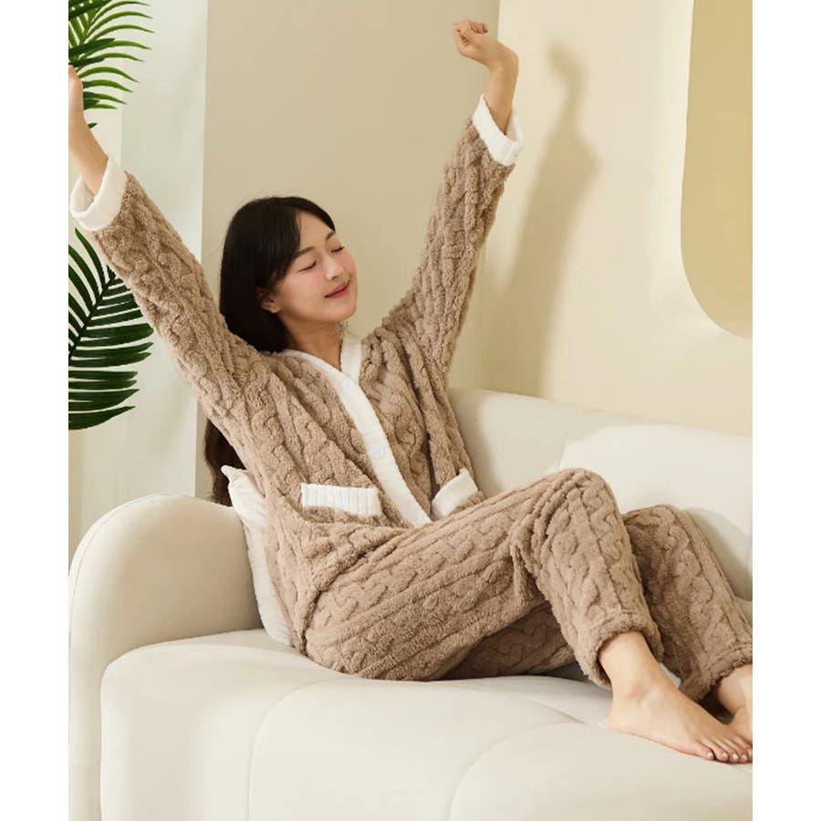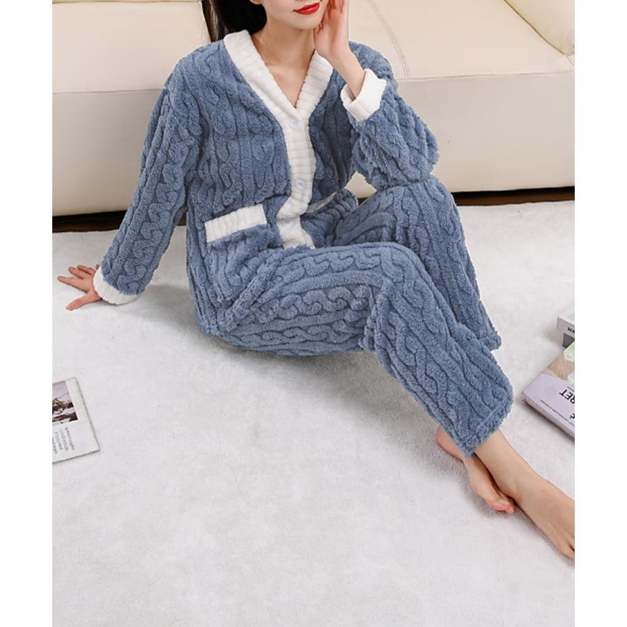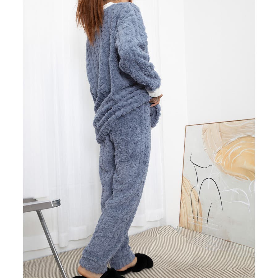 ケーブル柄のふわふわフリース素材で仕上げたパジャマ上下セット。