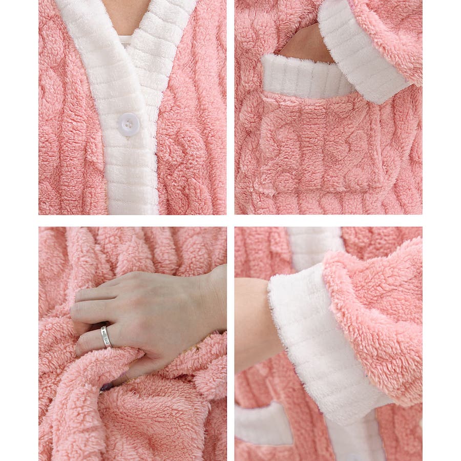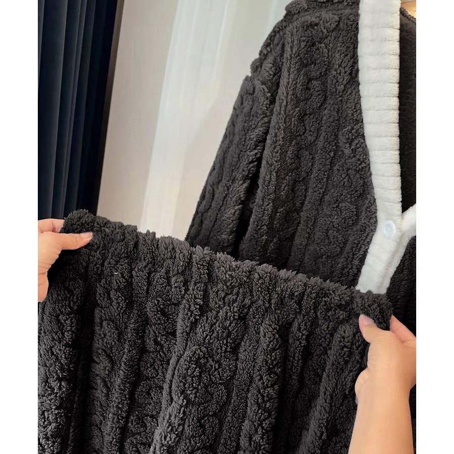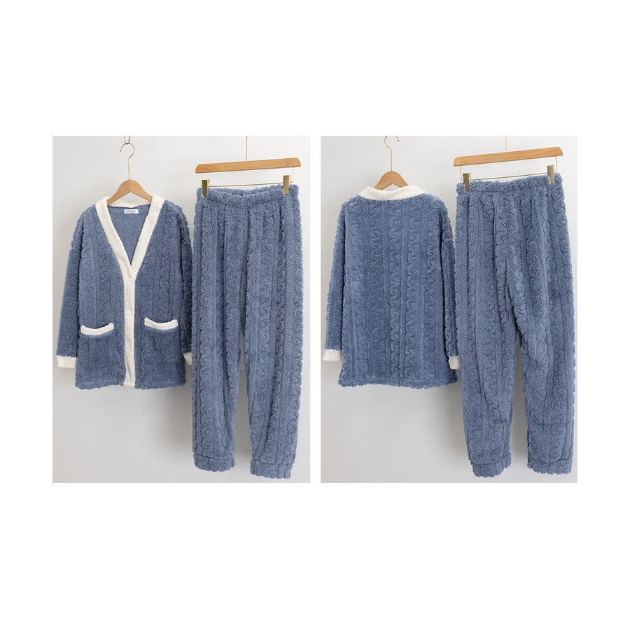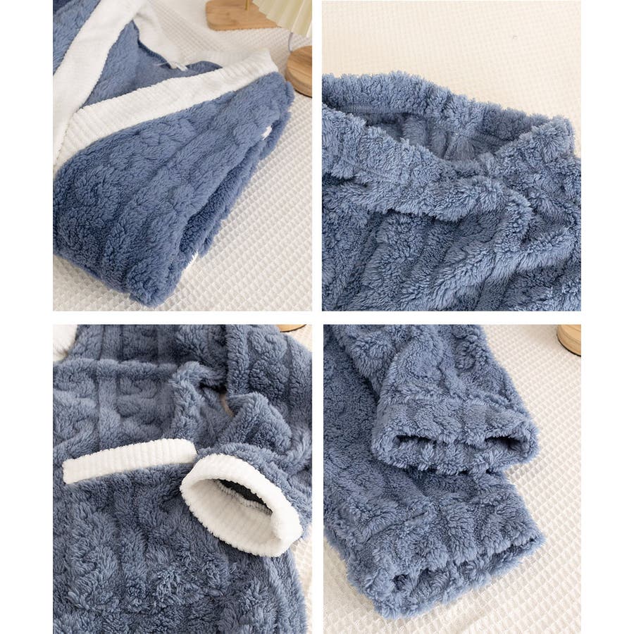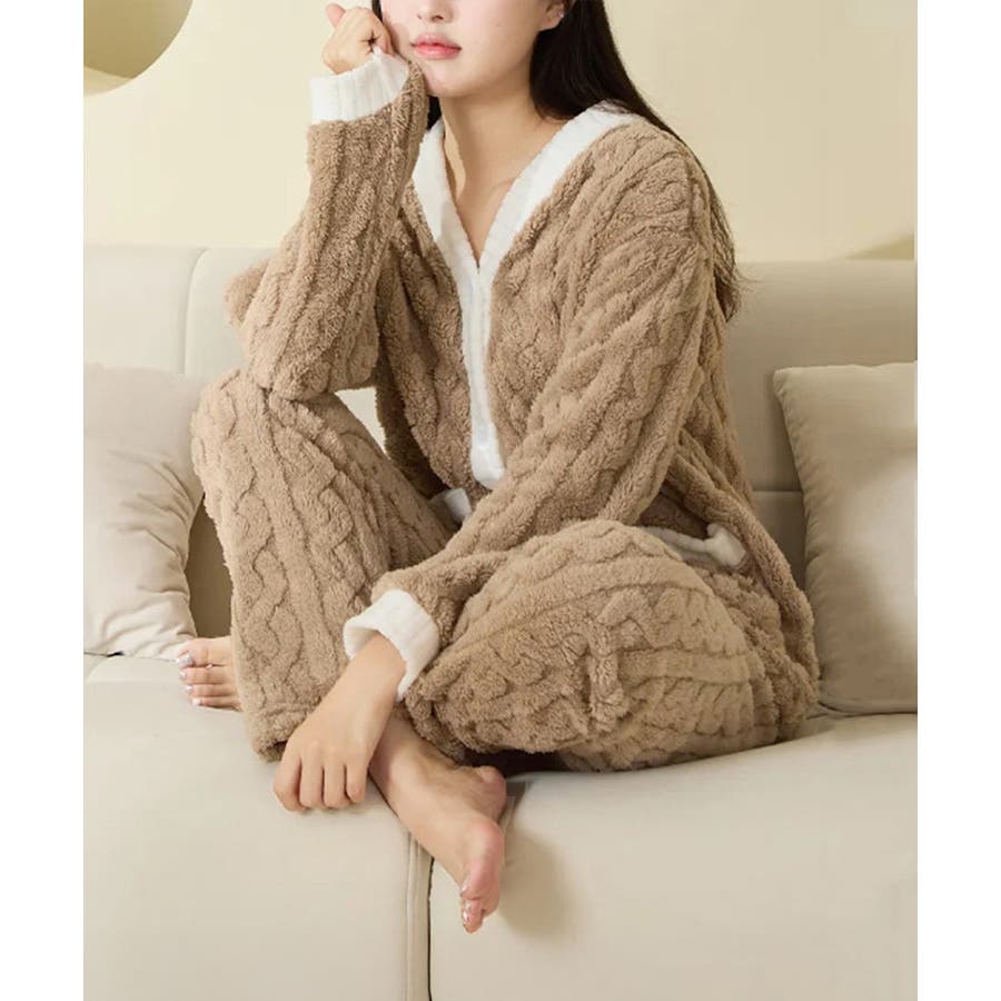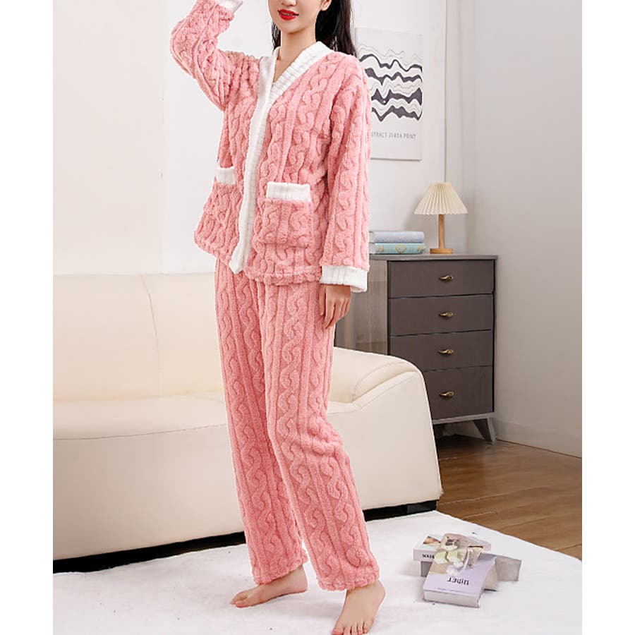 ケーブル柄のふわふわフリース素材で仕上げたパジャマ上下セット。