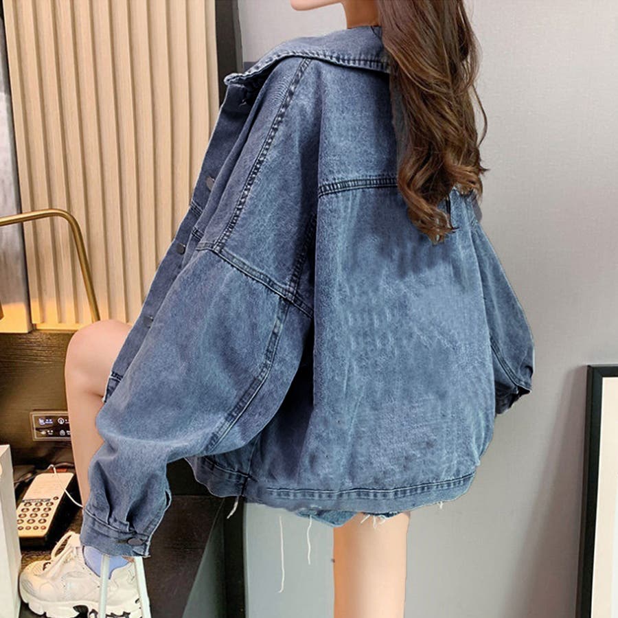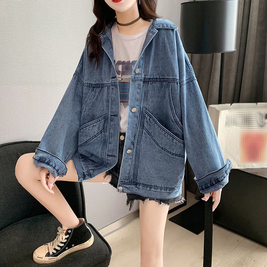 大きいポケット 韓国風長袖アウター 長袖 デニムコート