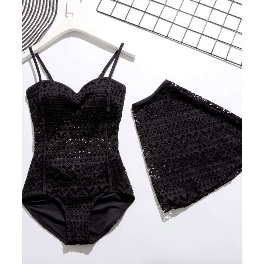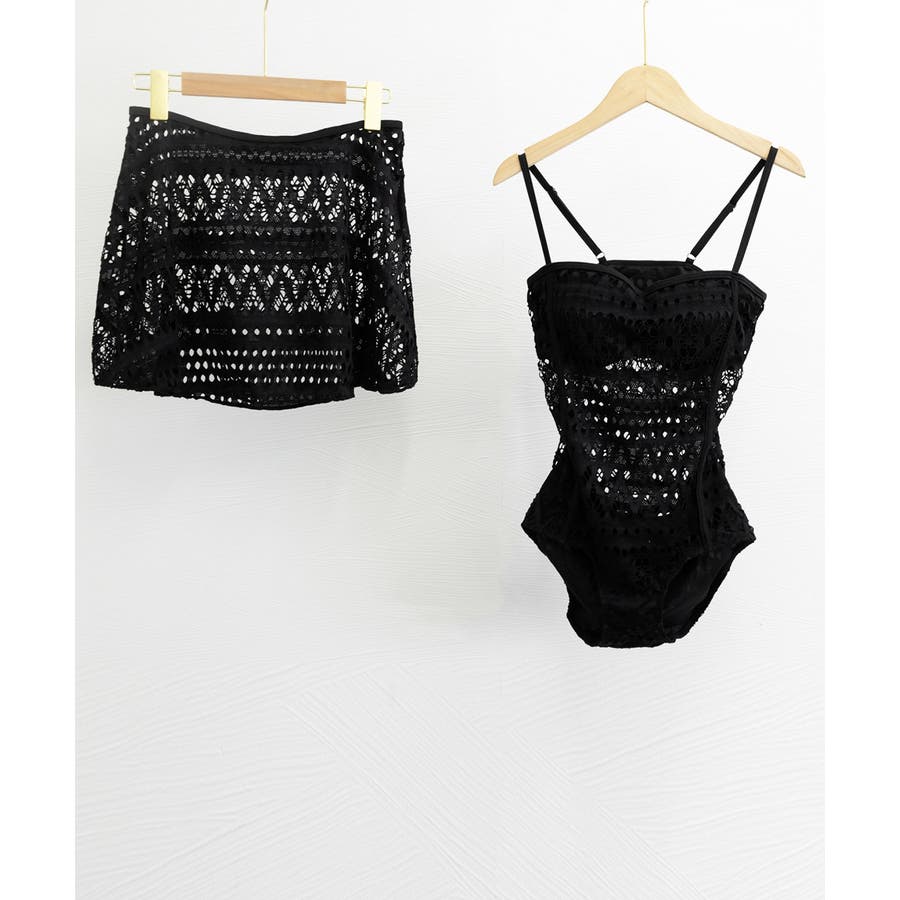 フェミニンな雰囲気が魅力の総レースのワンピース水着2点セット