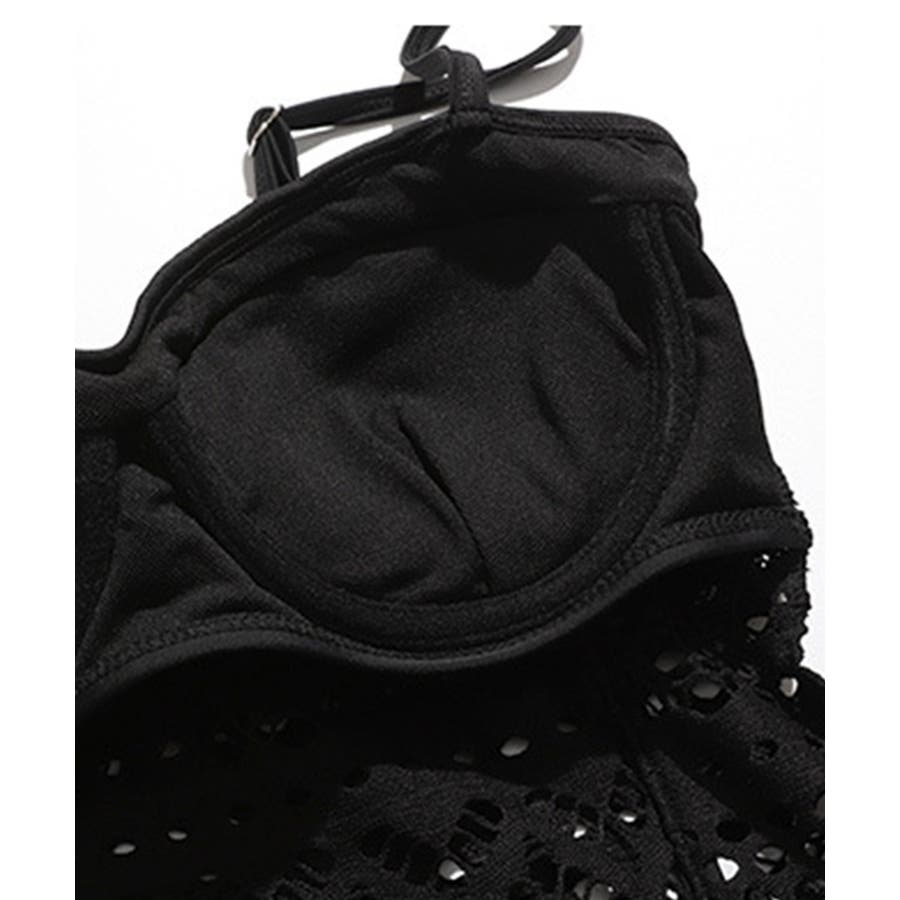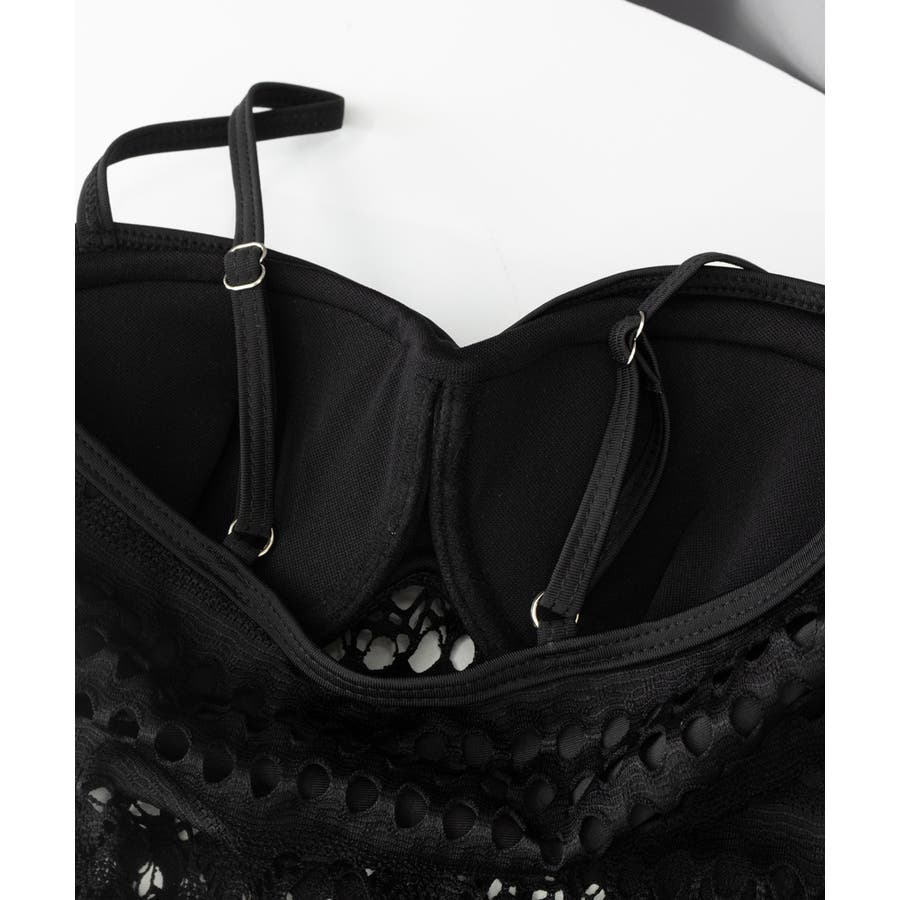 ビキニの上からレース生地が覆うようなデザインになっており、洗練された美しさを表現