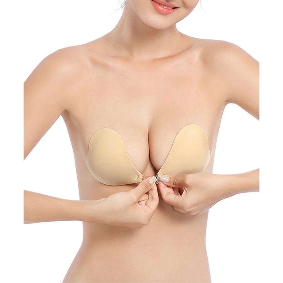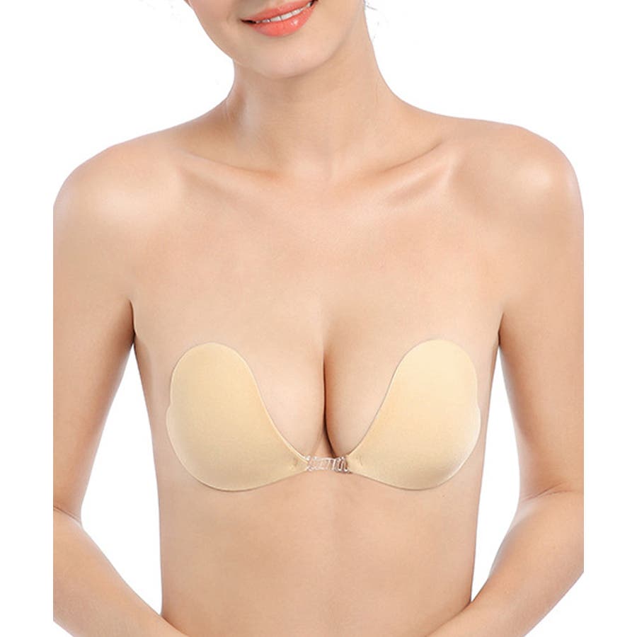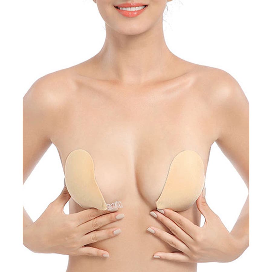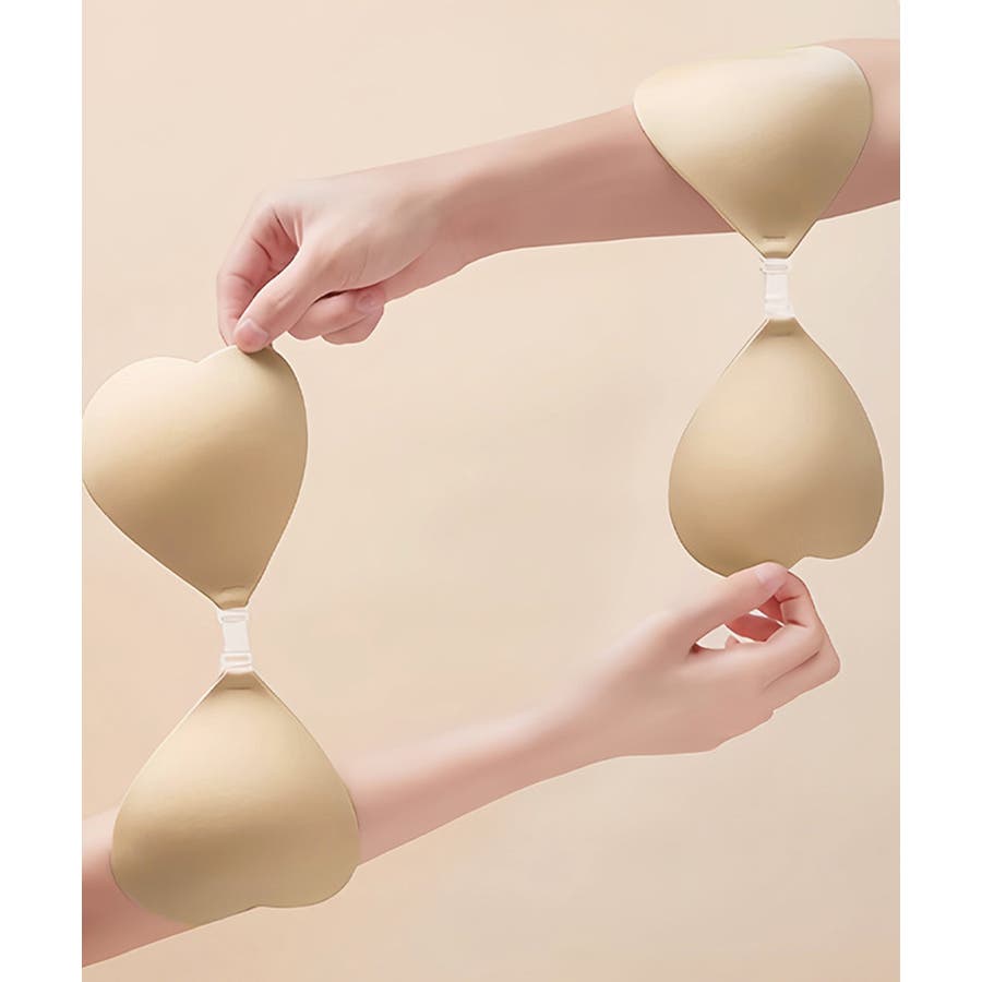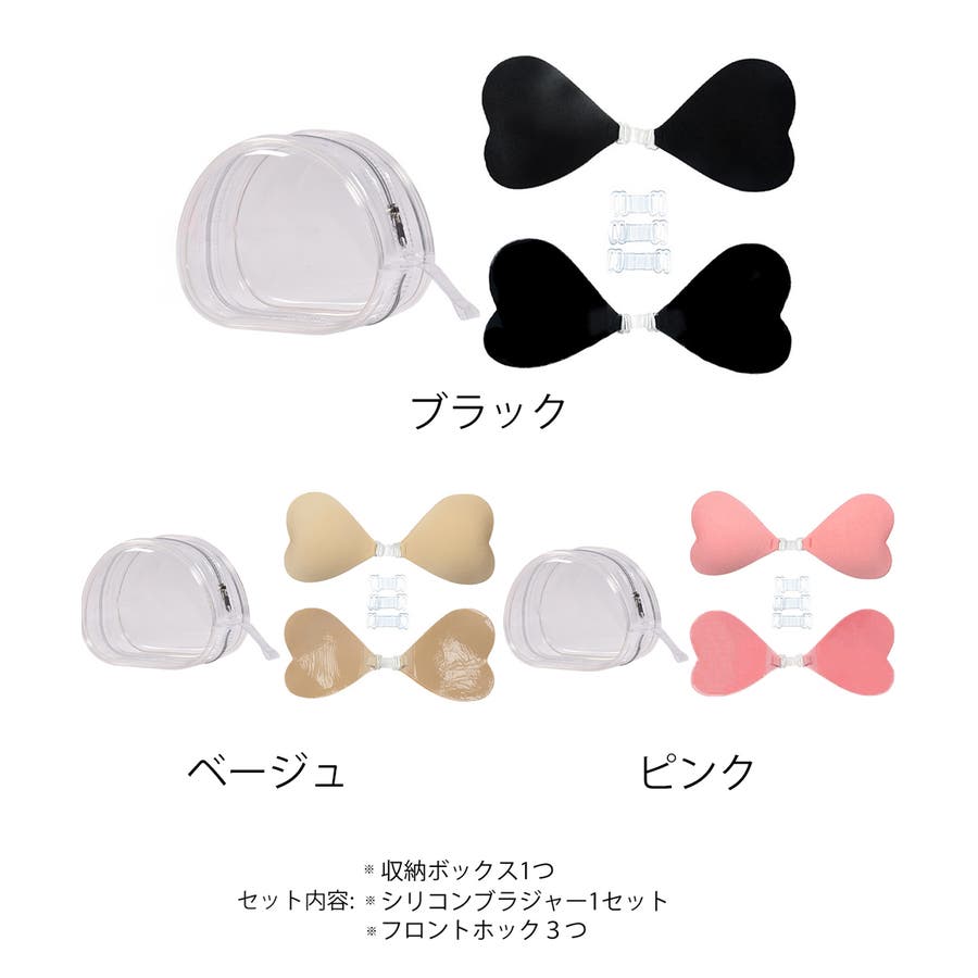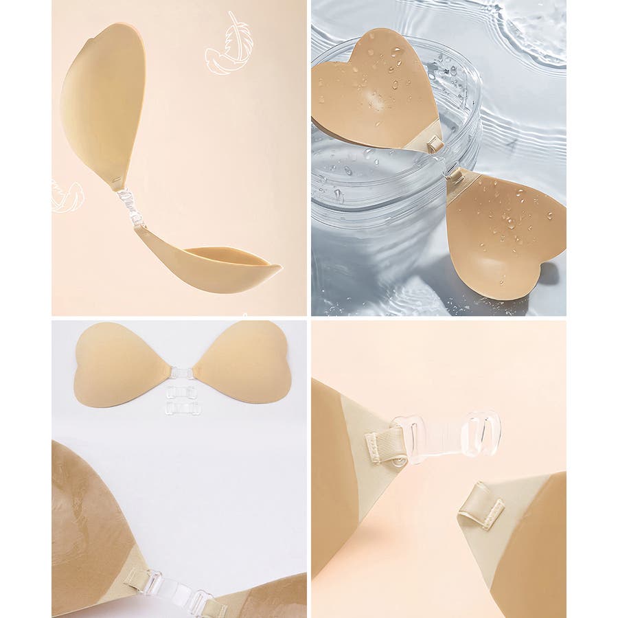 ハート型デザインが可愛らしい、ストラップレスのシリコンブラ