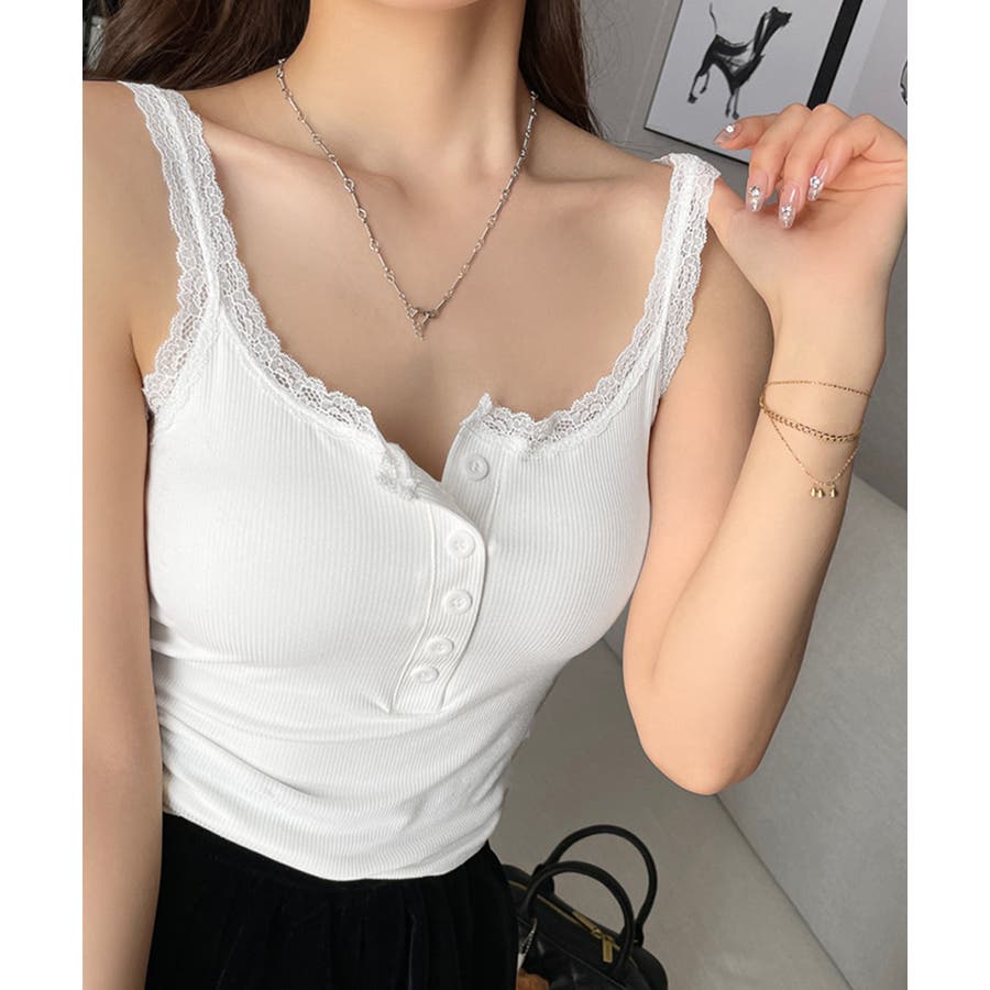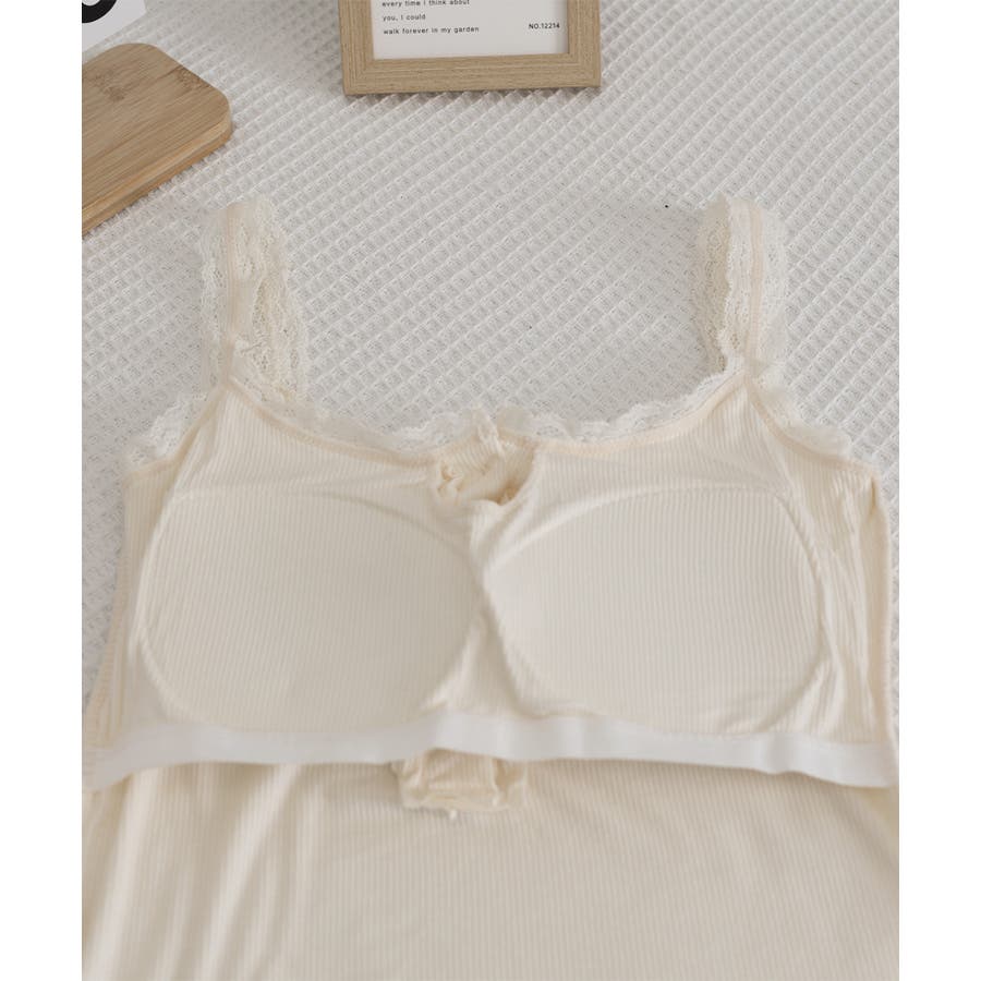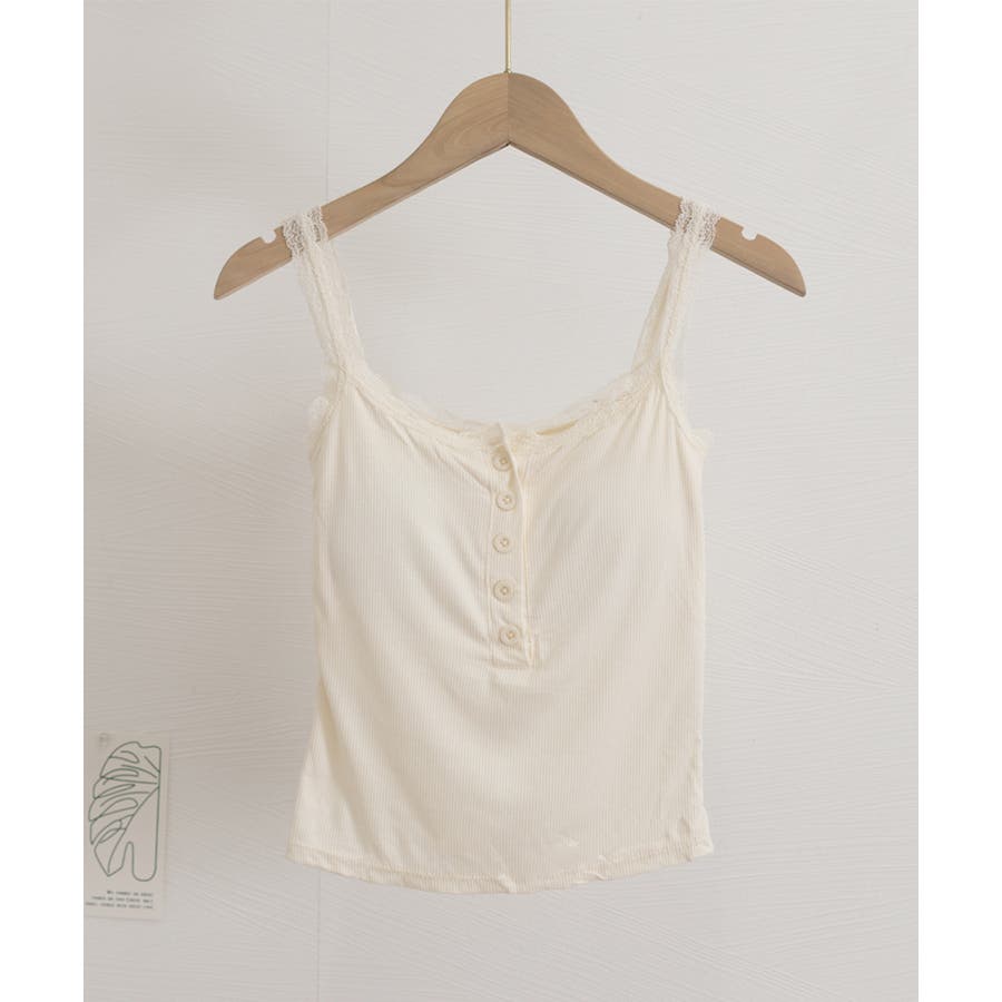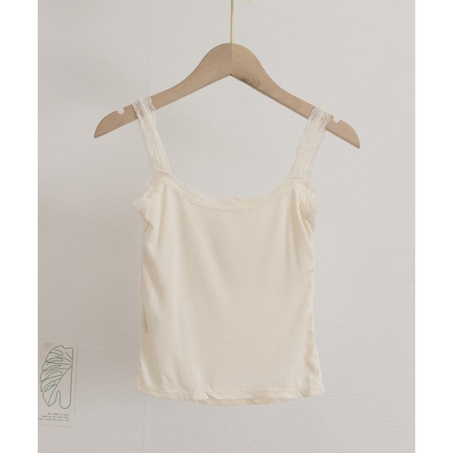 柔らかなリブ素材を使用したレース付きキャミソール。