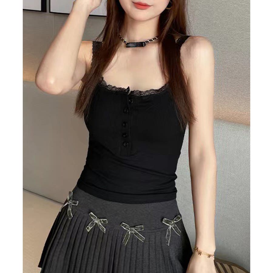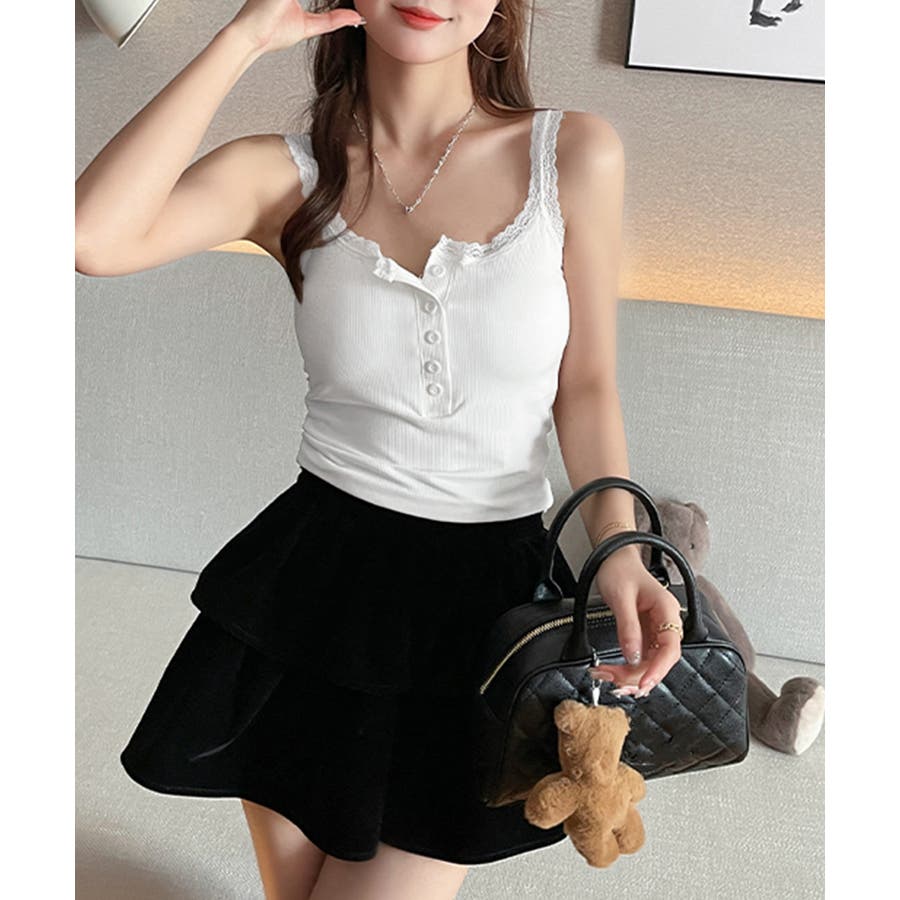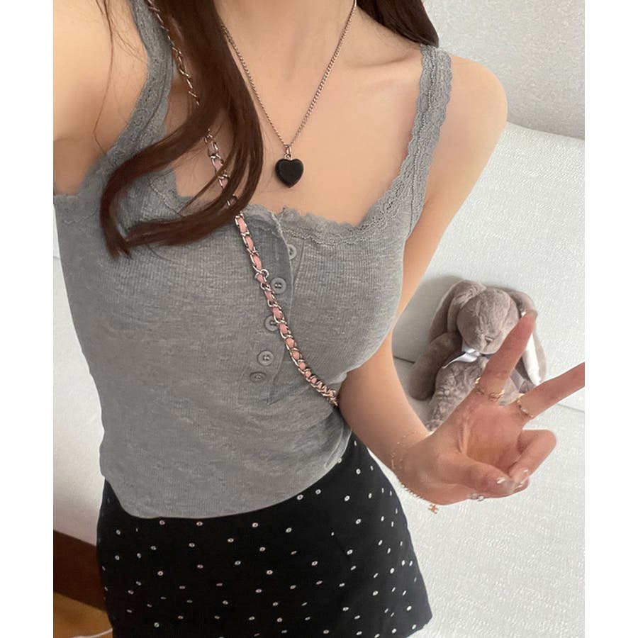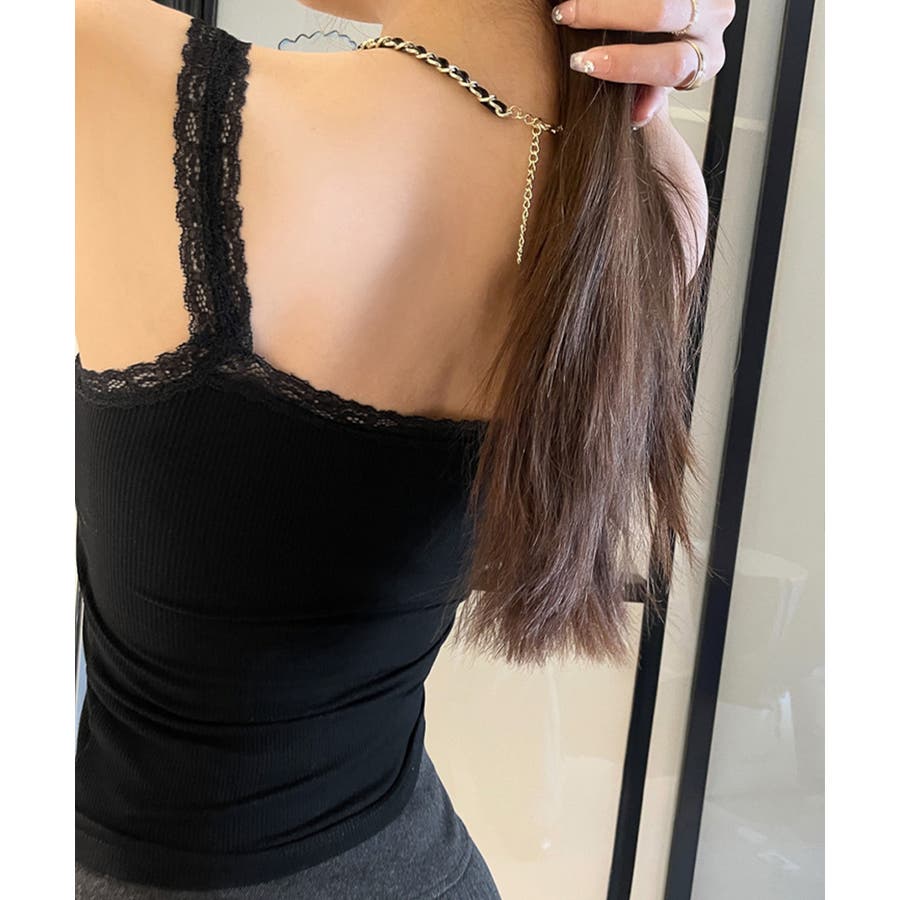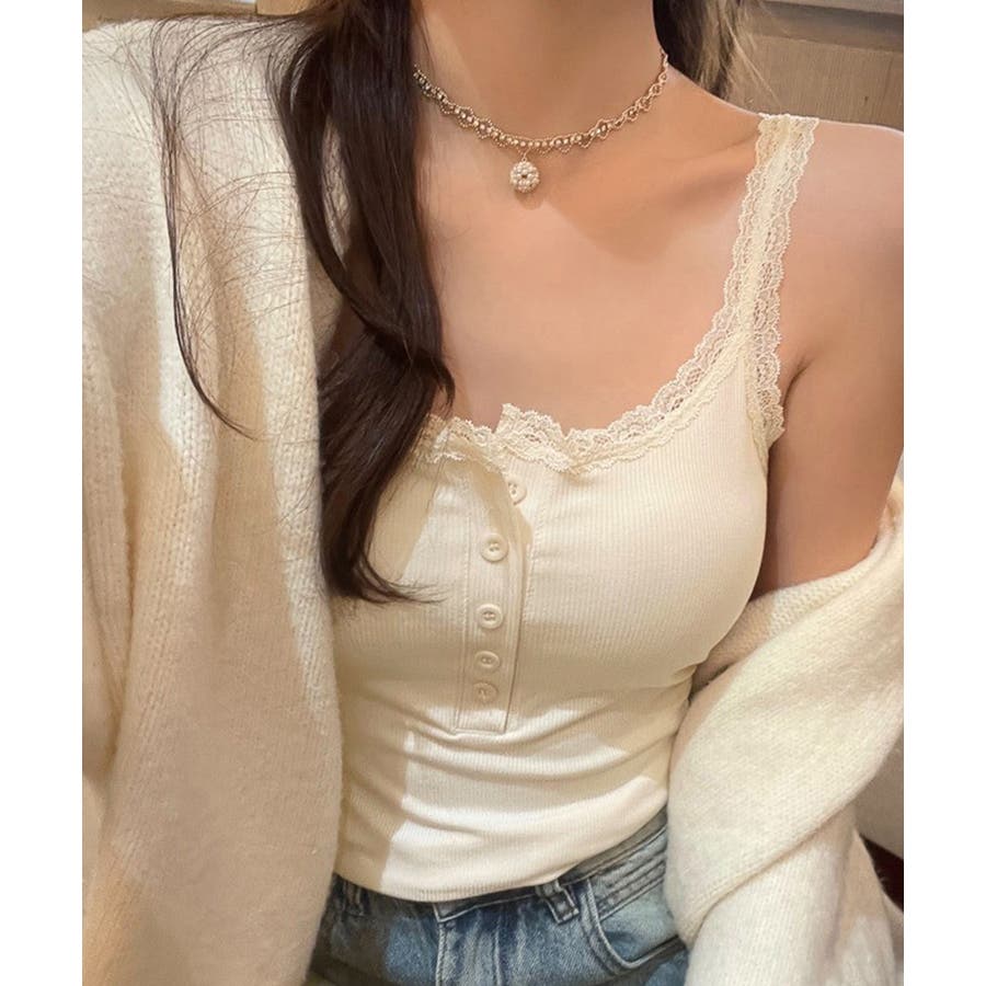 柔らかなリブ素材を使用したレース付きキャミソール。