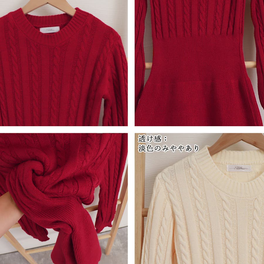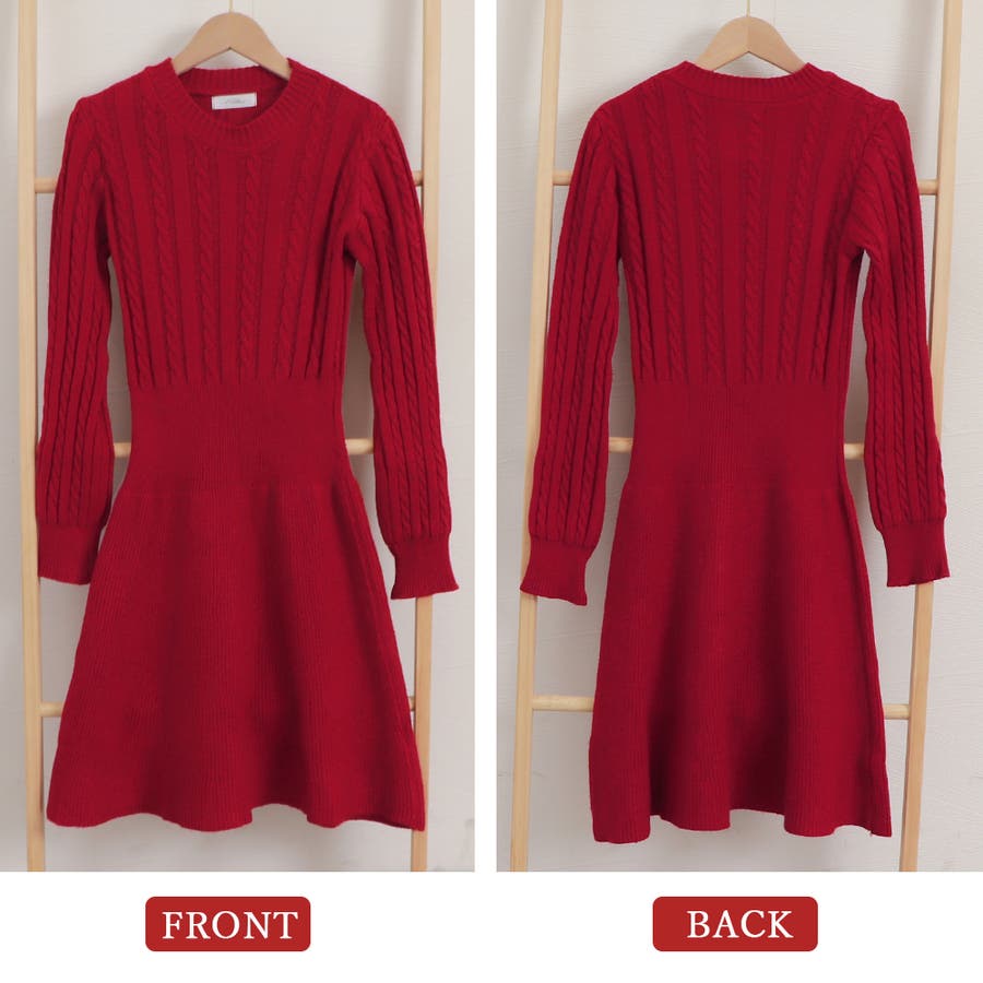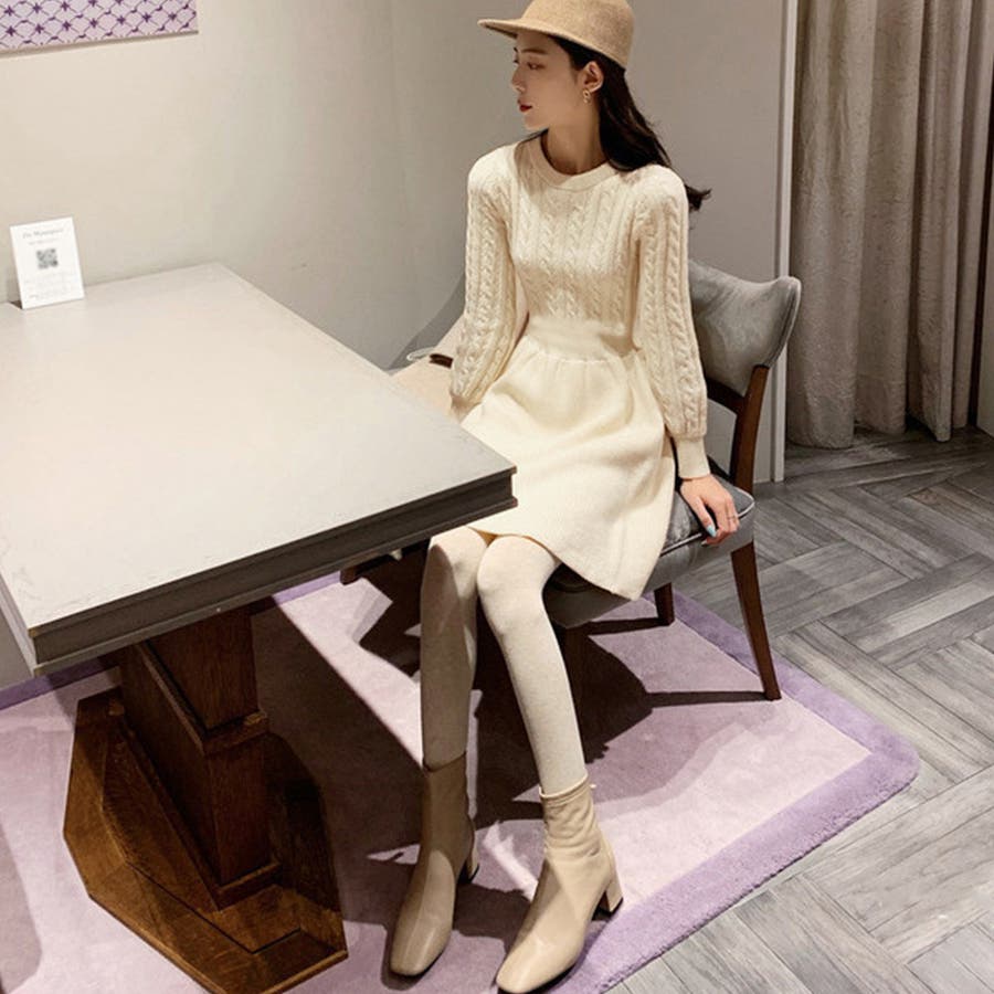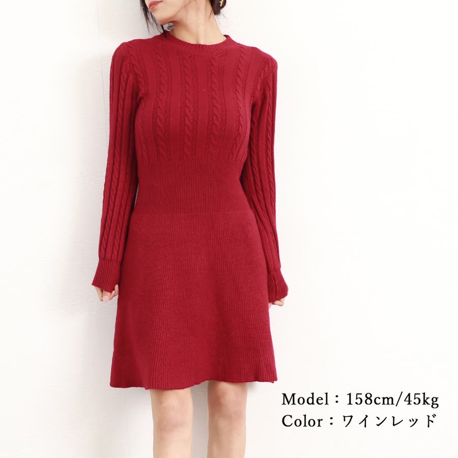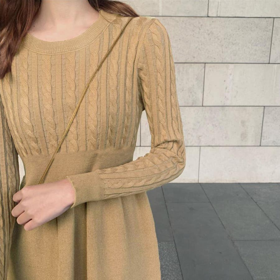 ケーブル編みがアクセントに映えるニットワンピース