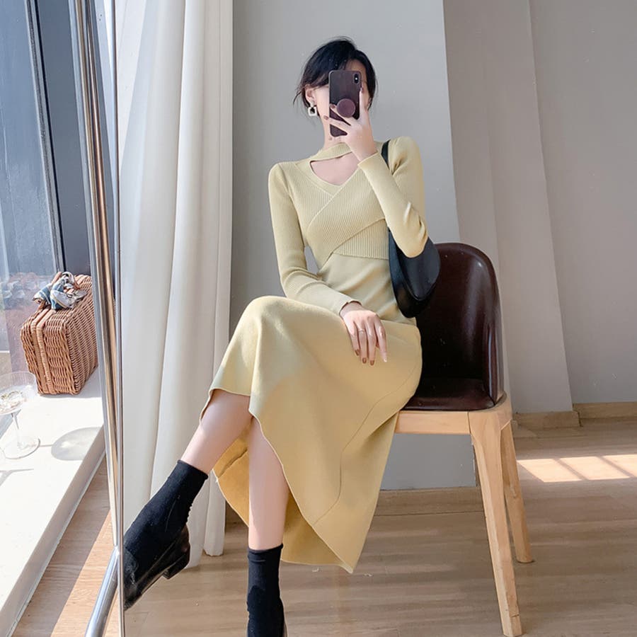 セクシーワンピース 無地ワンピ お洒落 フェミニン上品韓国