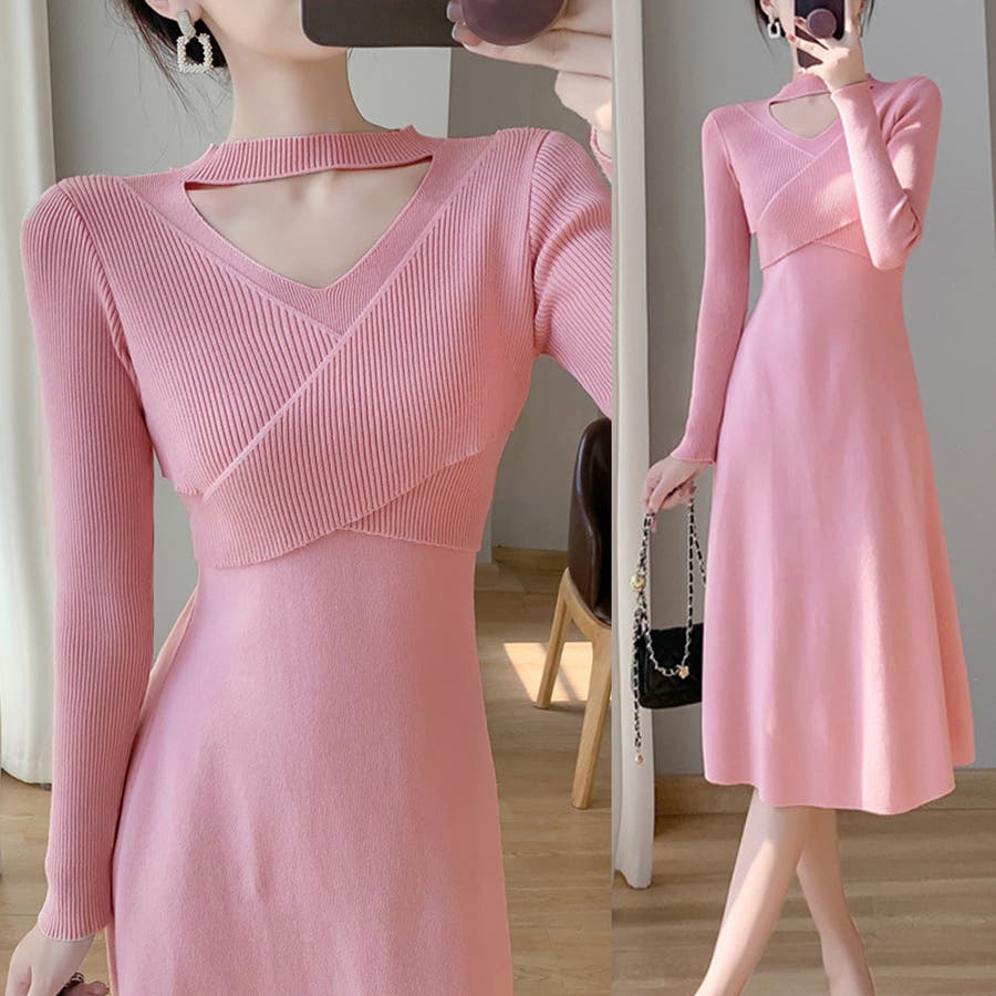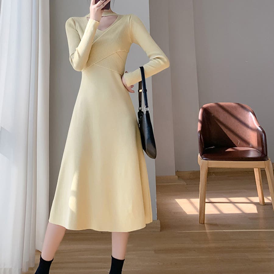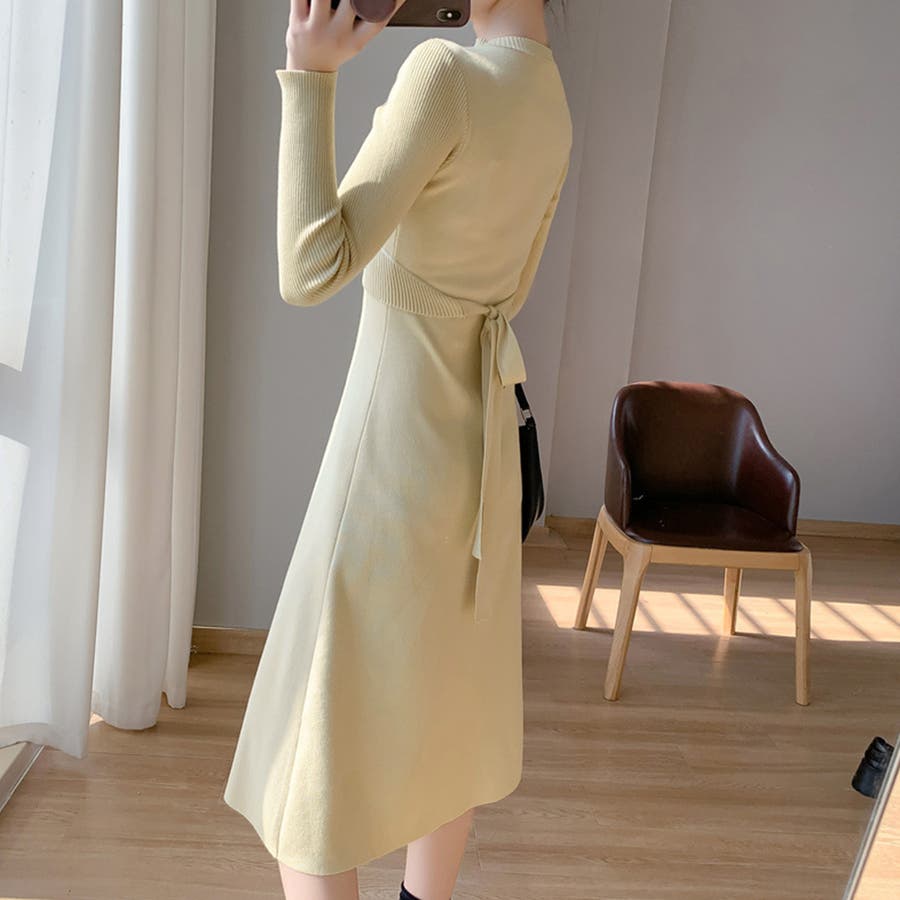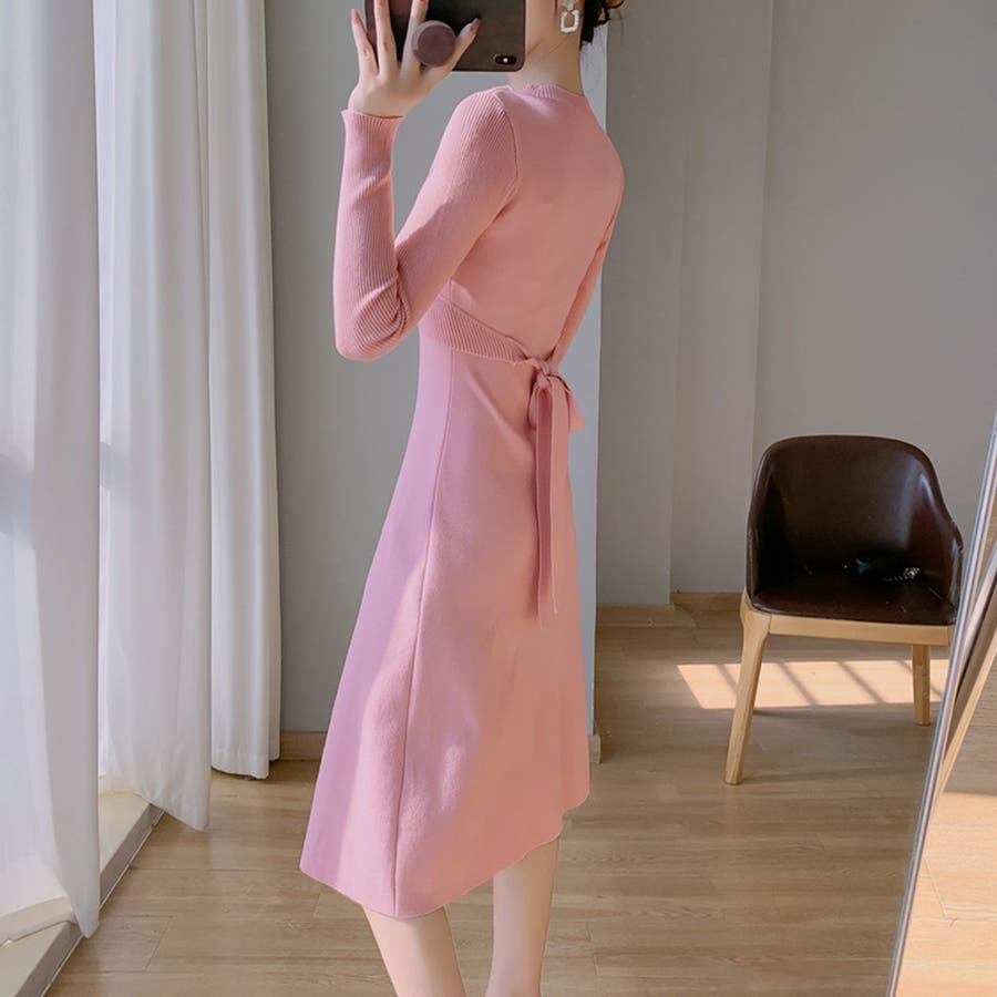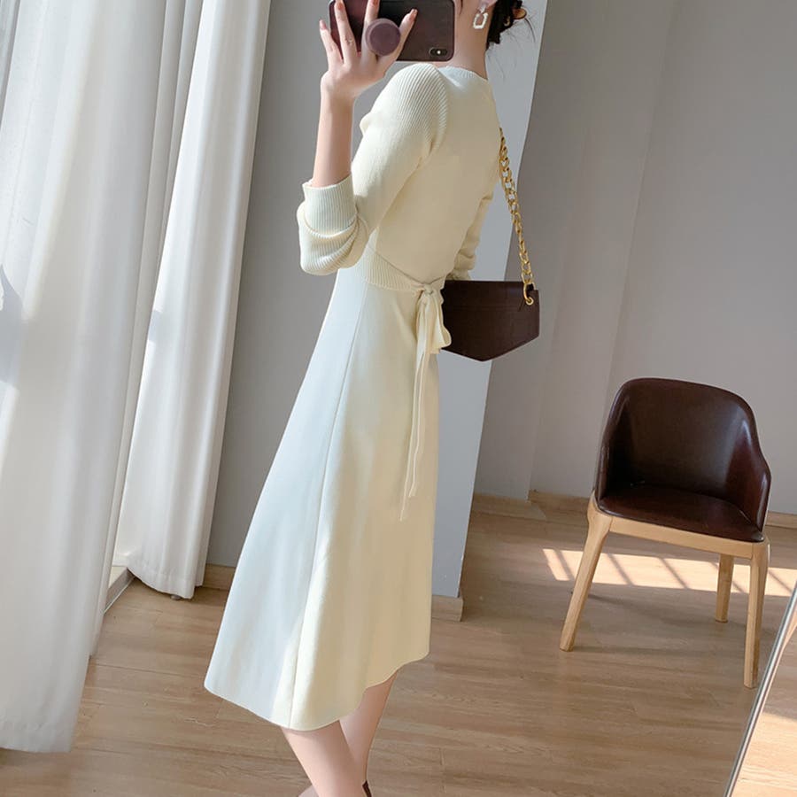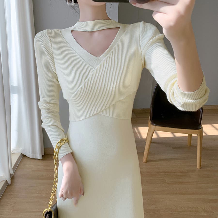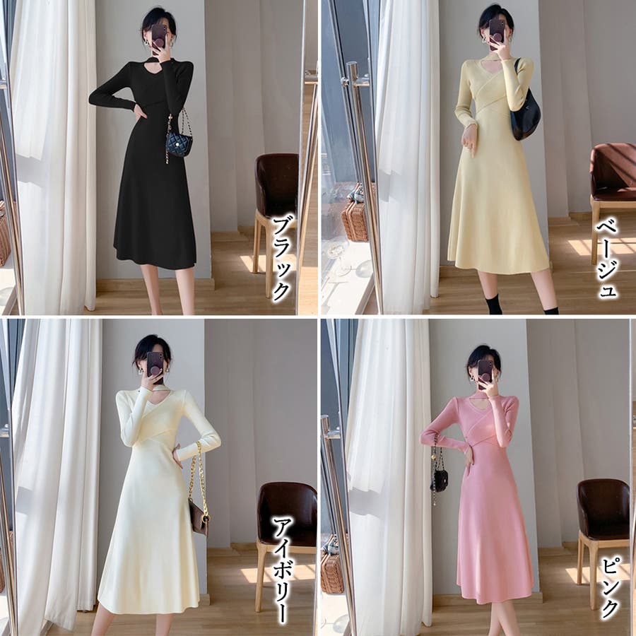 オフィスカジュアルからパーティーまで、多彩なシーンで活躍するニットワンピースです