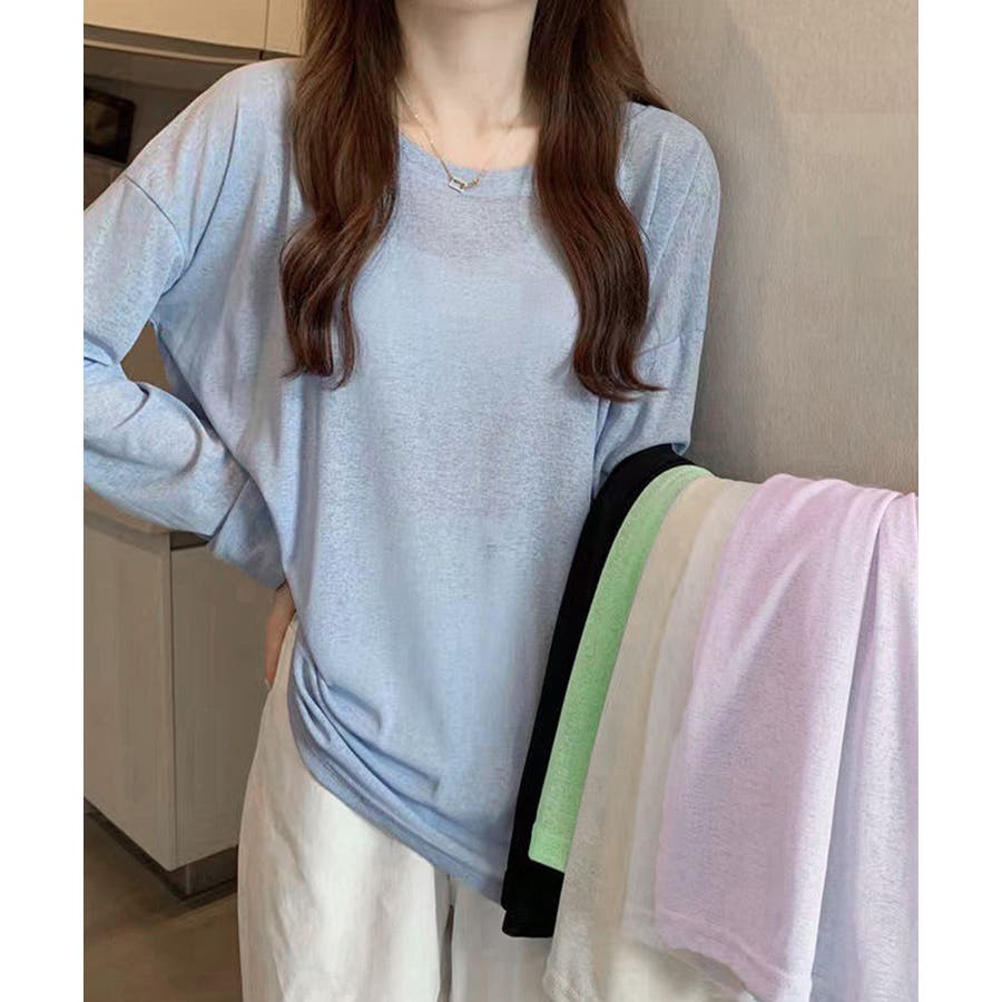 シアートップス重ね着クルーネックTシャツ