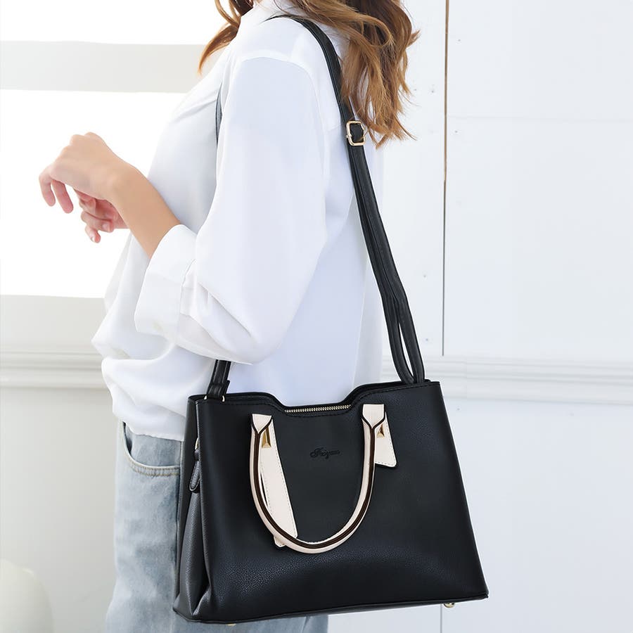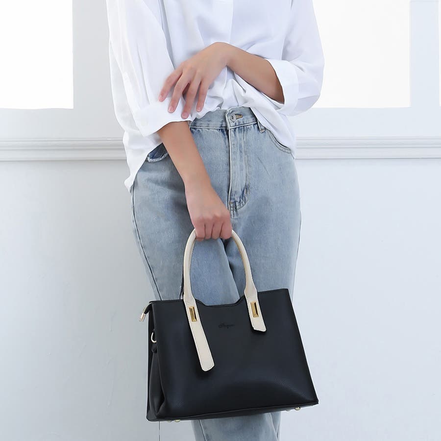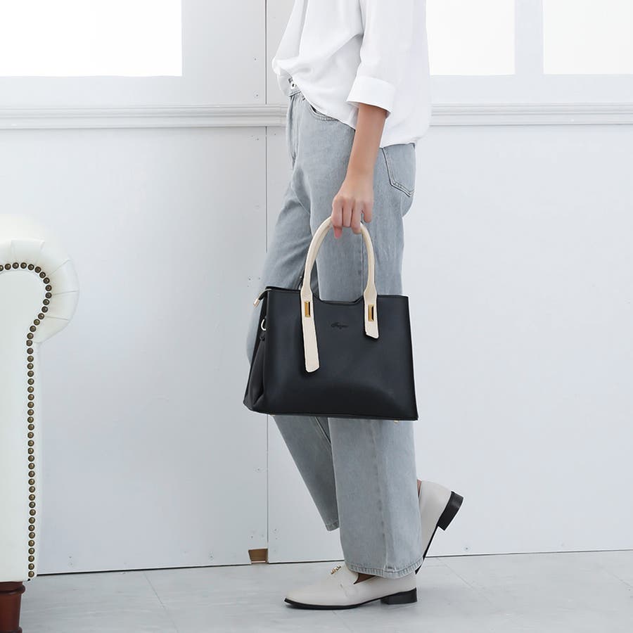 ハンドルの配色がモダンで大人女子3WAYトートバッグ