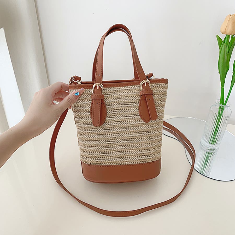 ストローショルダーバッグ かごバッグ 夏
