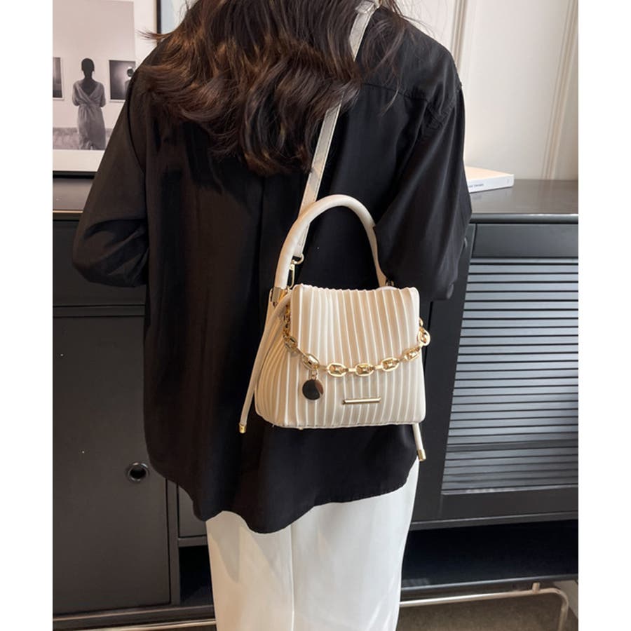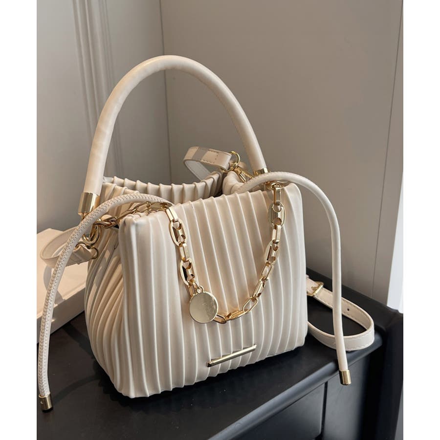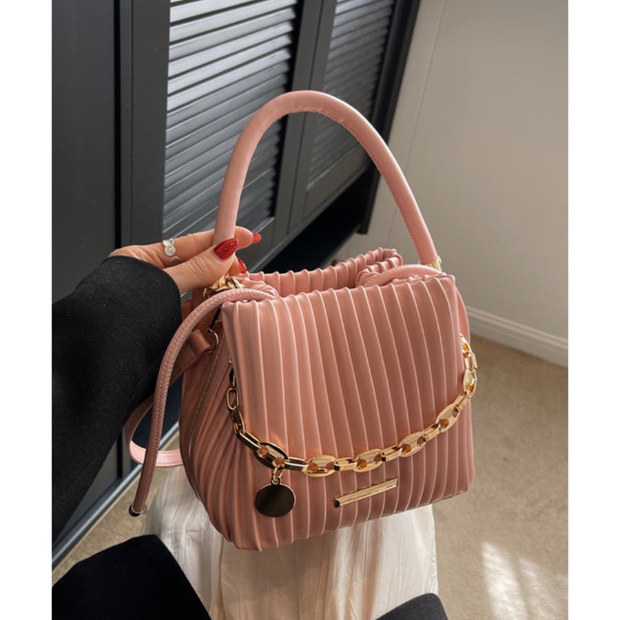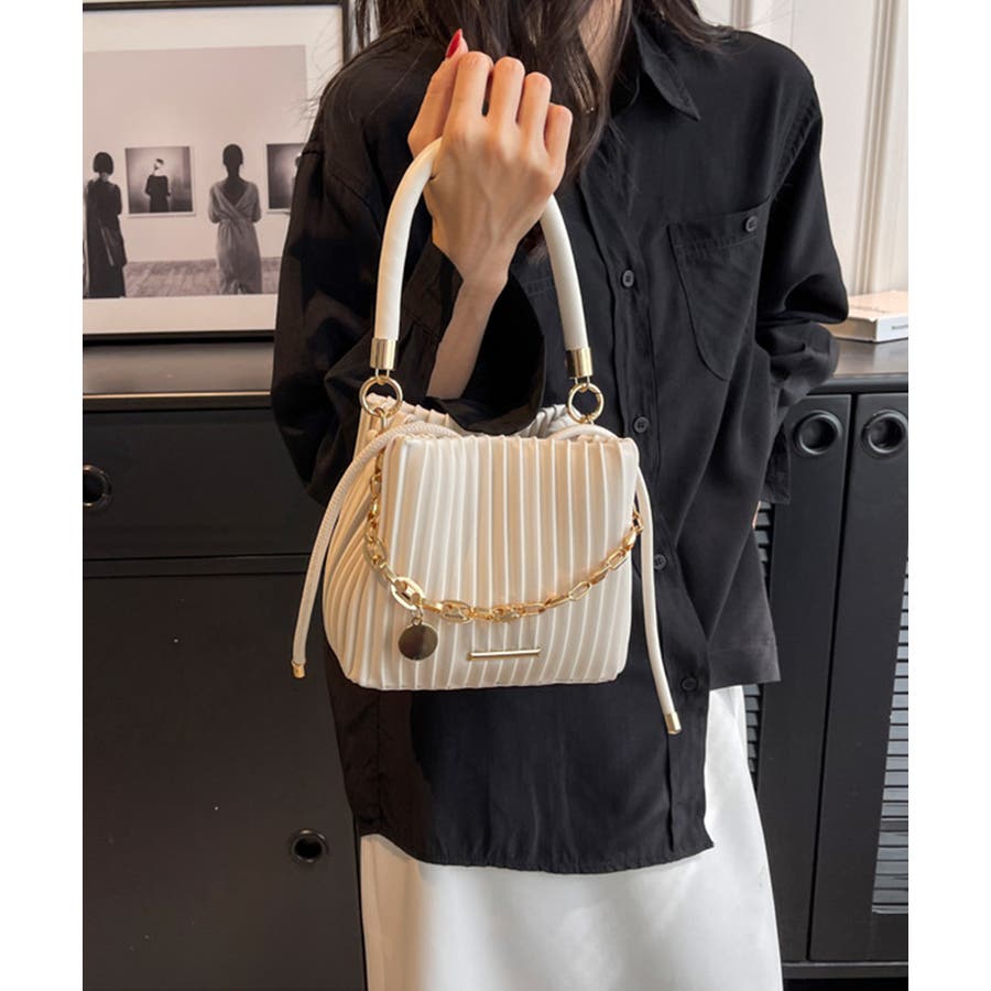 上品なプリーツデザインが目を惹く綺麗めルックスの2WAY巾着バッグ