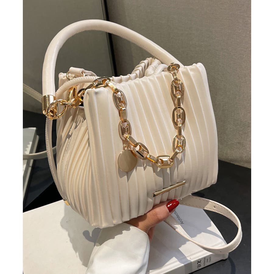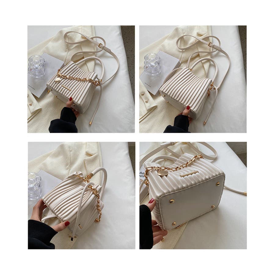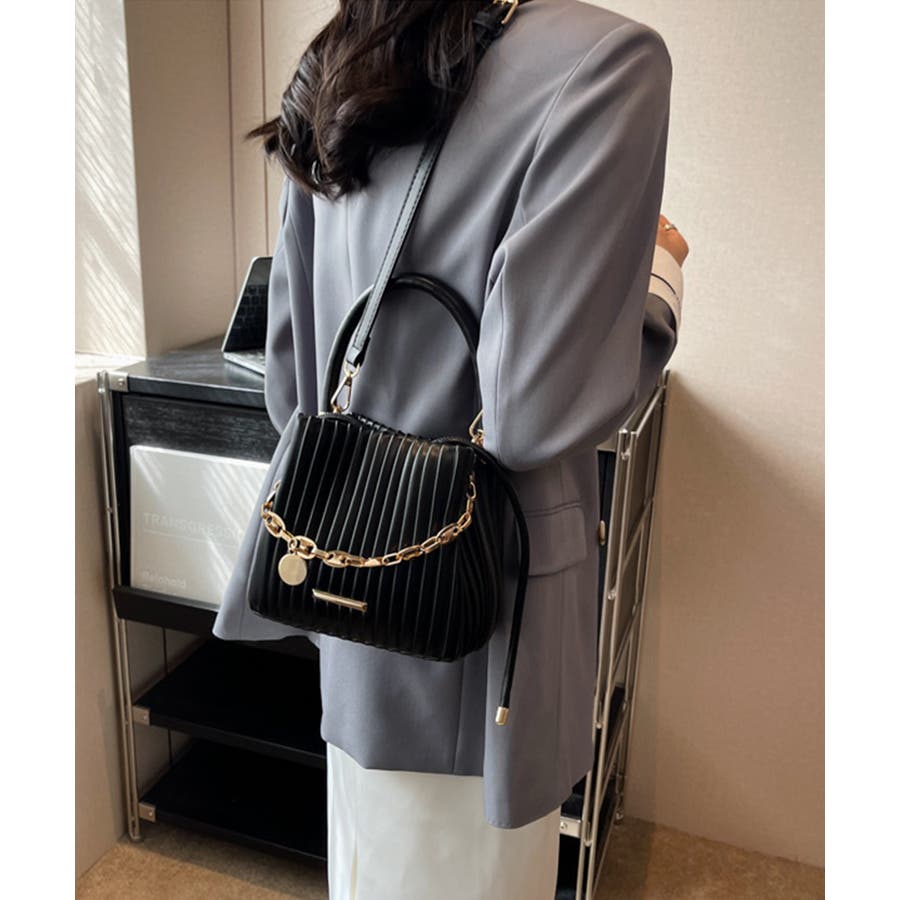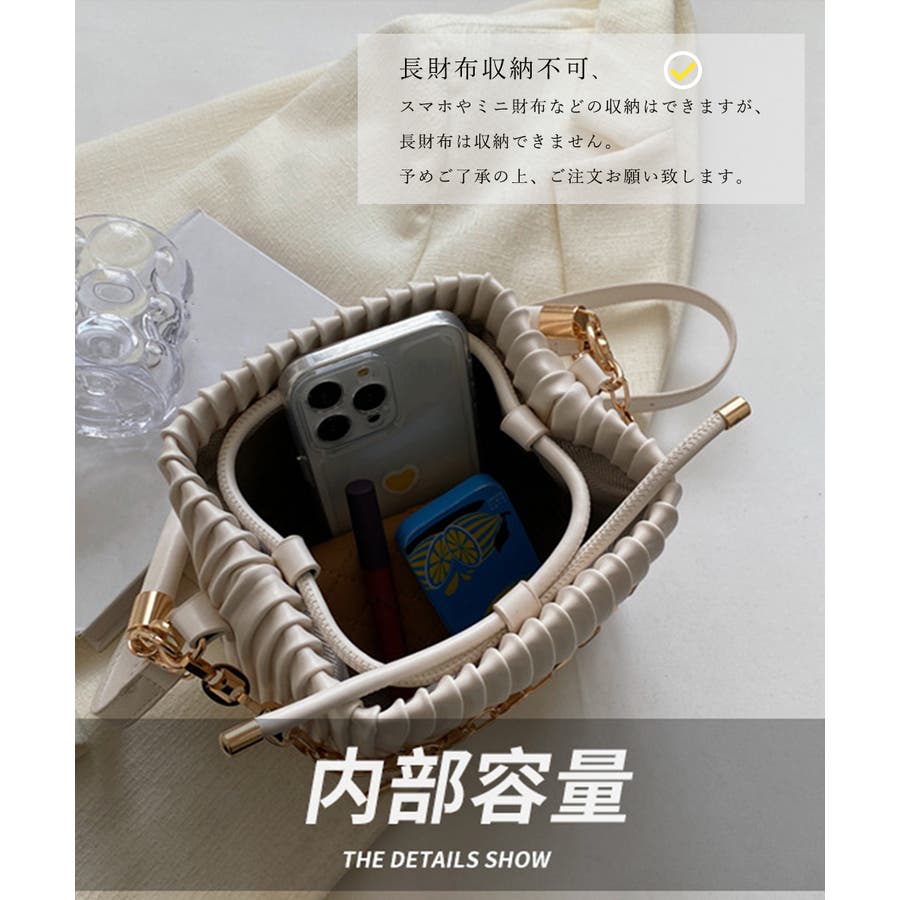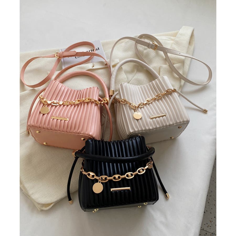 上品なプリーツデザインが目を惹く綺麗めルックスの2WAY巾着バッグ