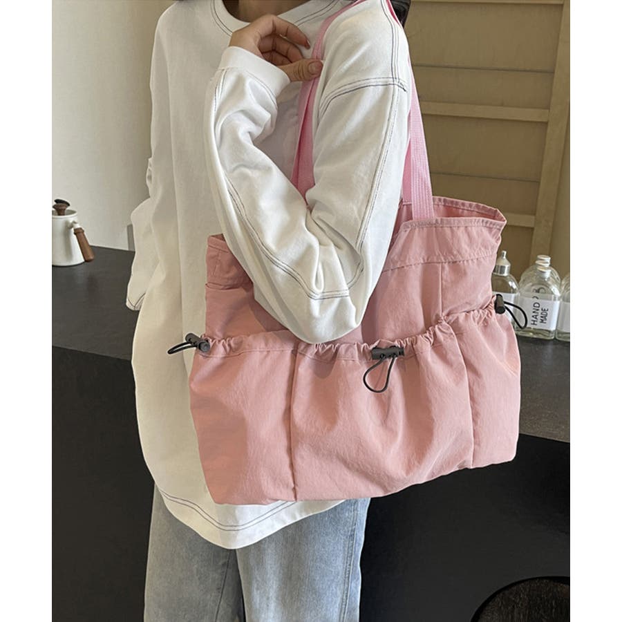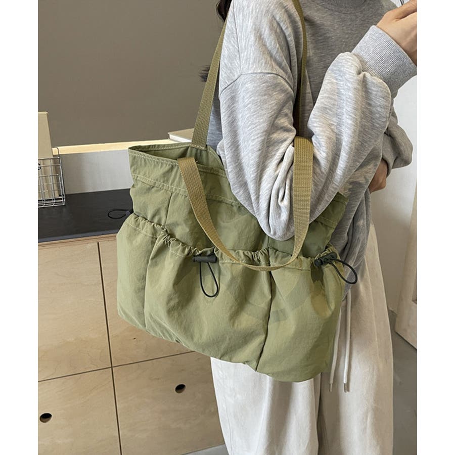 トレンドのドロストポケットがポイントのカジュアルなトートバッグ