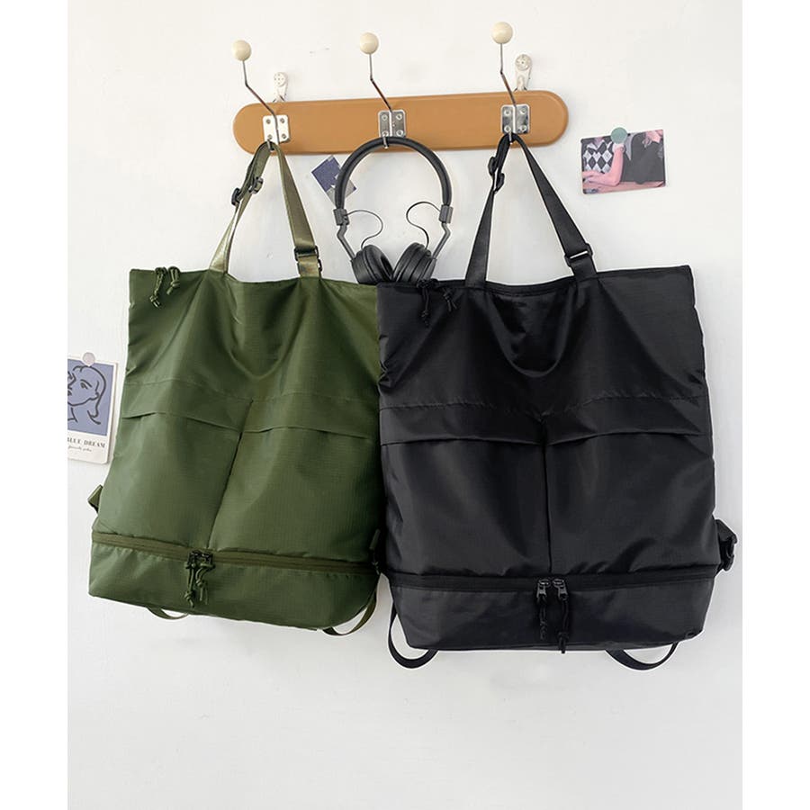 シーンに合わせて、リュック、肩掛け、トートバッグとして使える3WAYナイロンバッグ。