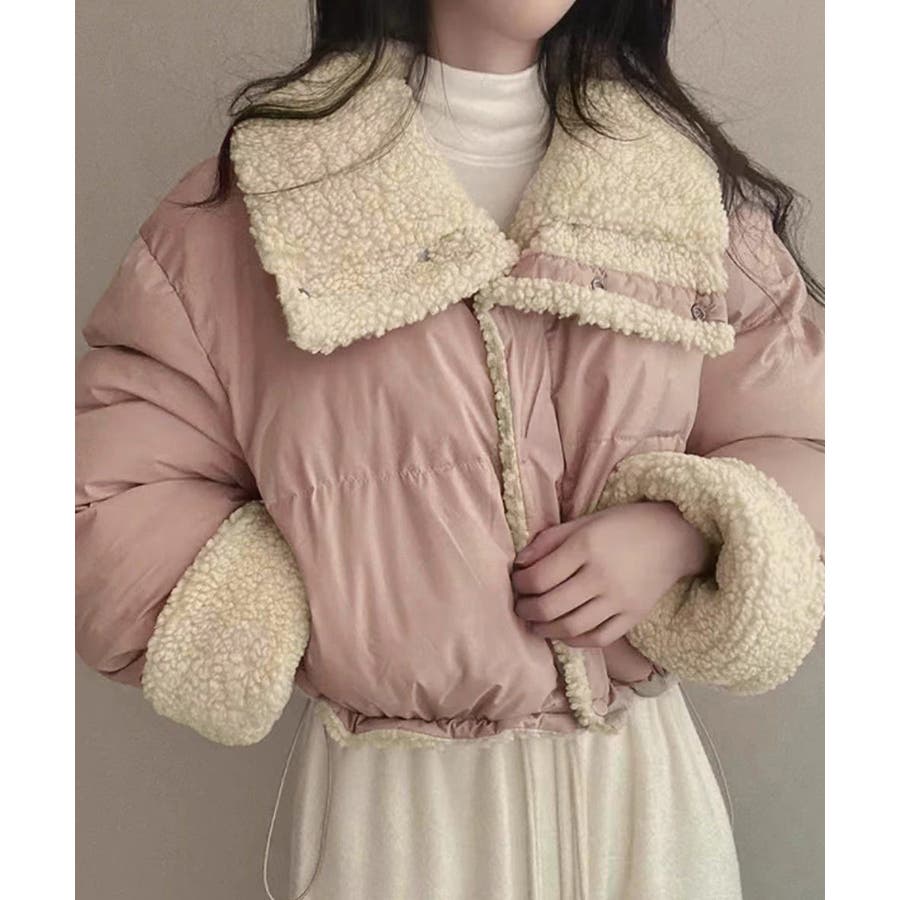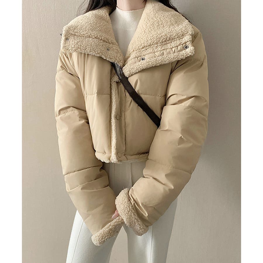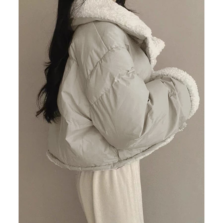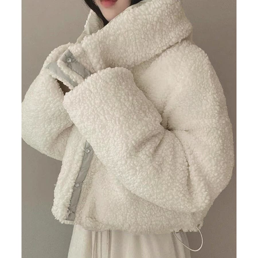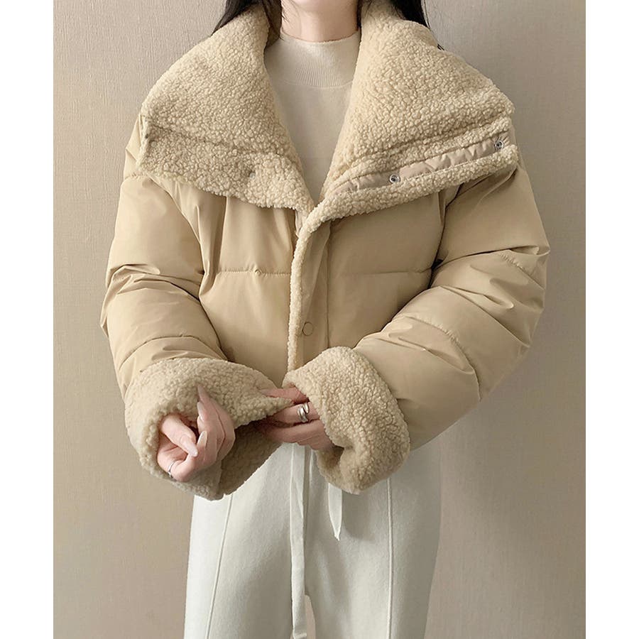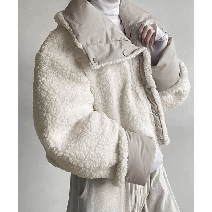 シンプルで洗練されたデザインと、ふわふわのボア素材が魅力のリバーシブルジャケット。