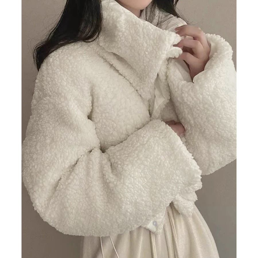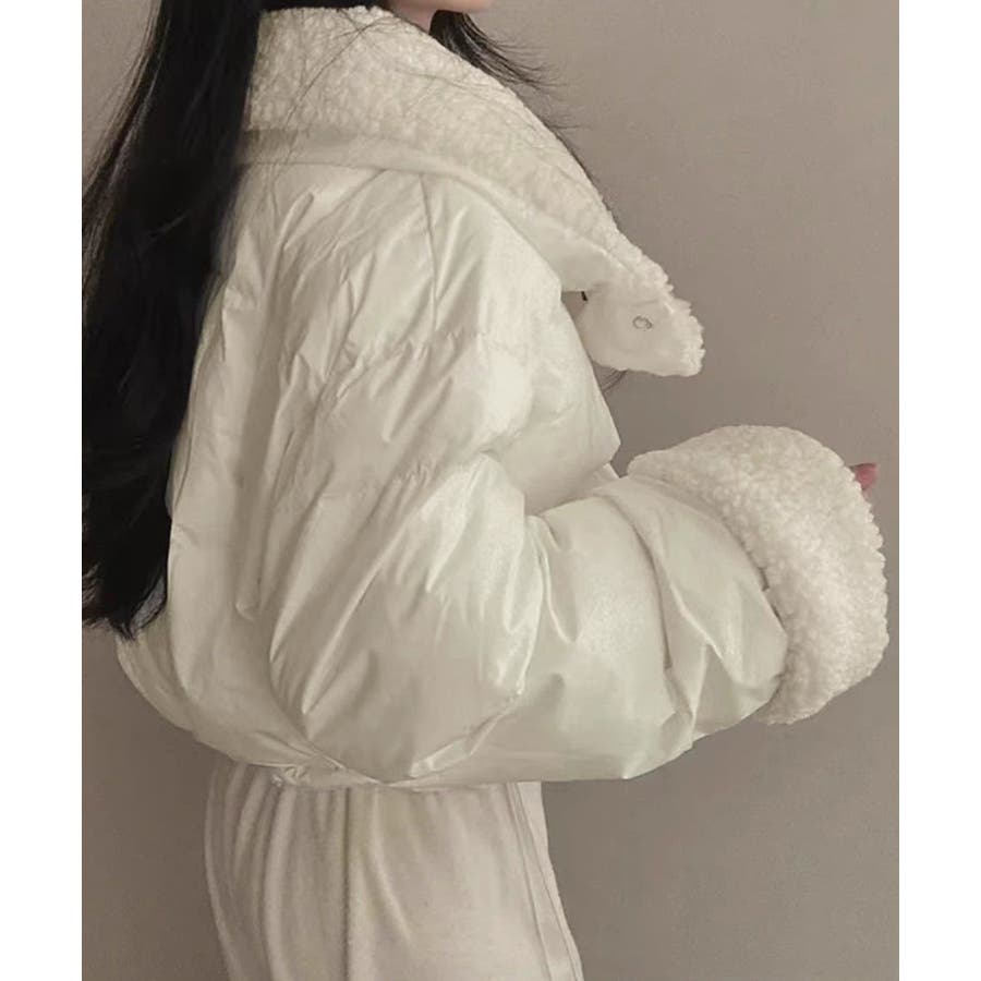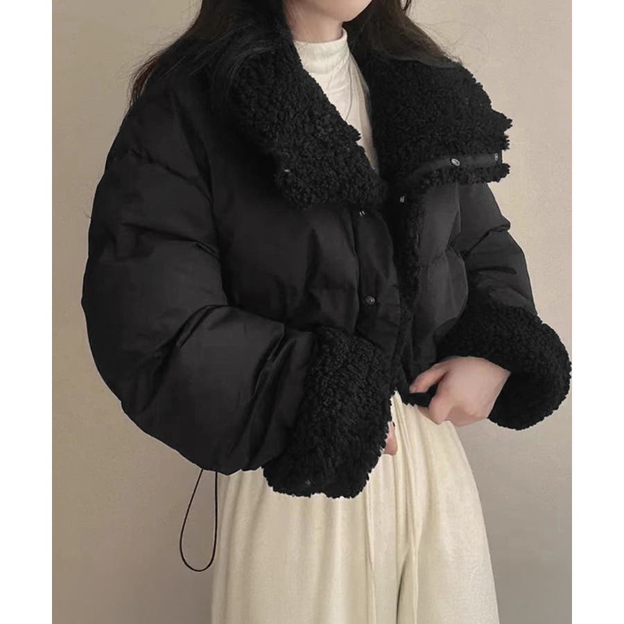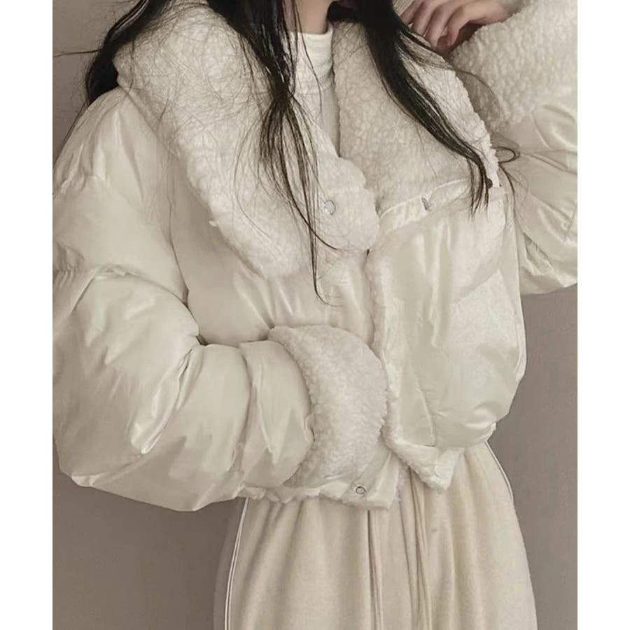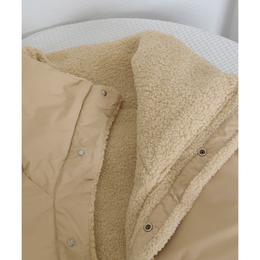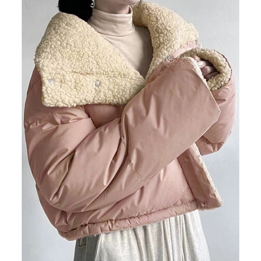 シンプルで洗練されたデザインと、ふわふわのボア素材が魅力のリバーシブルジャケット。