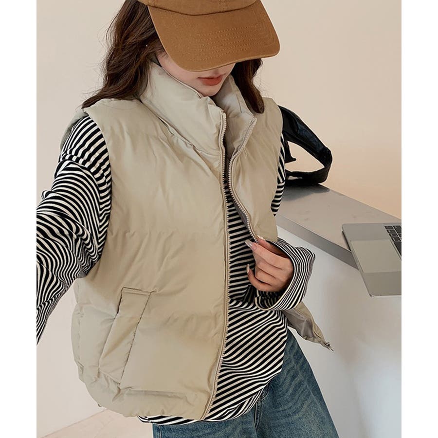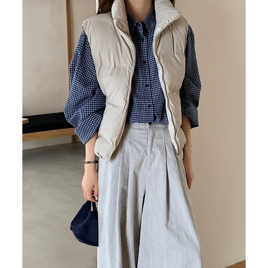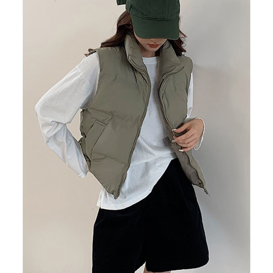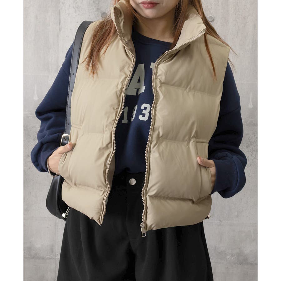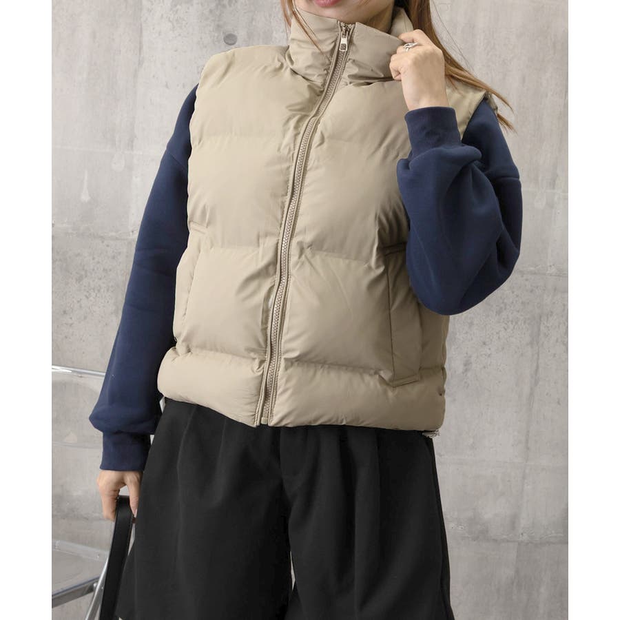 大人っぽくて上品なコーデが決まる、軽くて暖かいダウン風中綿ベスト。