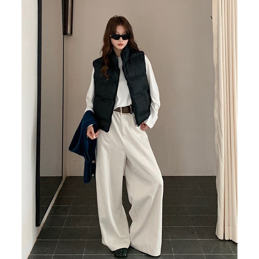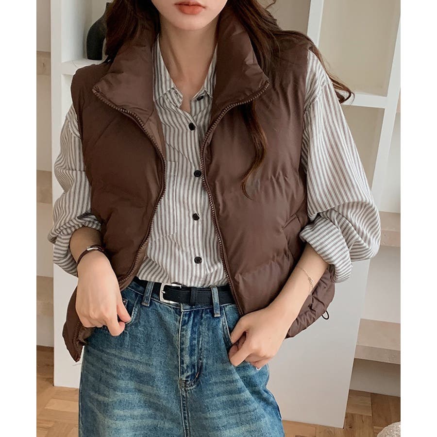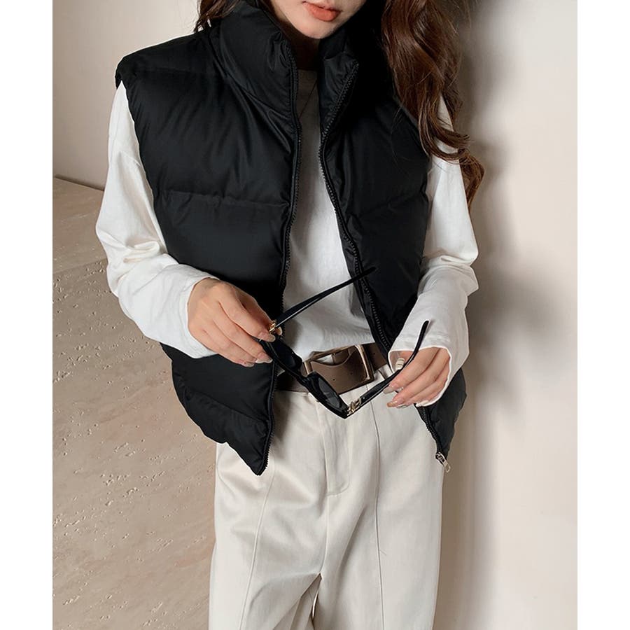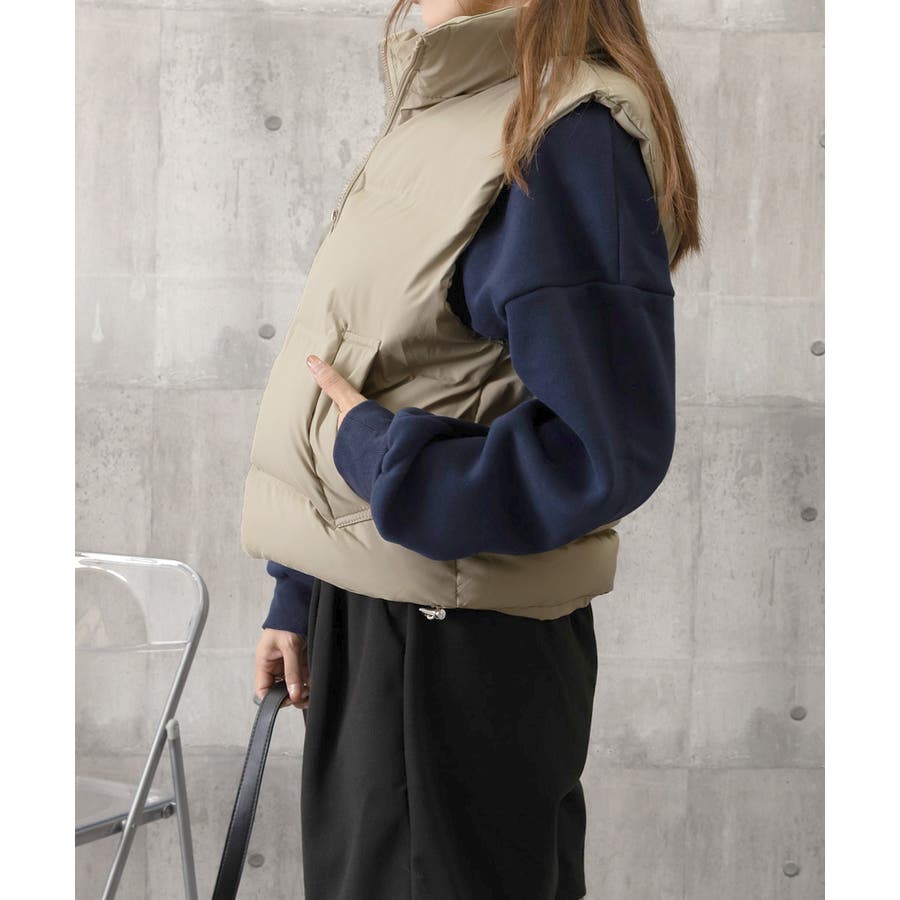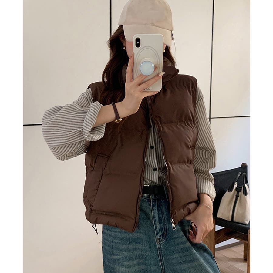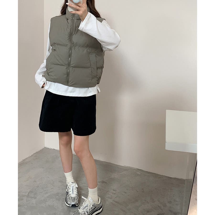 大人っぽくて上品なコーデが決まる、軽くて暖かいダウン風中綿ベスト。