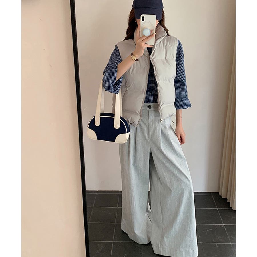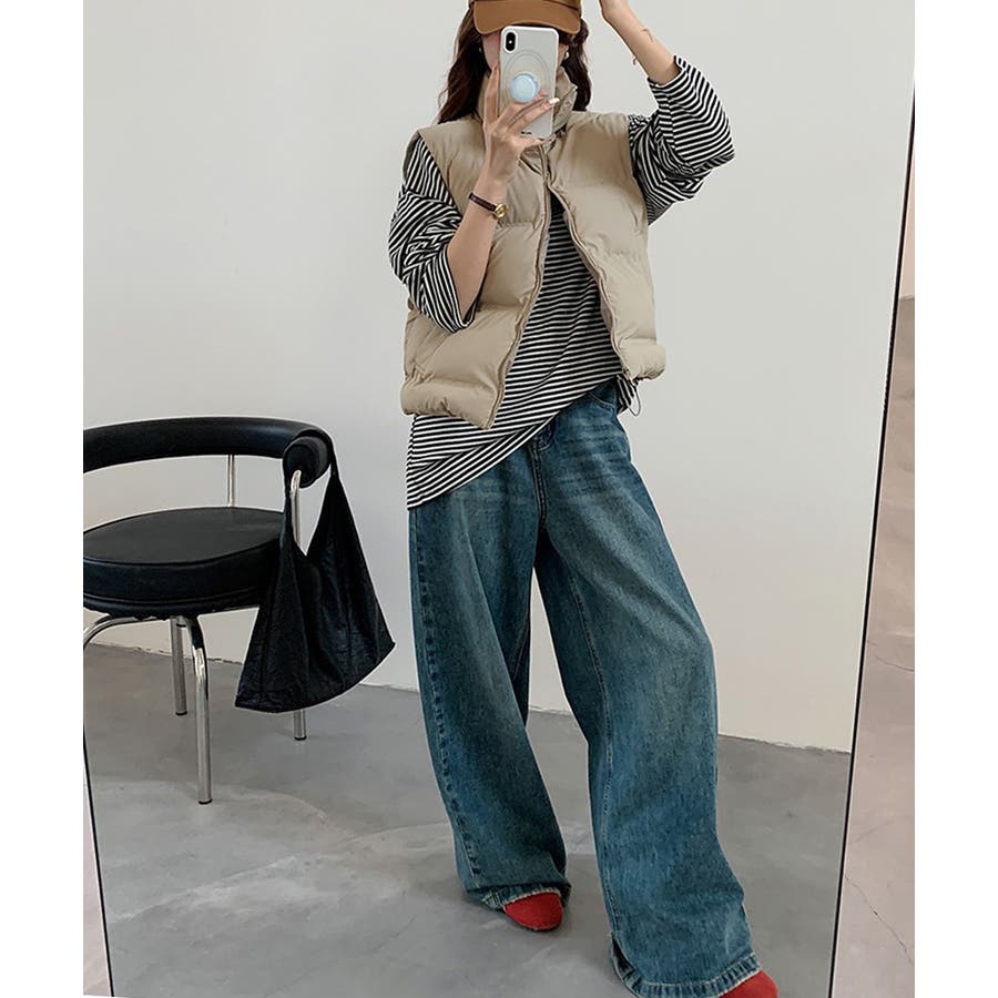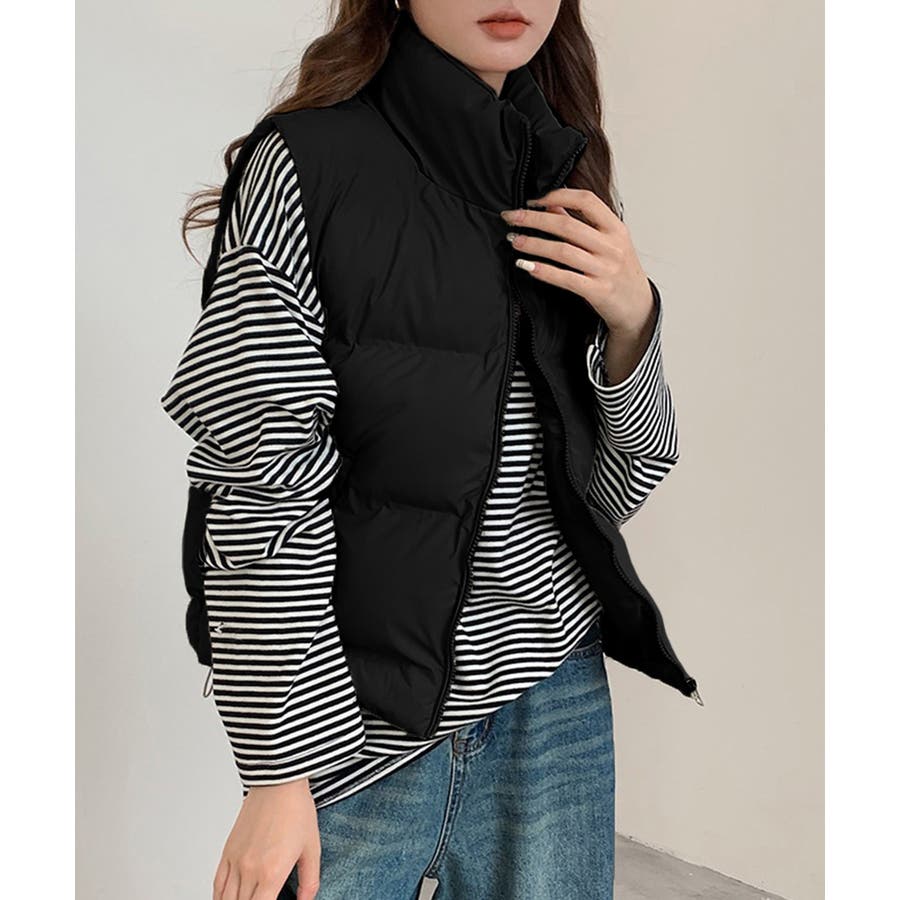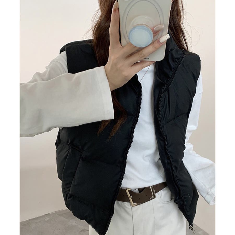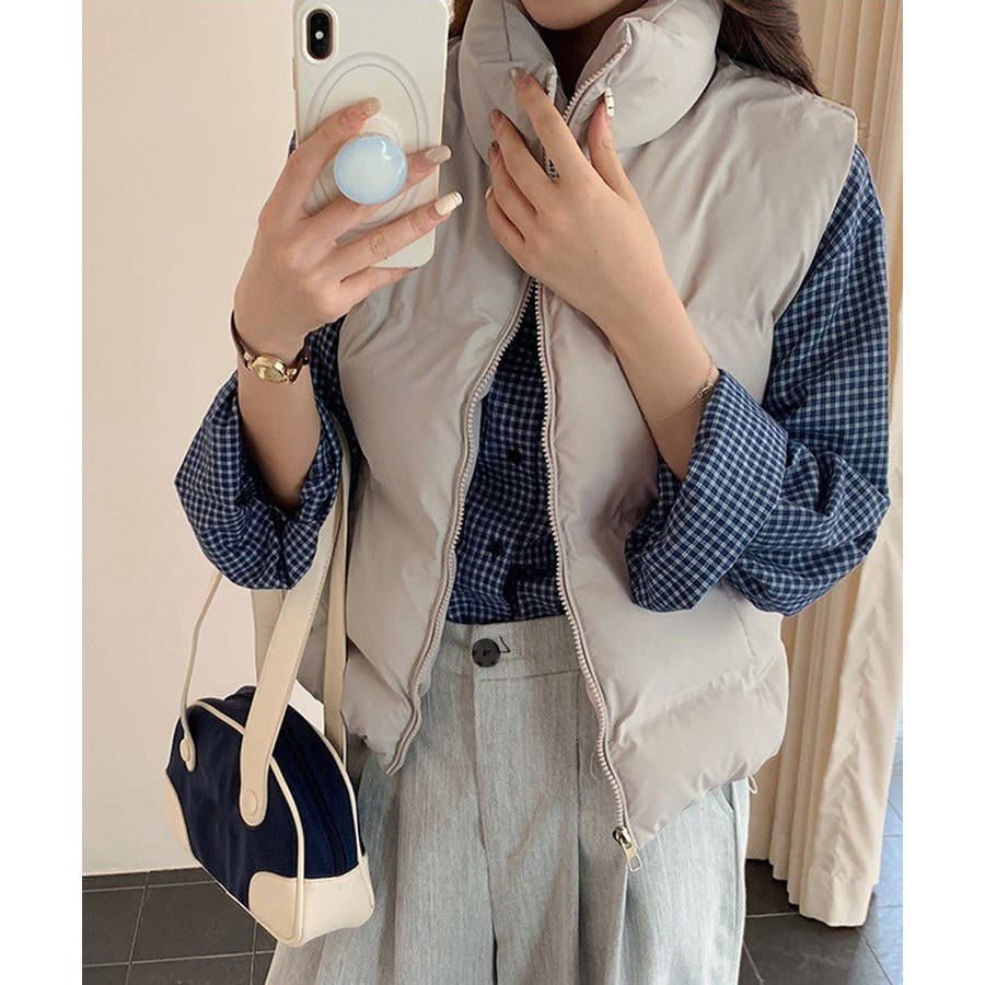 大人っぽくて上品なコーデが決まる、軽くて暖かいダウン風中綿ベスト。