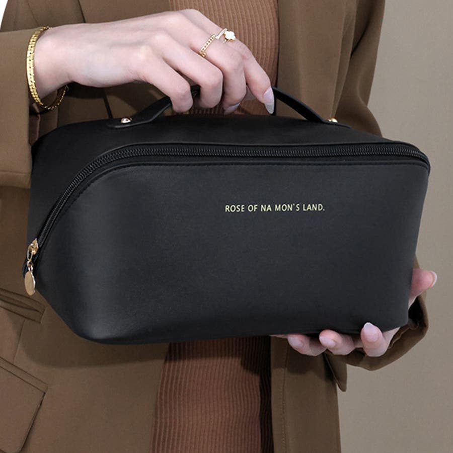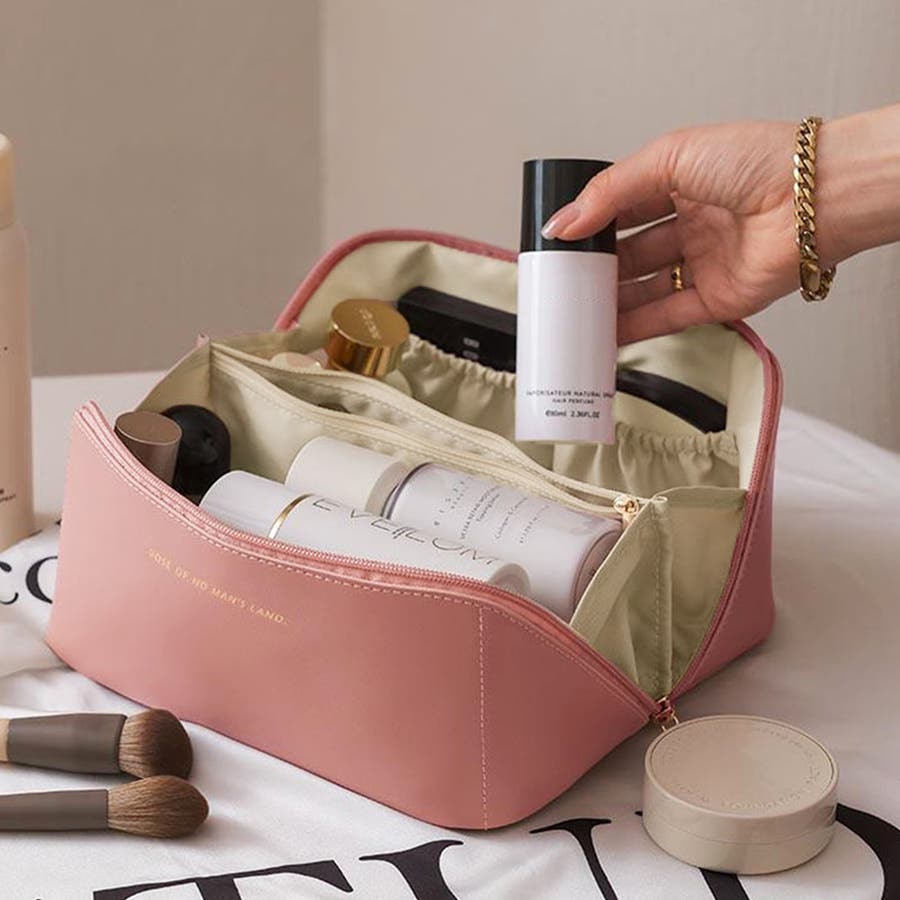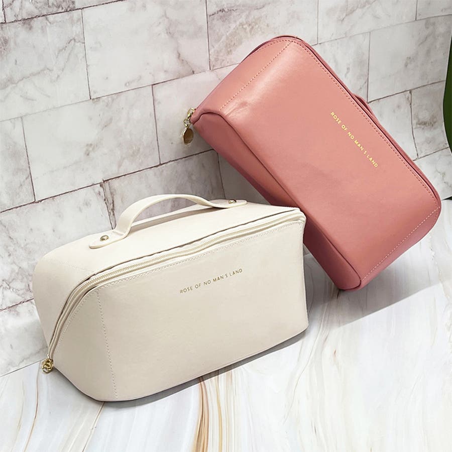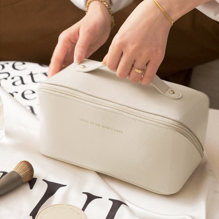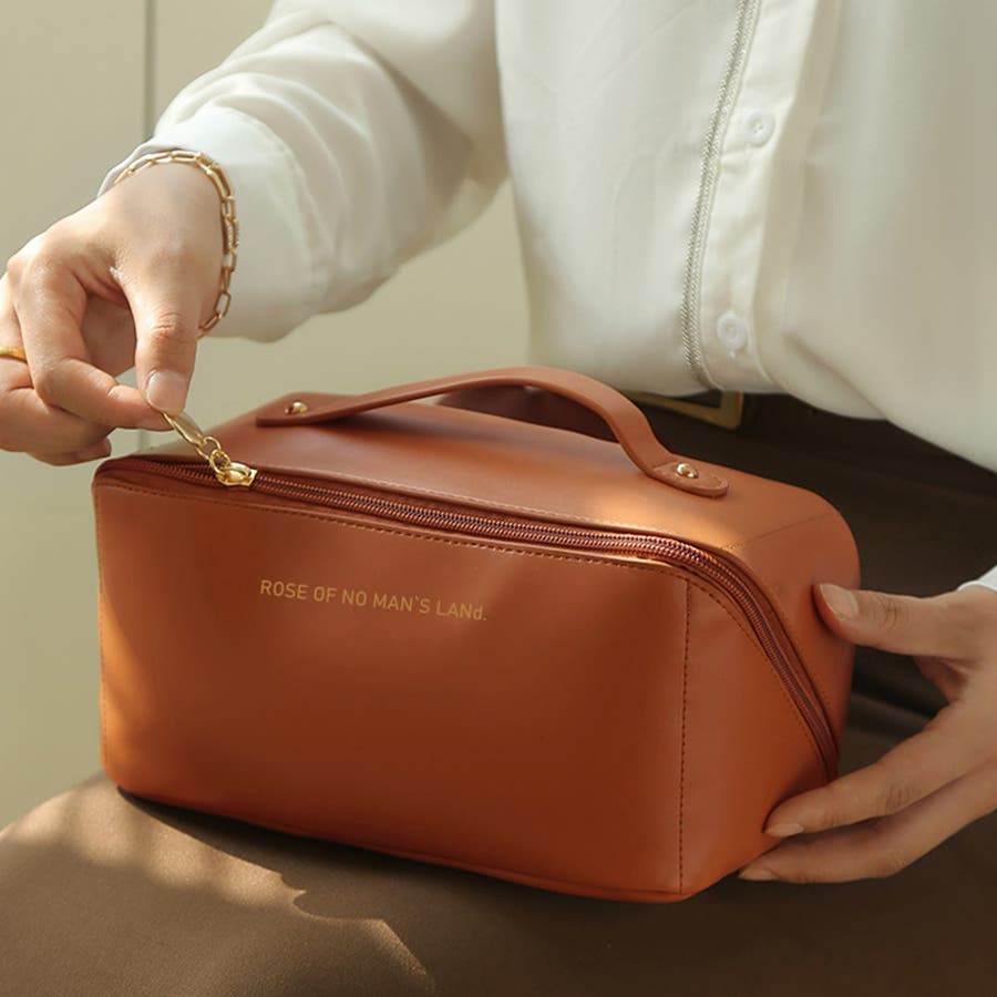 洗面道具・スキンケア用品・化粧品やメイク道具などを見やすく整理できるPUレザーメイクボックス