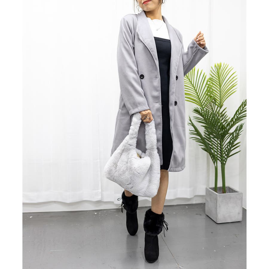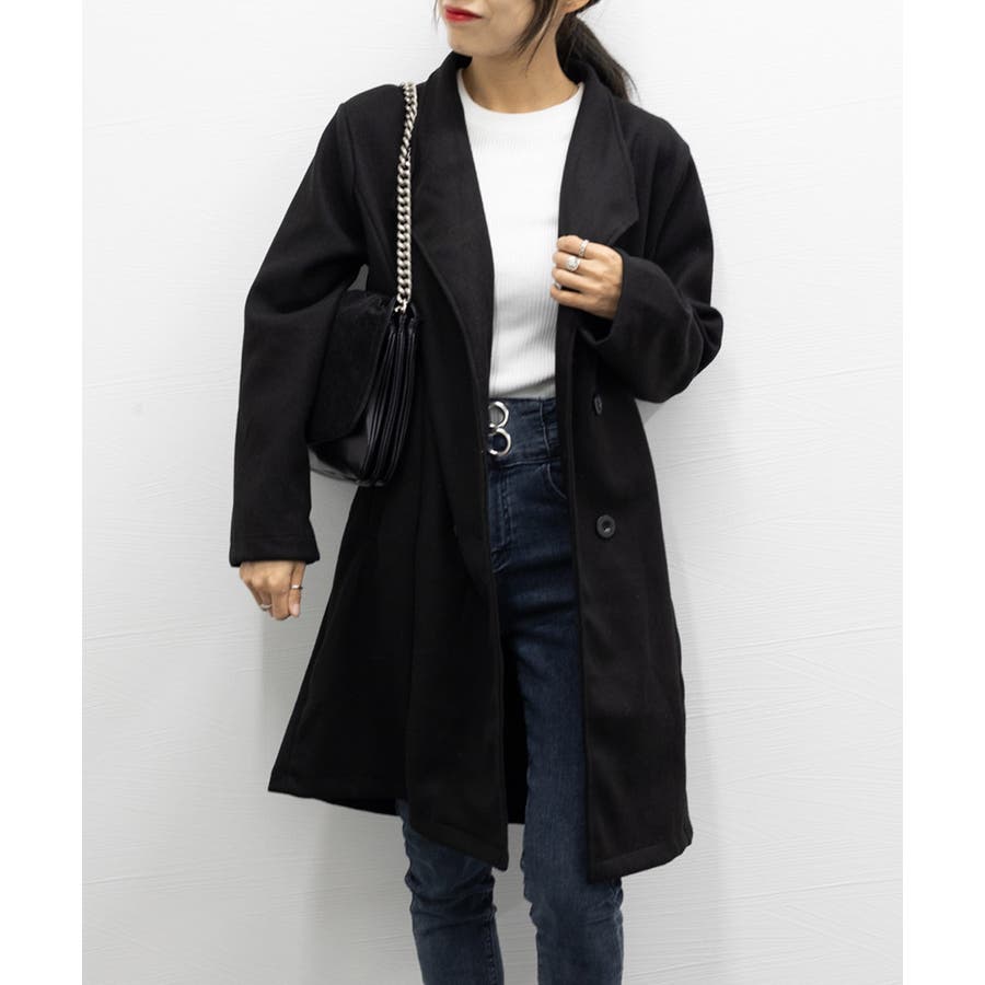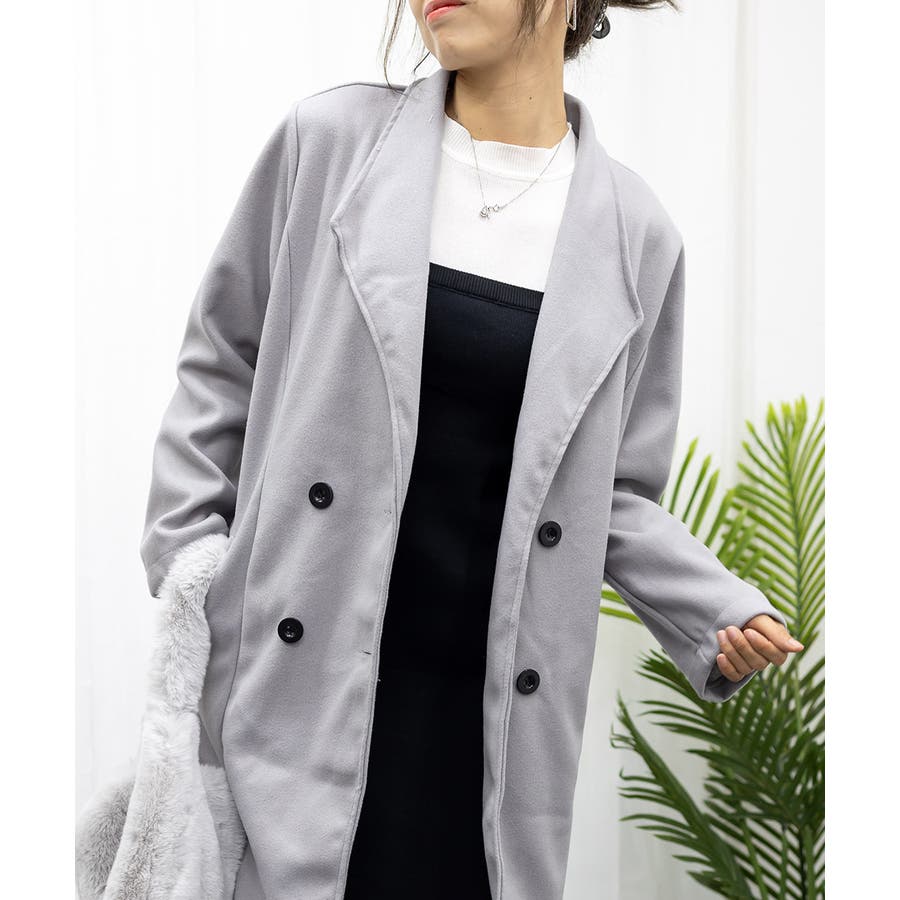 テーラード風折り襟がきちんと感抜群、ダブルブレストボタン仕様がクラシカルなレディースコート