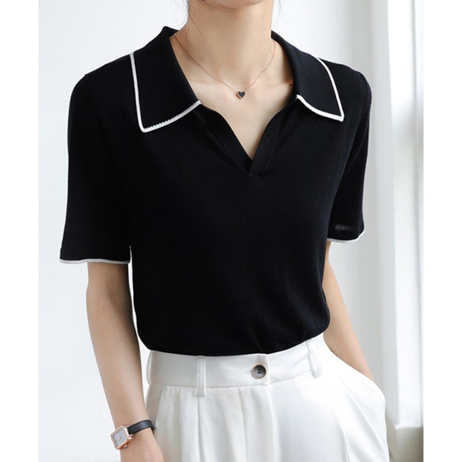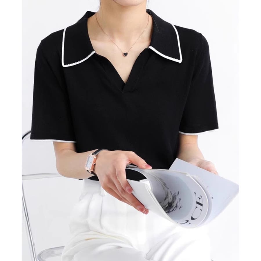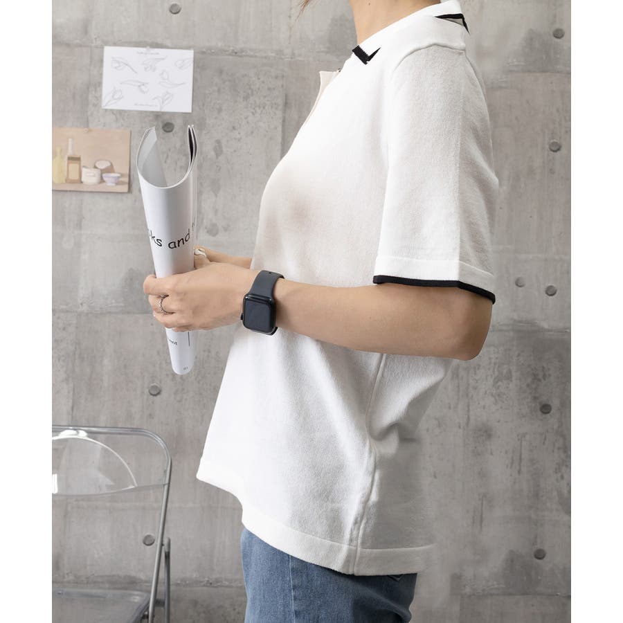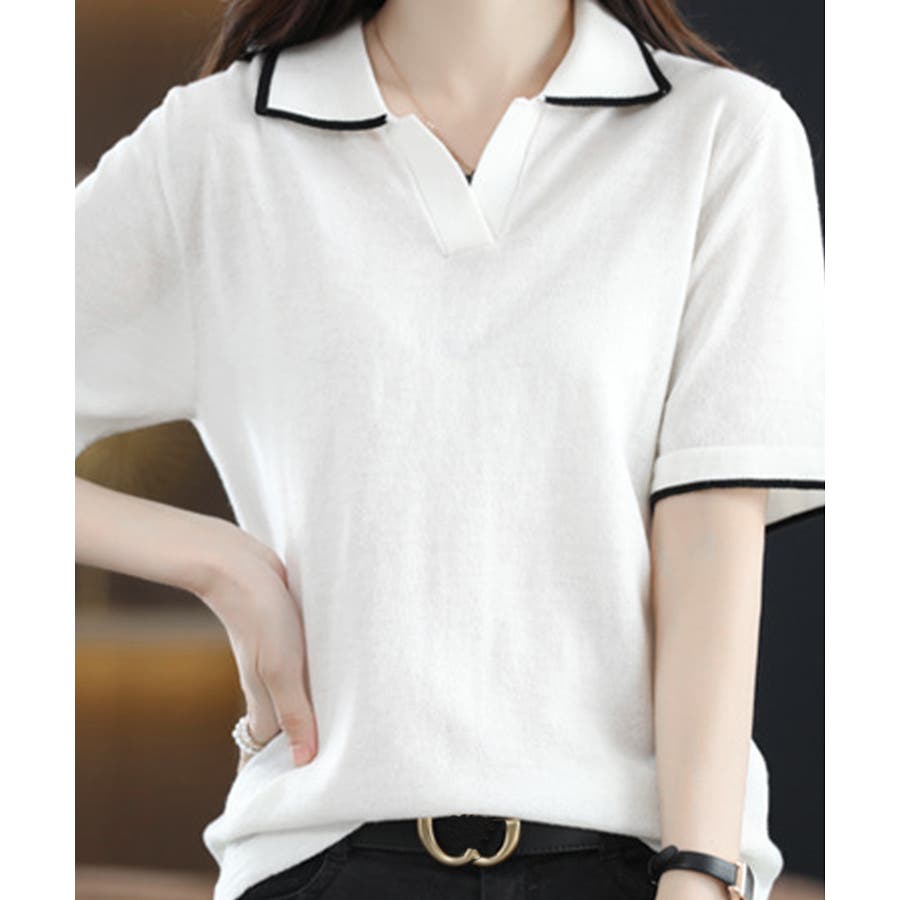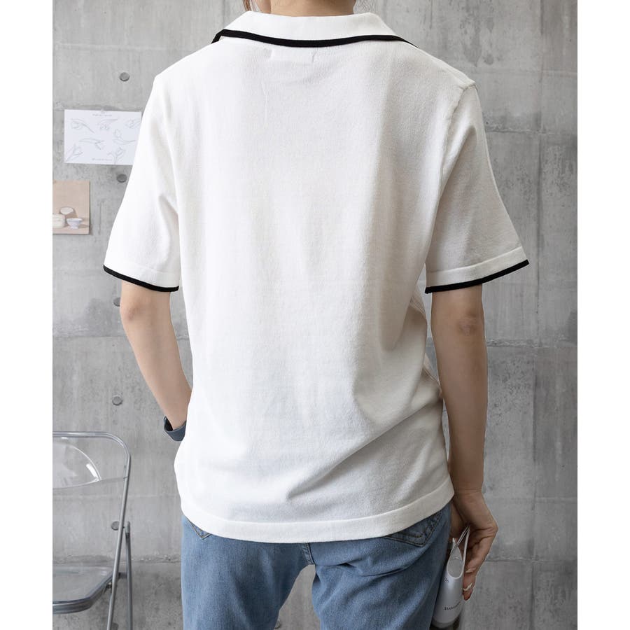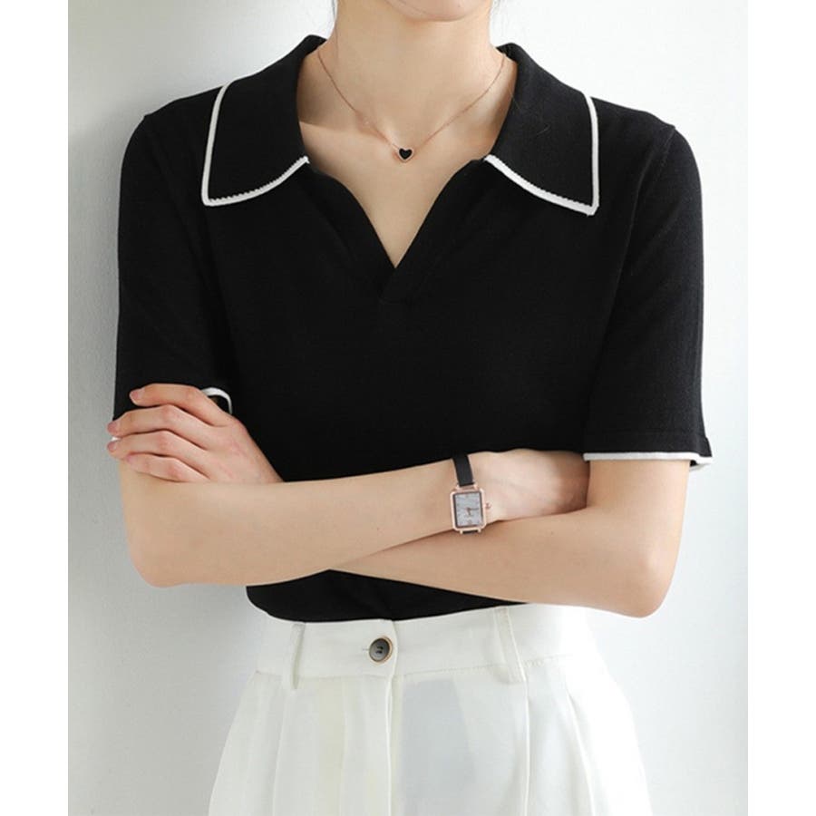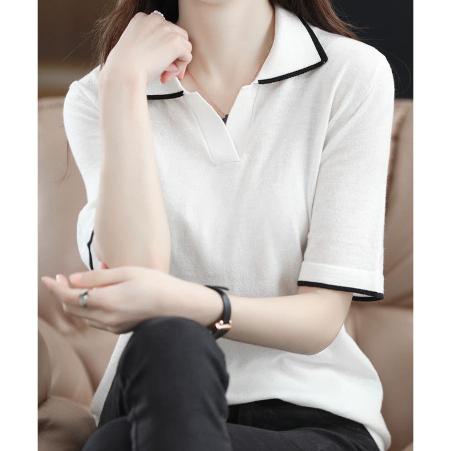 ポロデザインが上品な印象を与える半袖ニットトップス