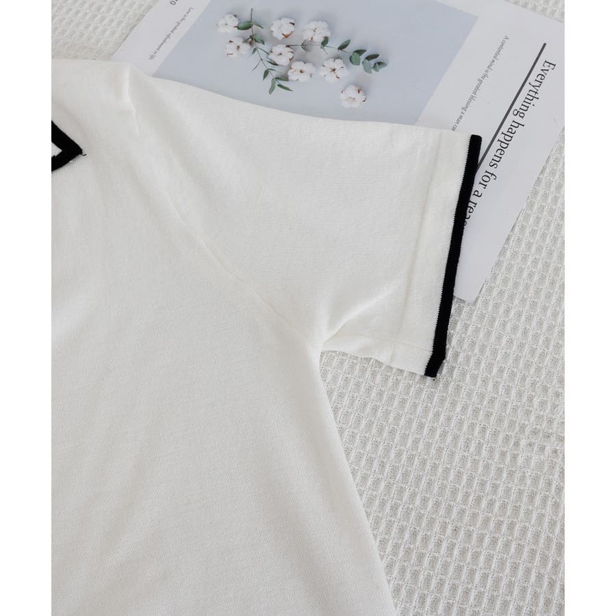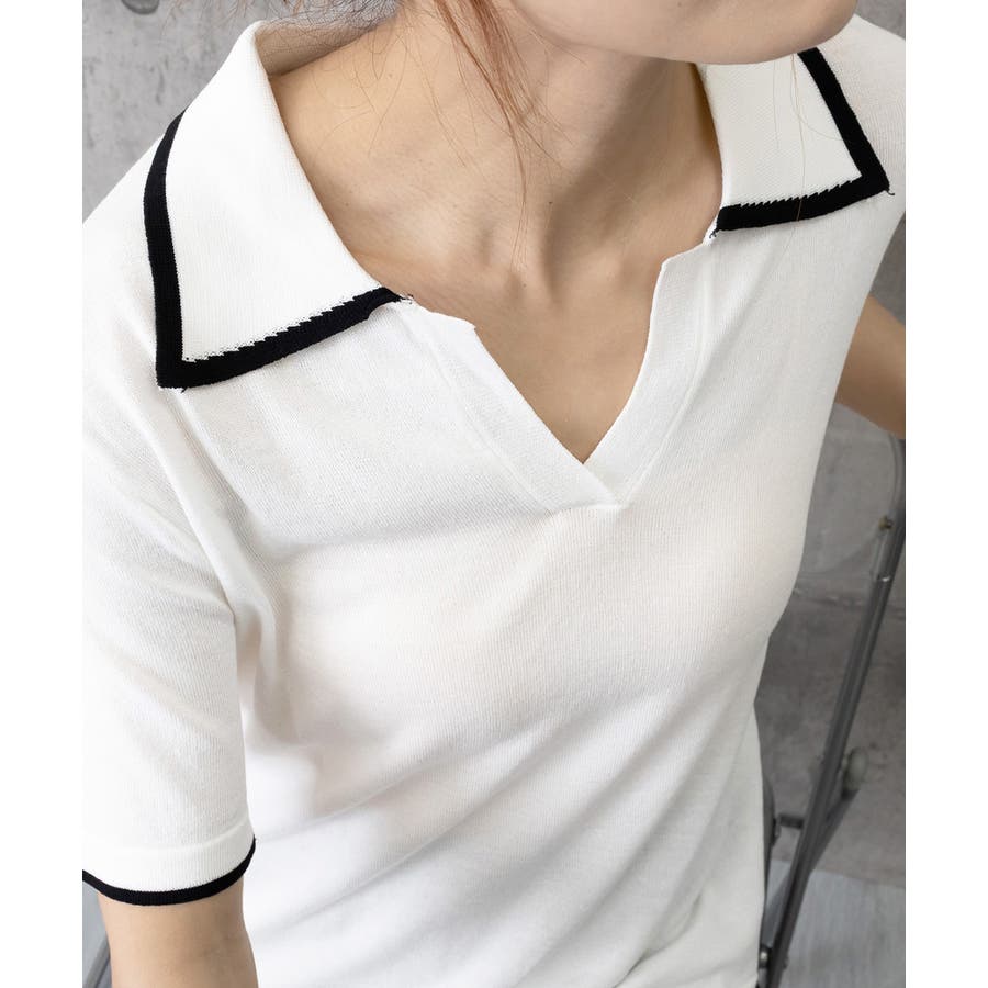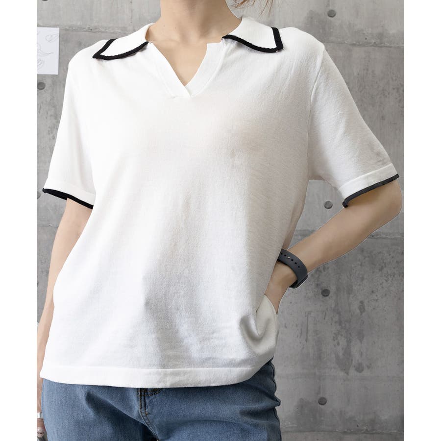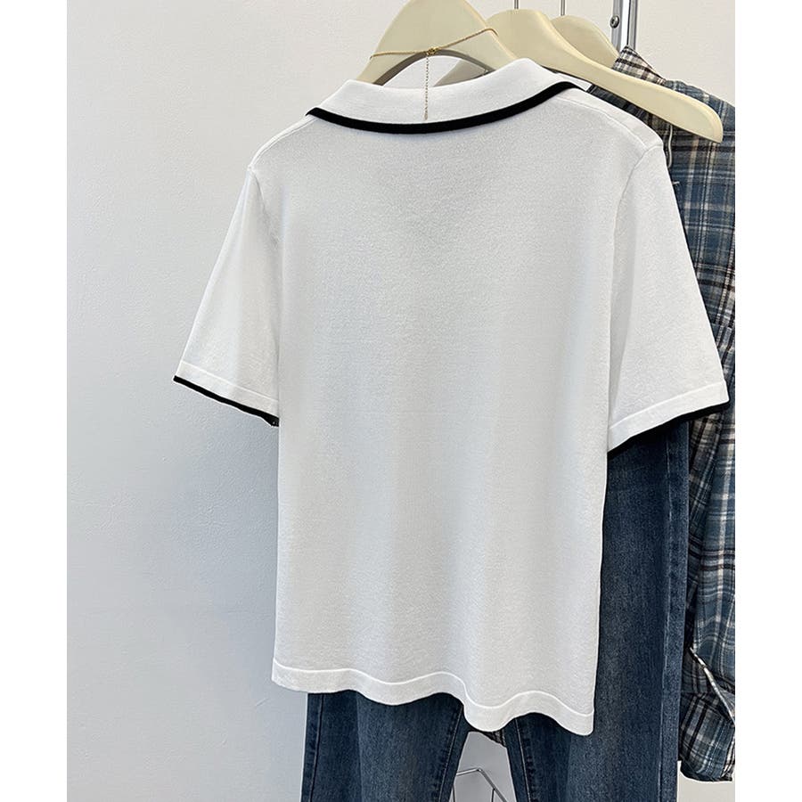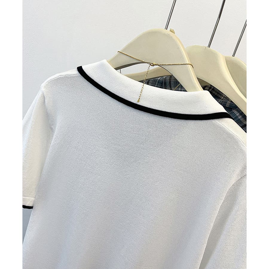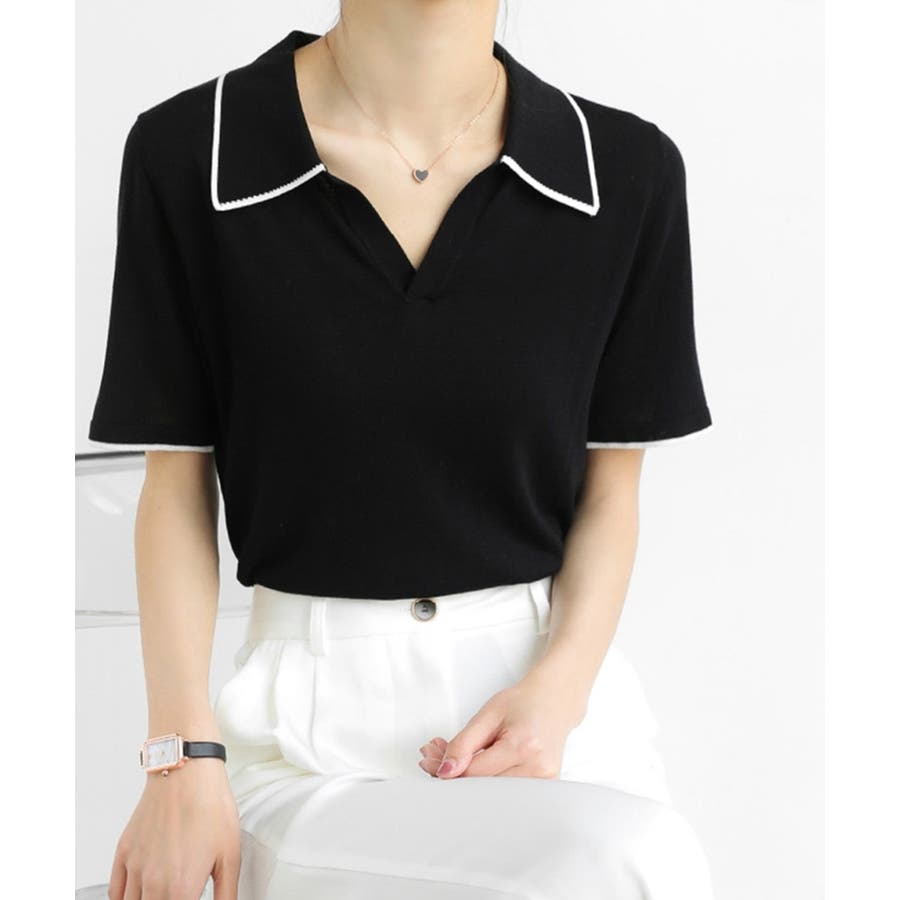 ポロデザインが上品な印象を与える半袖ニットトップス