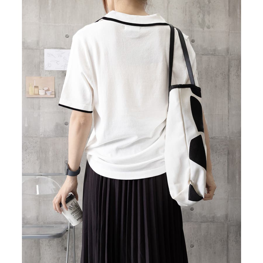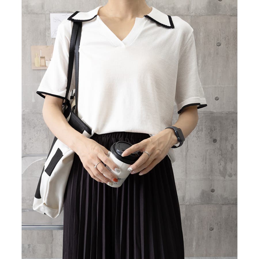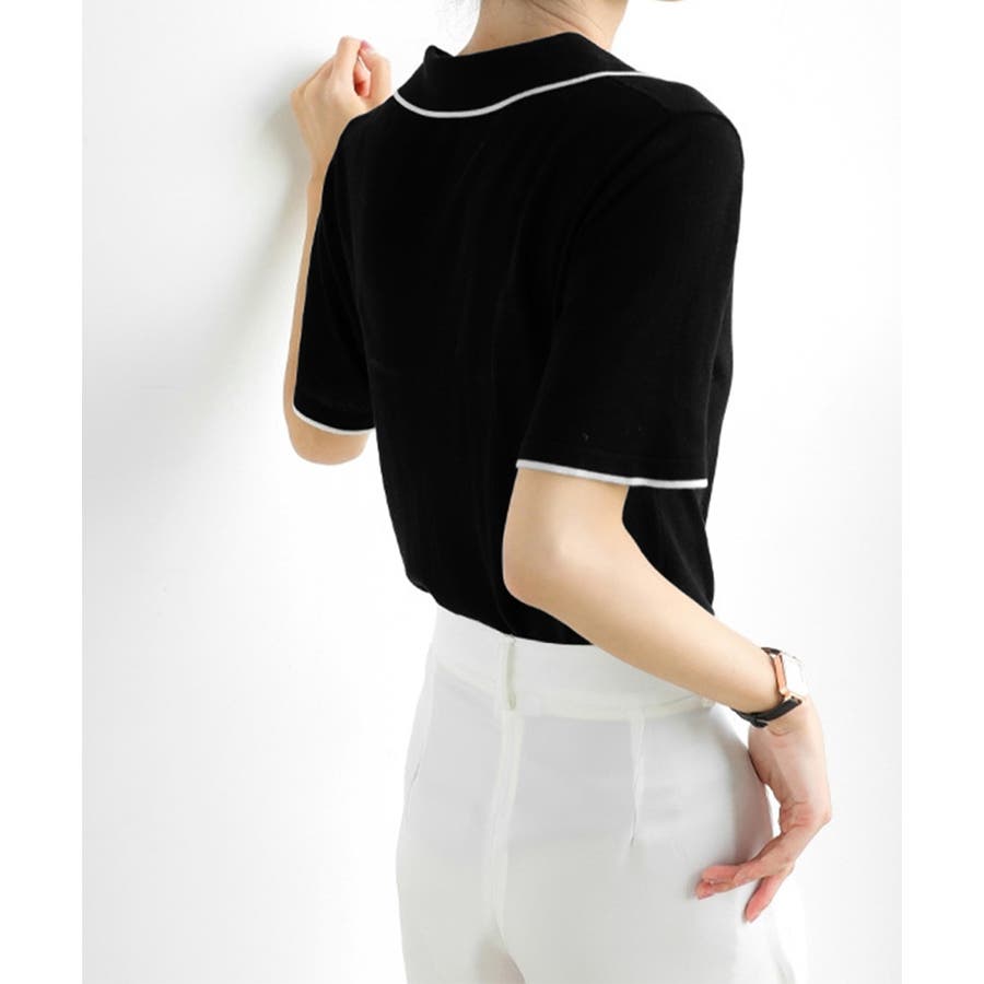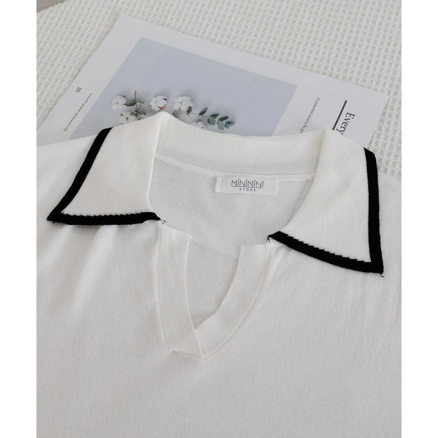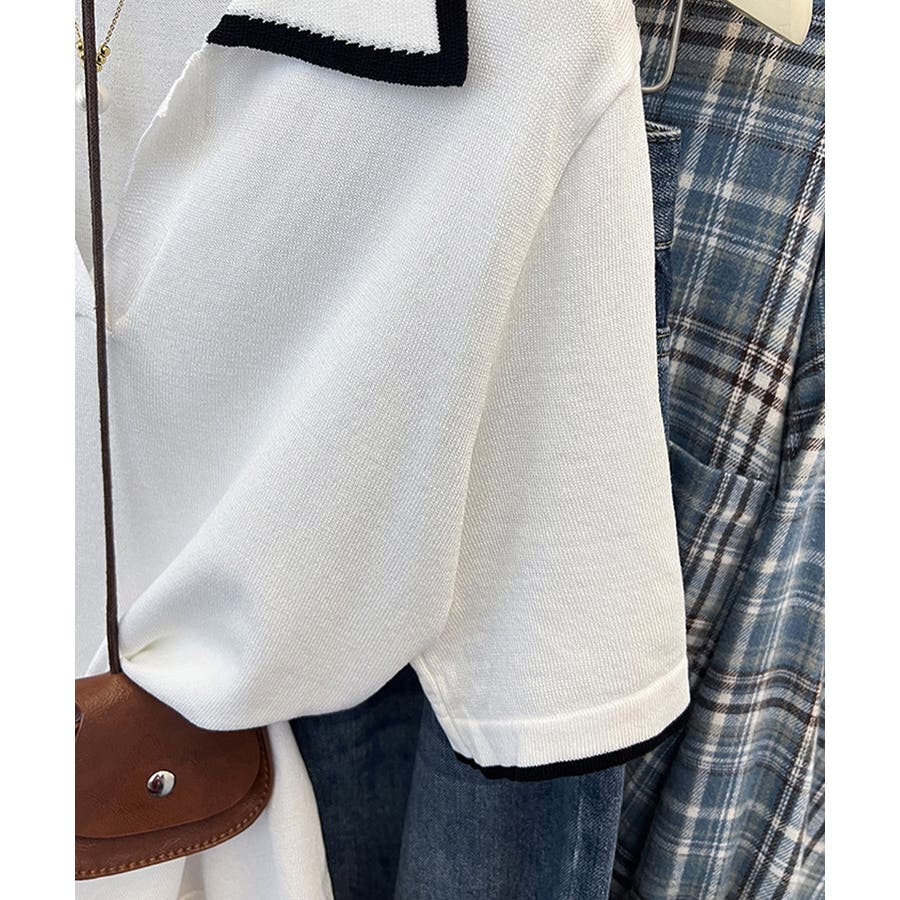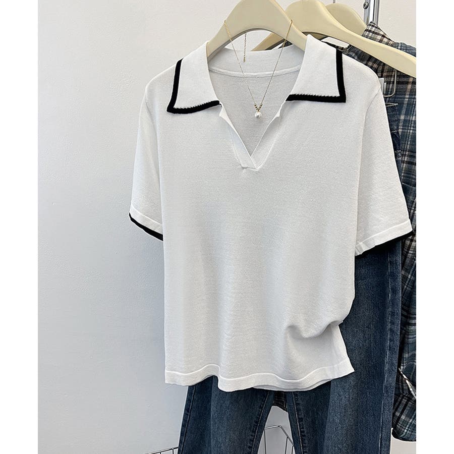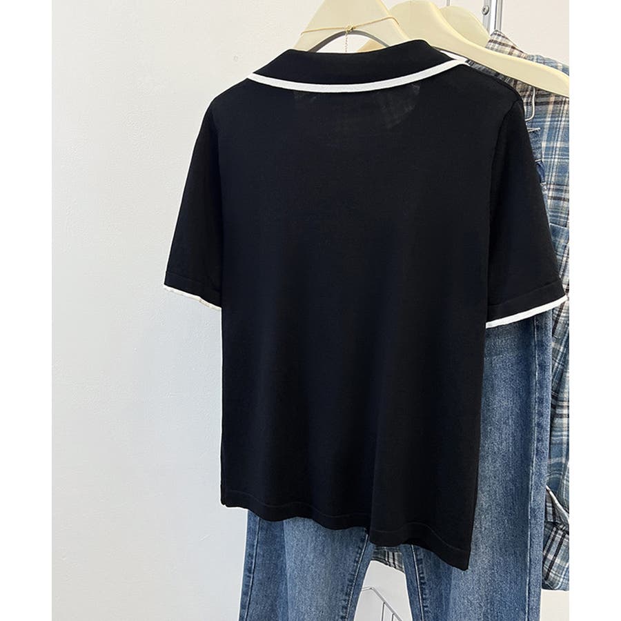 ポロデザインが上品な印象を与える半袖ニットトップス