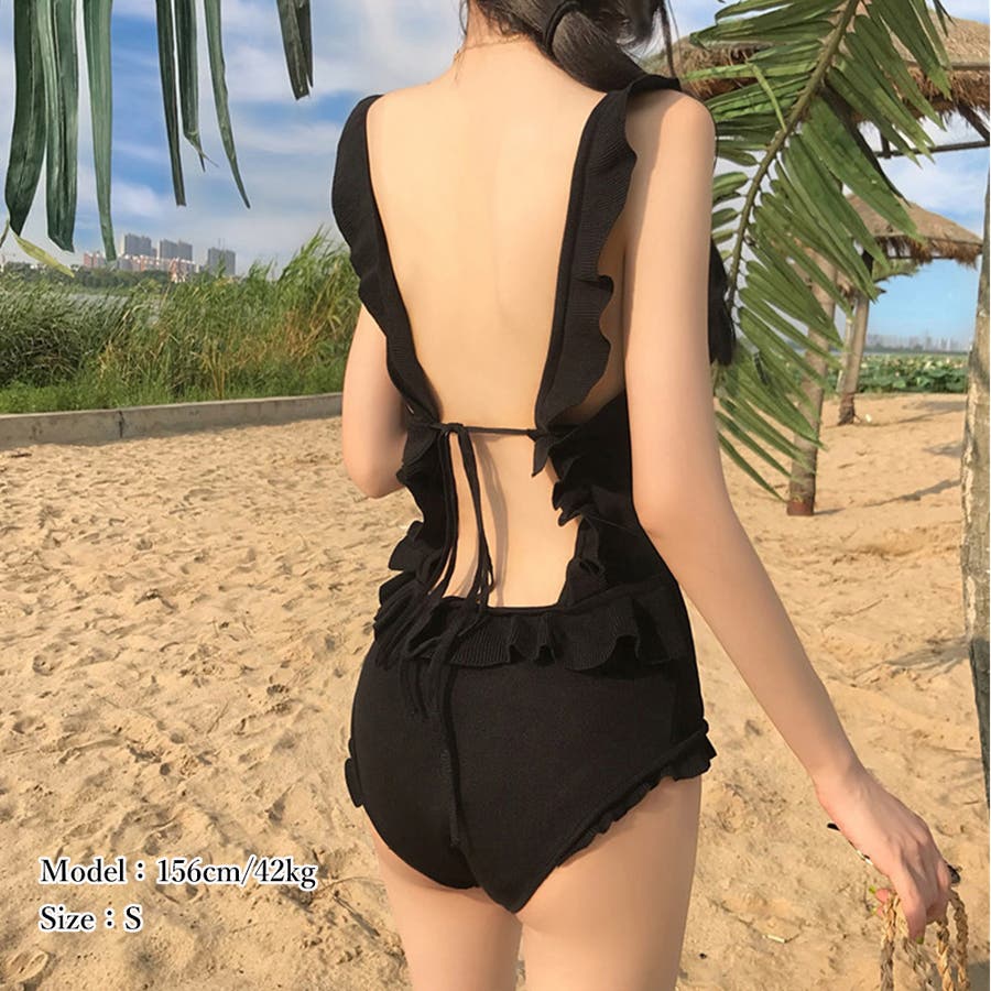 韓国風水着 レディース フリル 背中見せ水着 リゾート オトナ女子 セクシー オールインワン水着 海水浴 可愛い 夏海