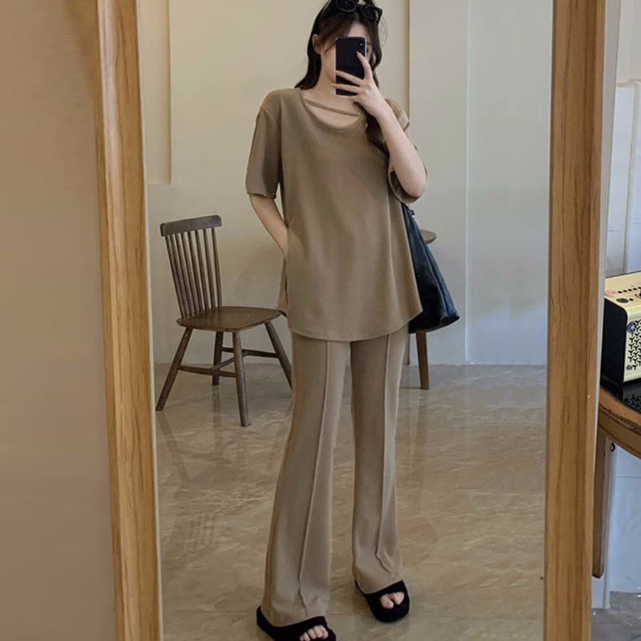 無地のシンプルなデザインながらも、洗練された韓国ファッションの要素を取り入れてるアンサンブルセットです