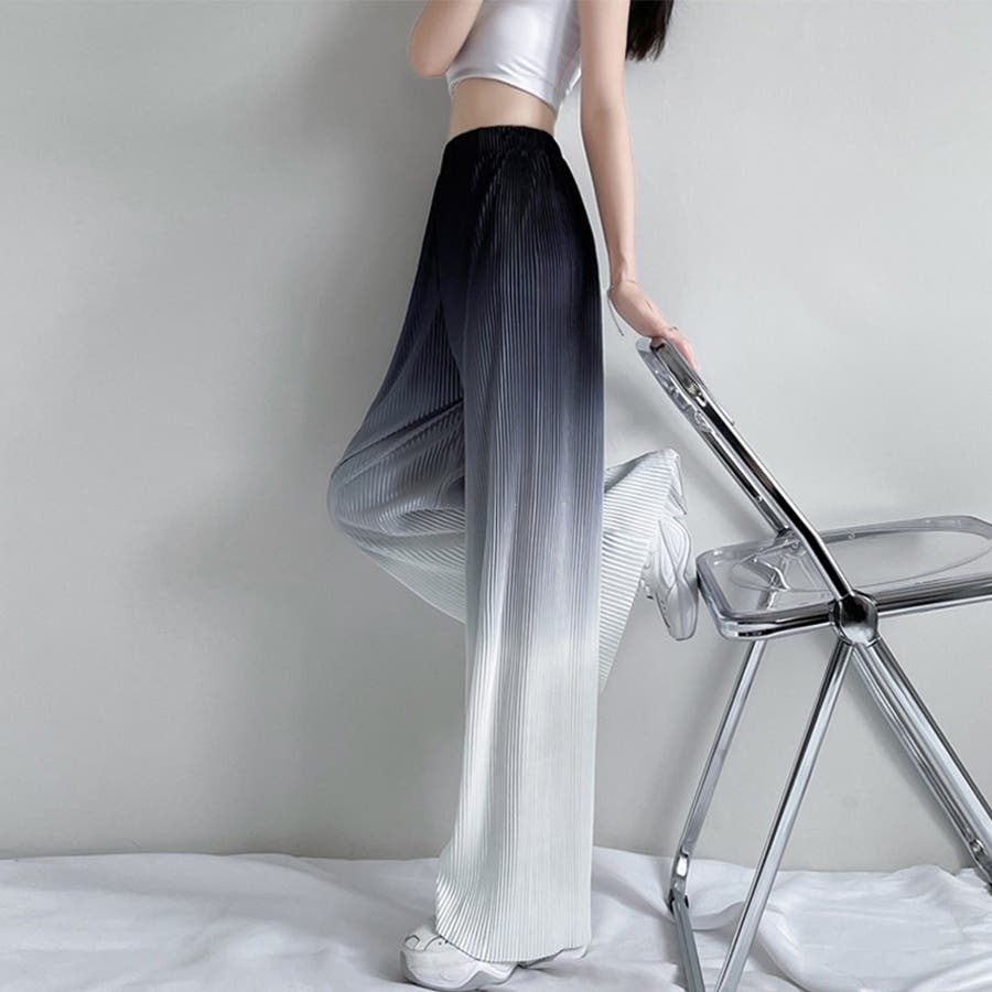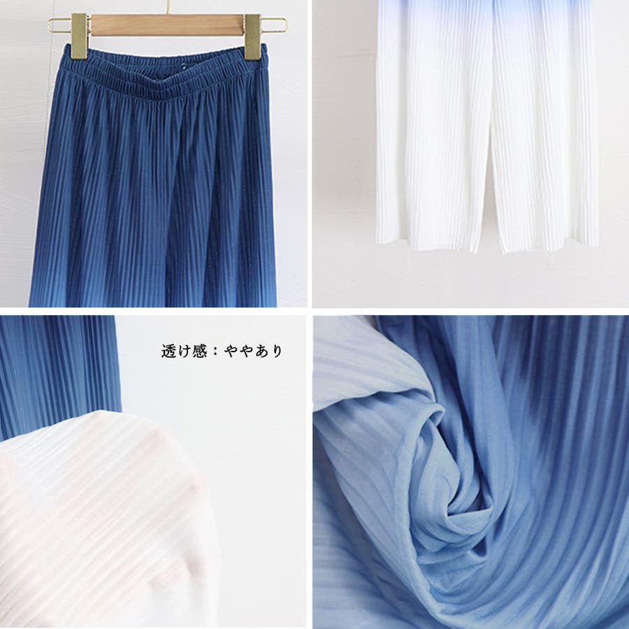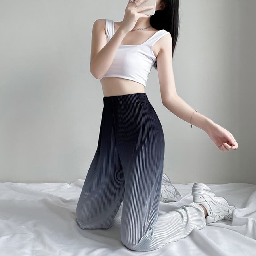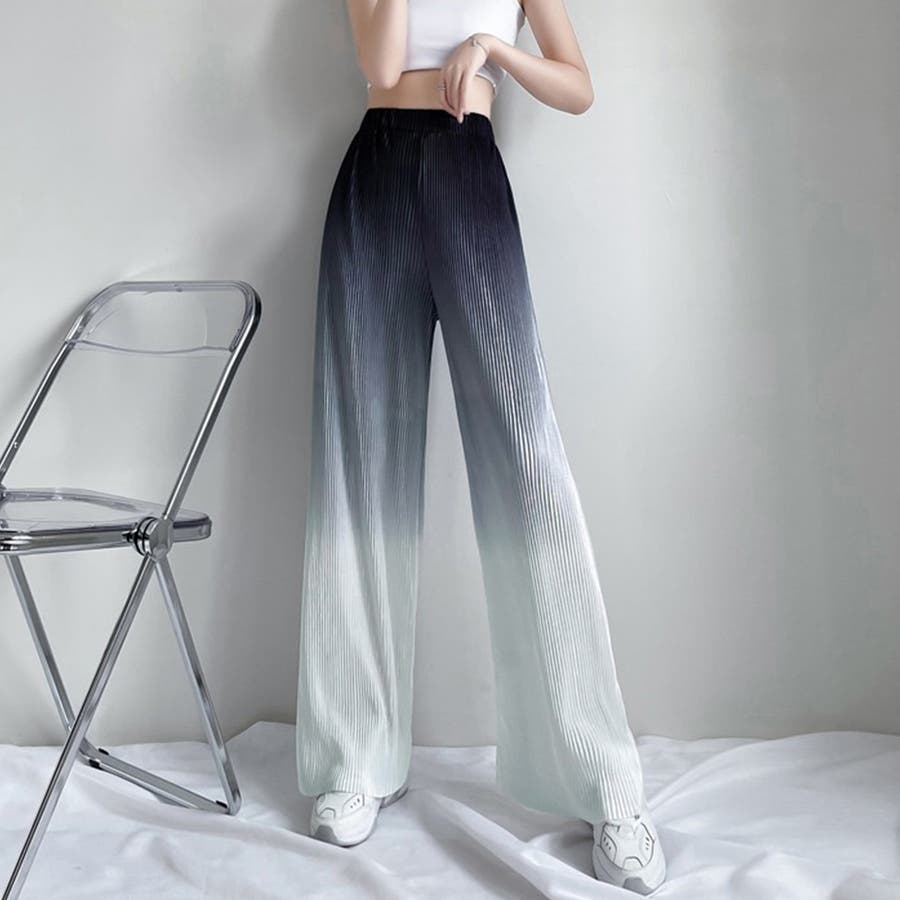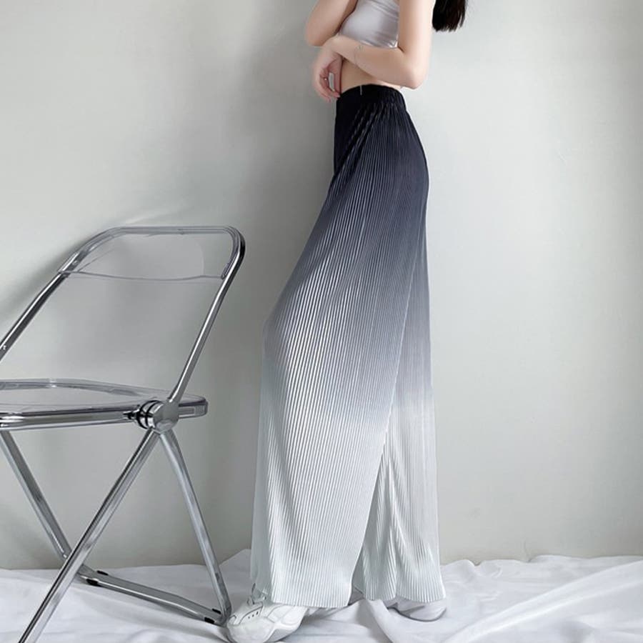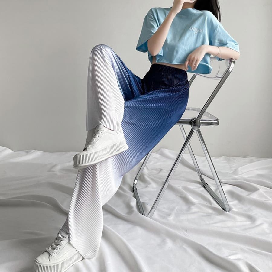 鮮やかなグラデーションカラーがコーディネートに華やかさを与えるプリーツワイドパンツ