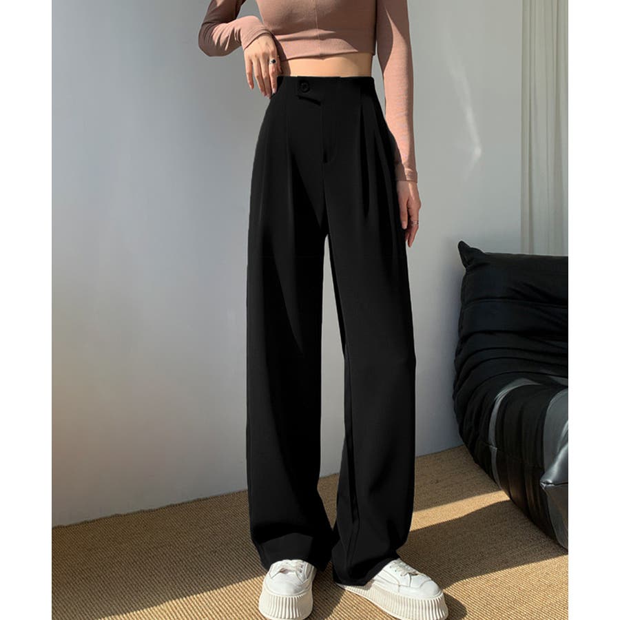 着やせタックパンツレディース 韓国風 通勤ロングパンツ